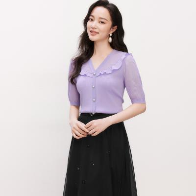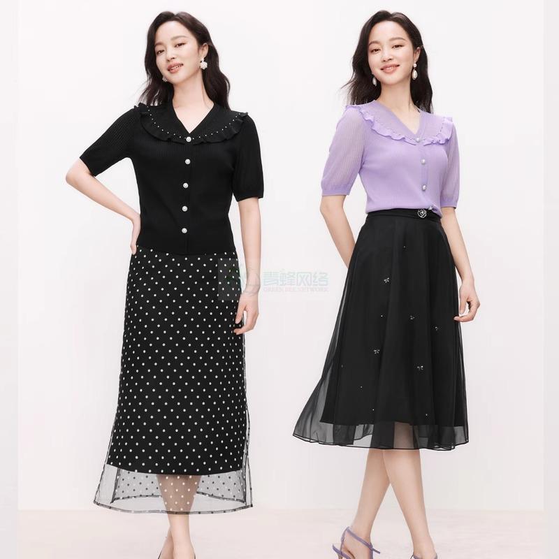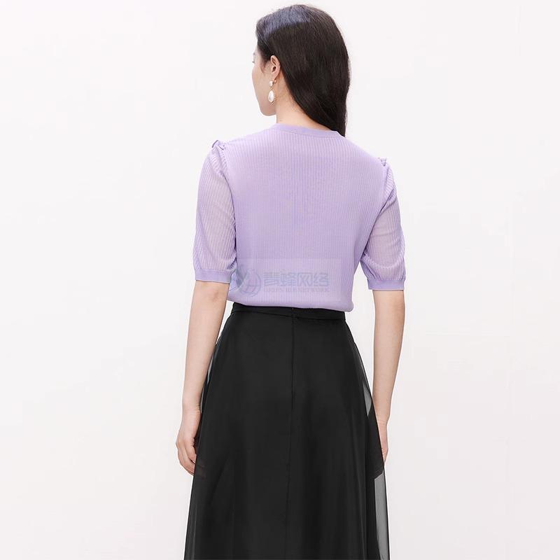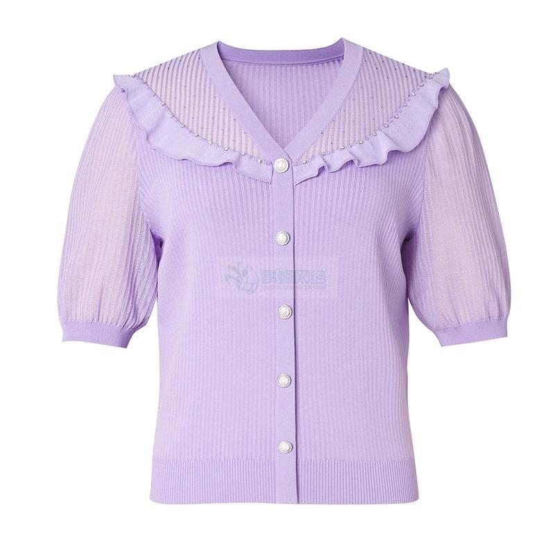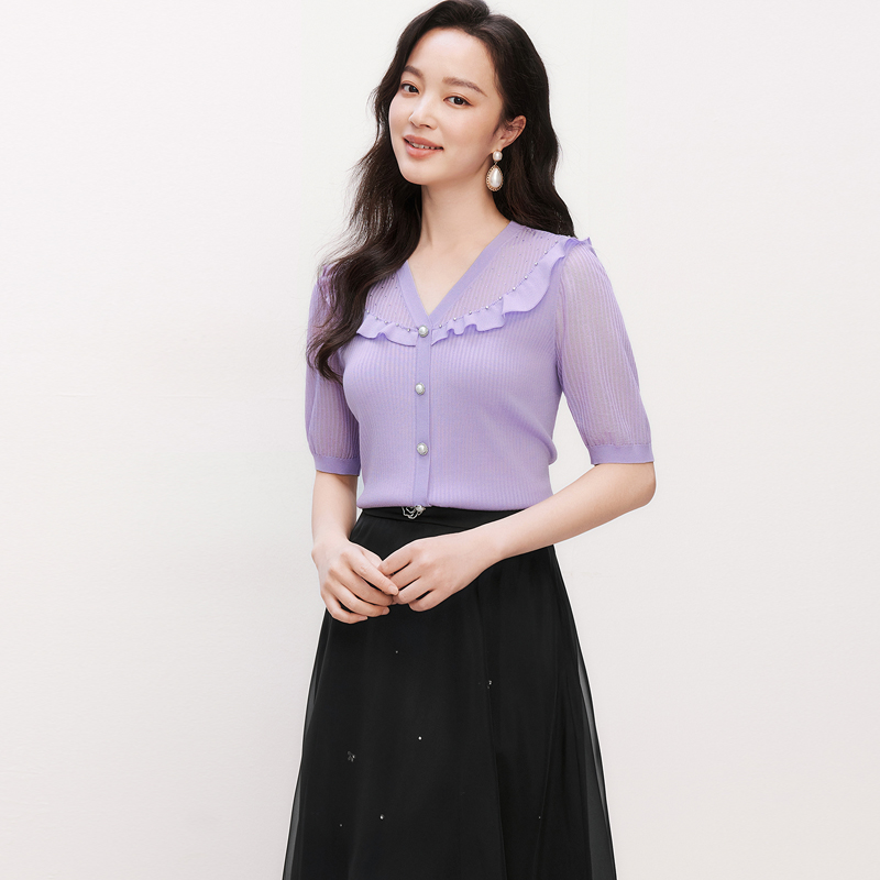 珂莱商场同款2025夏季新款V领短袖修身显瘦毛针织衫上衣