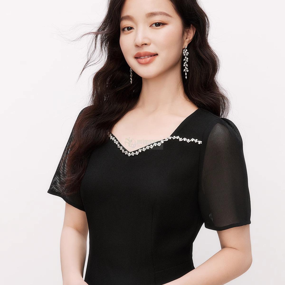 【盈动绽放】2025年夏季新款优雅连衣裙女拼接气质中长裙