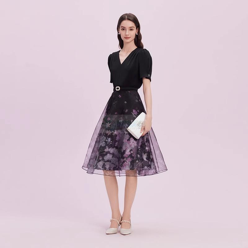 【商场同款】La koradior拉珂蒂气质短袖连衣裙女2025夏季高腰裙