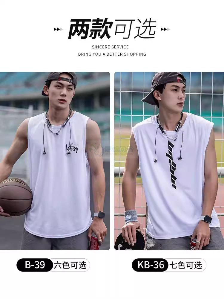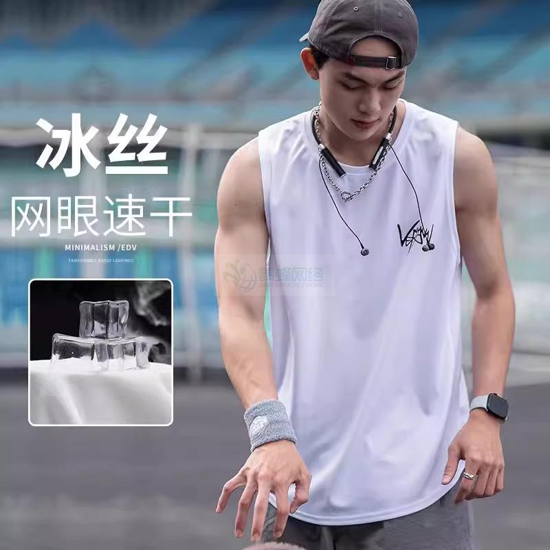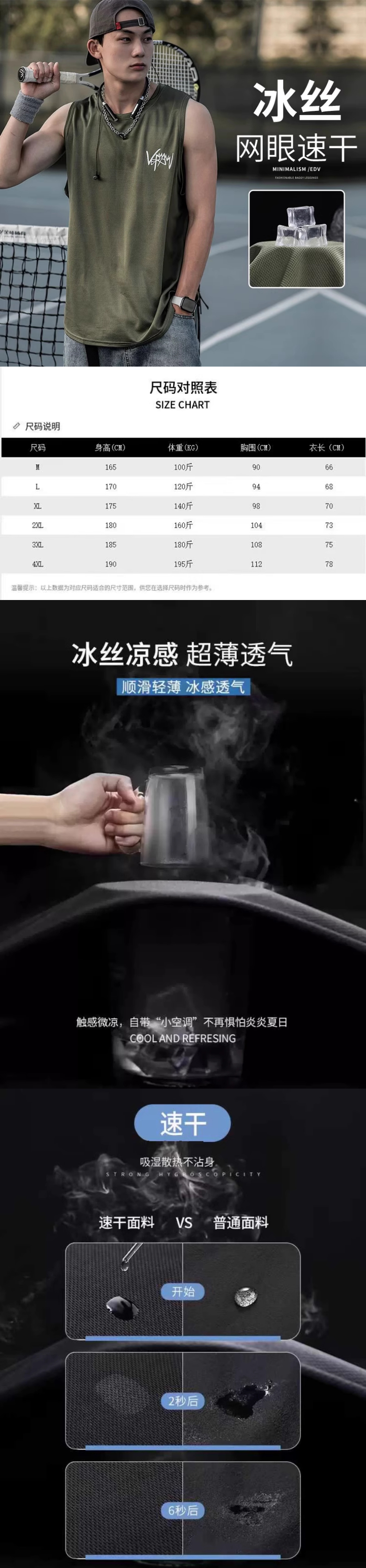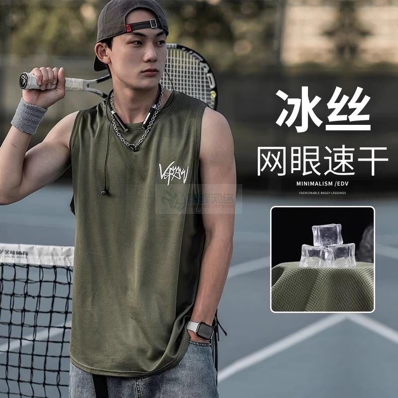 冰丝无袖背心男夏季薄款健身网眼坎肩大码速干篮球运动跑步T恤潮