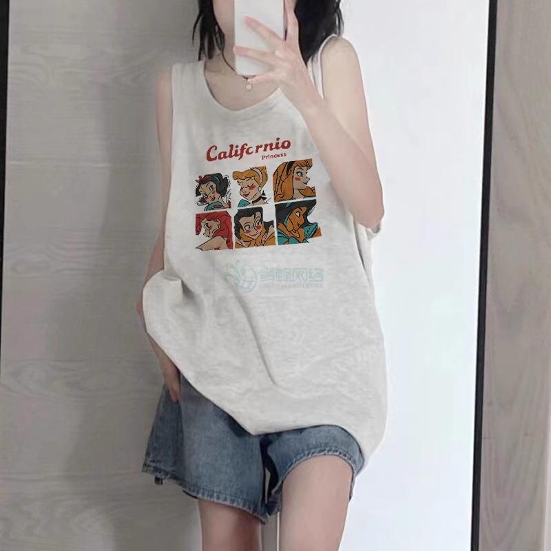纯棉吊带运动坎肩背心无袖t恤女夏季设计感小众外穿宽松挂脖上衣
