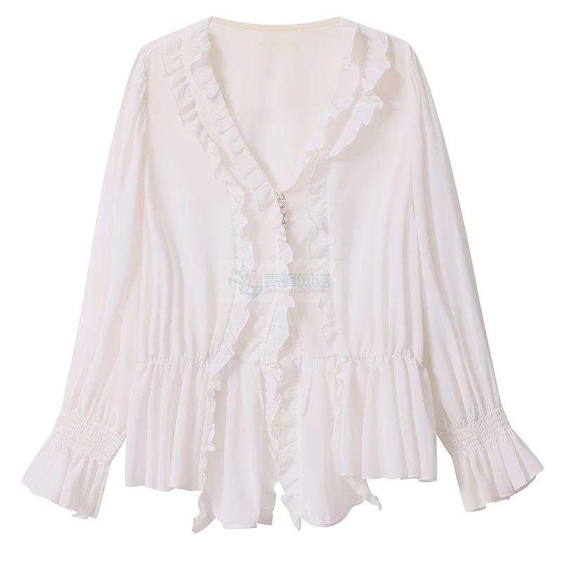 Dazi金大支雪纺衫女2025新款早春季时尚洋气超仙薄款白色...