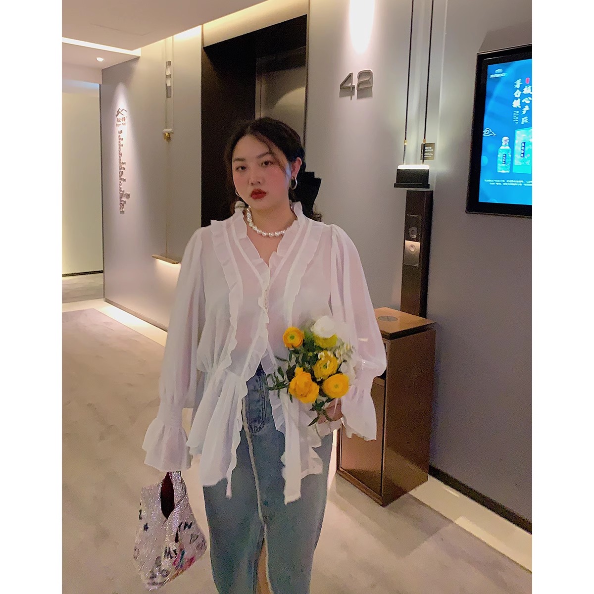Dazi金大支雪纺衫女2025新款早春季时尚洋气超仙薄款白色小衫上衣
