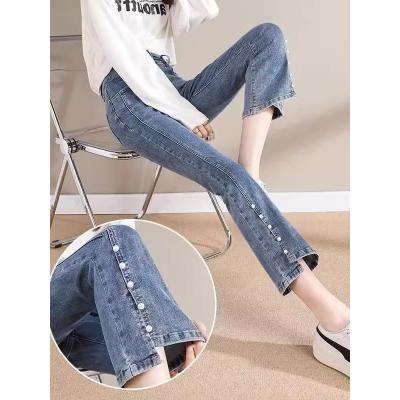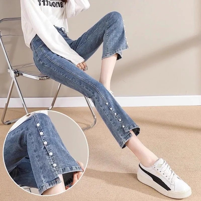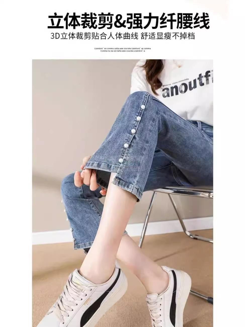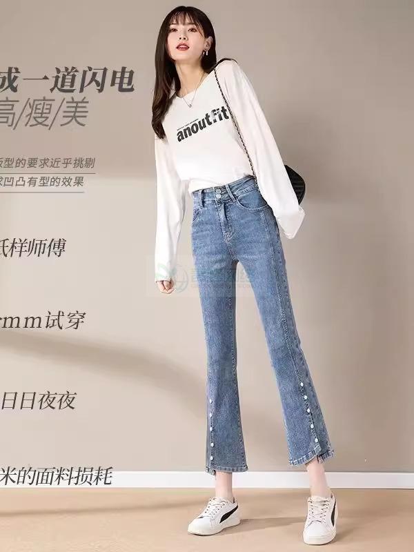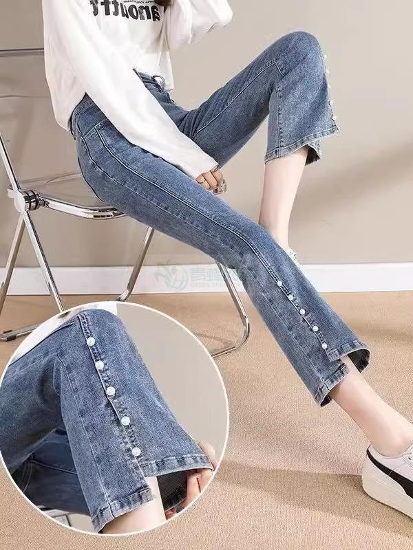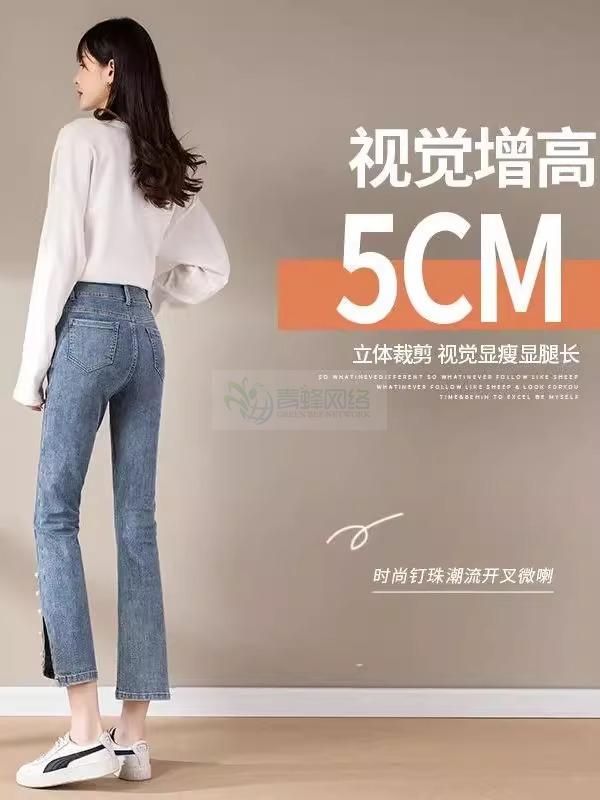 开叉微喇牛仔裤女高腰显瘦2025年春季新款弹力小个子九分喇叭...