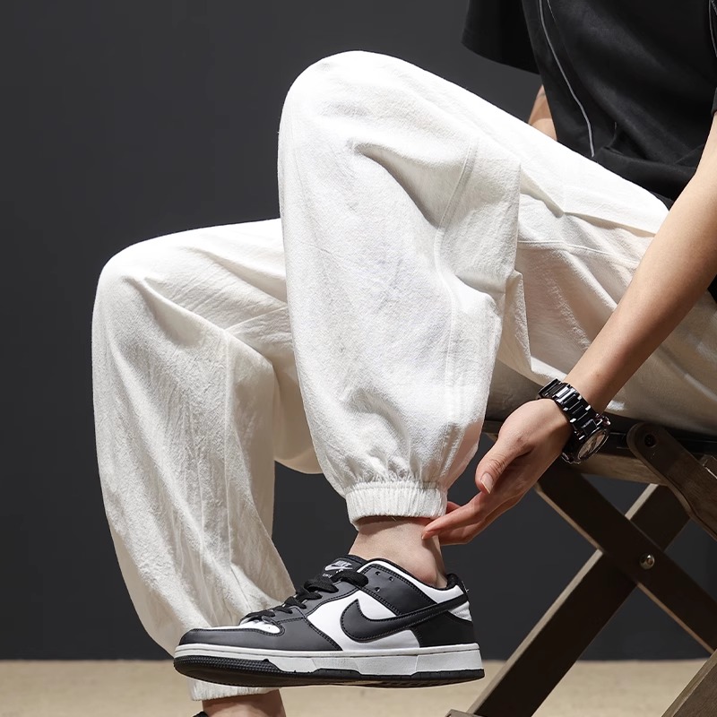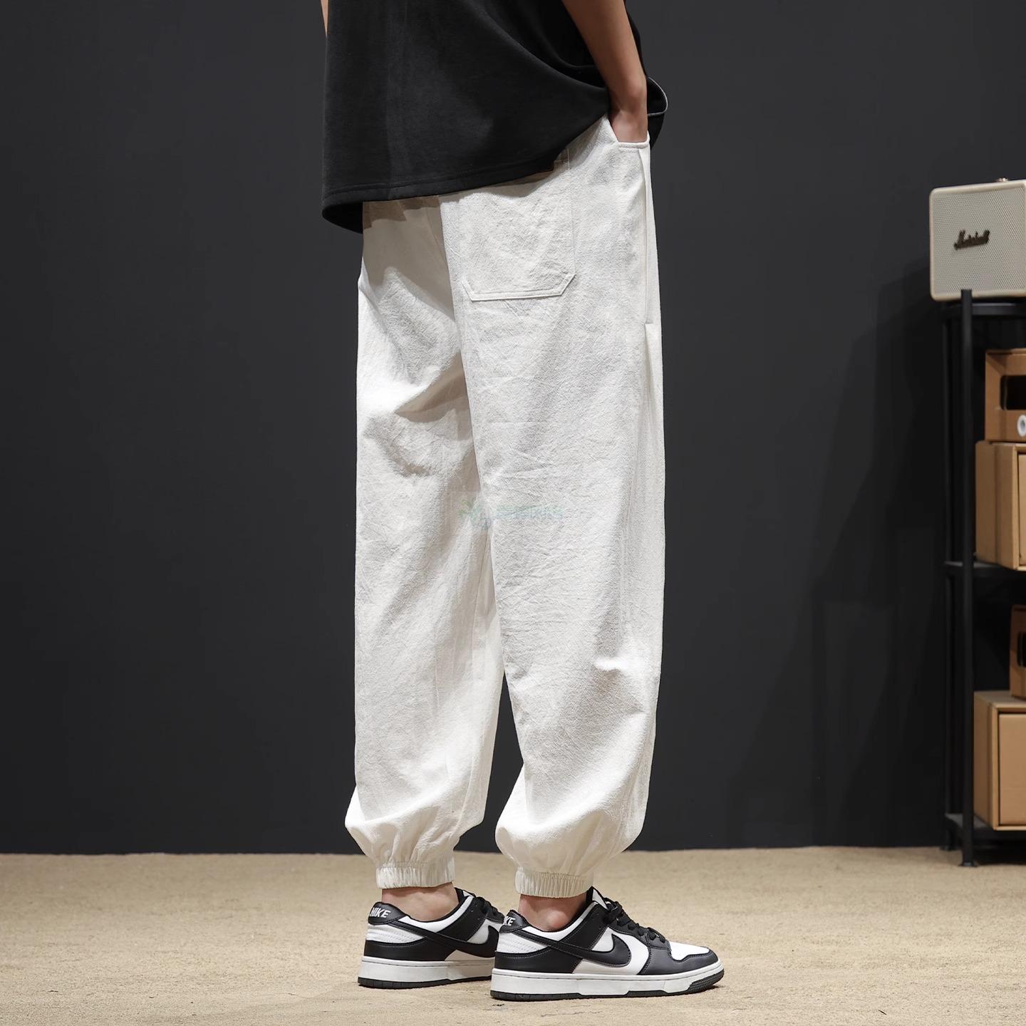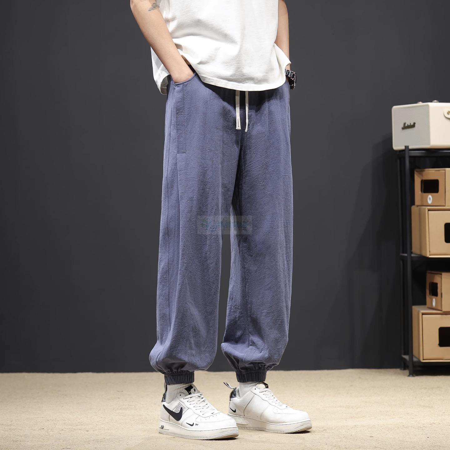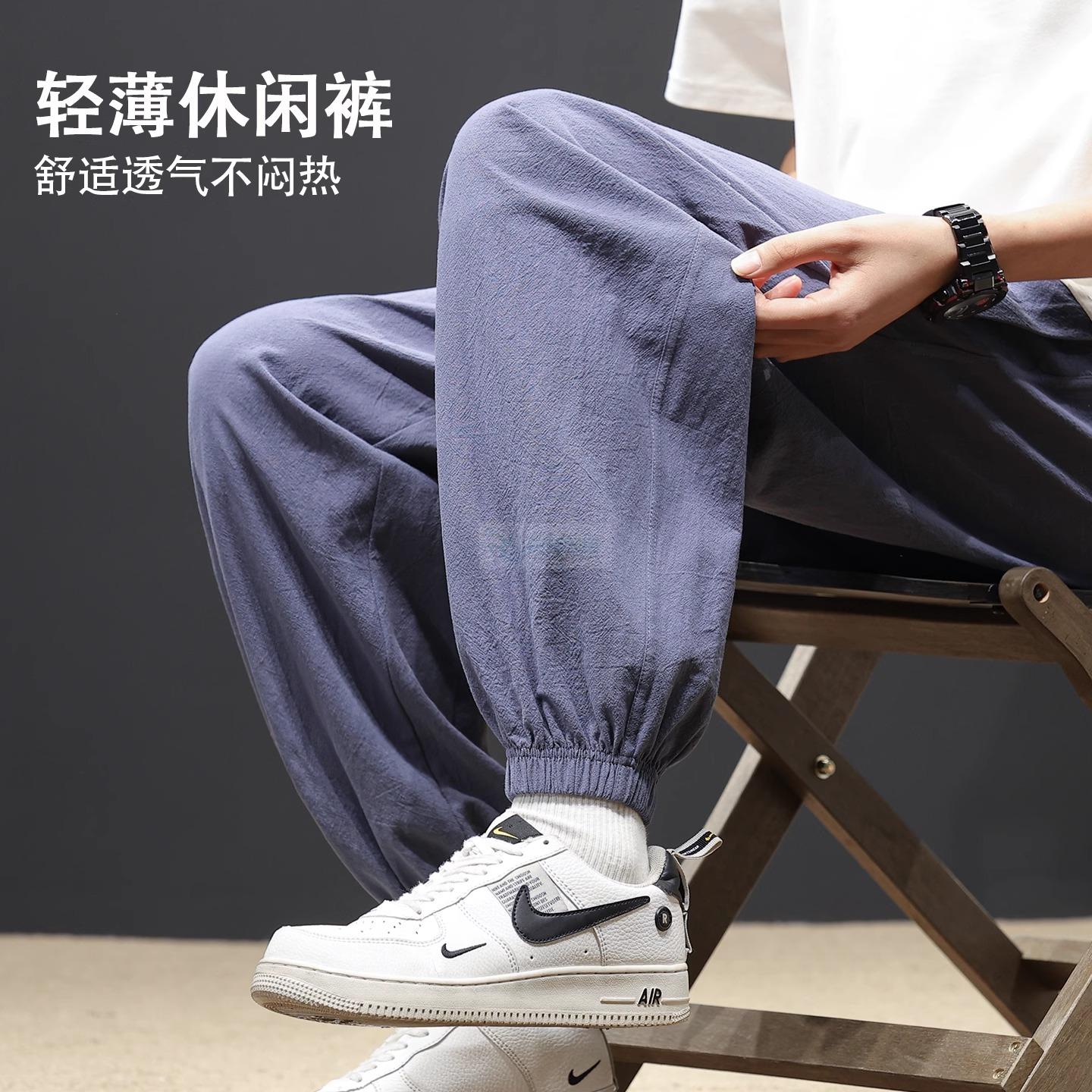 裤子男款夏季薄款透气亚麻裤男士棉麻休闲裤宽松束脚裤纯棉运动裤
