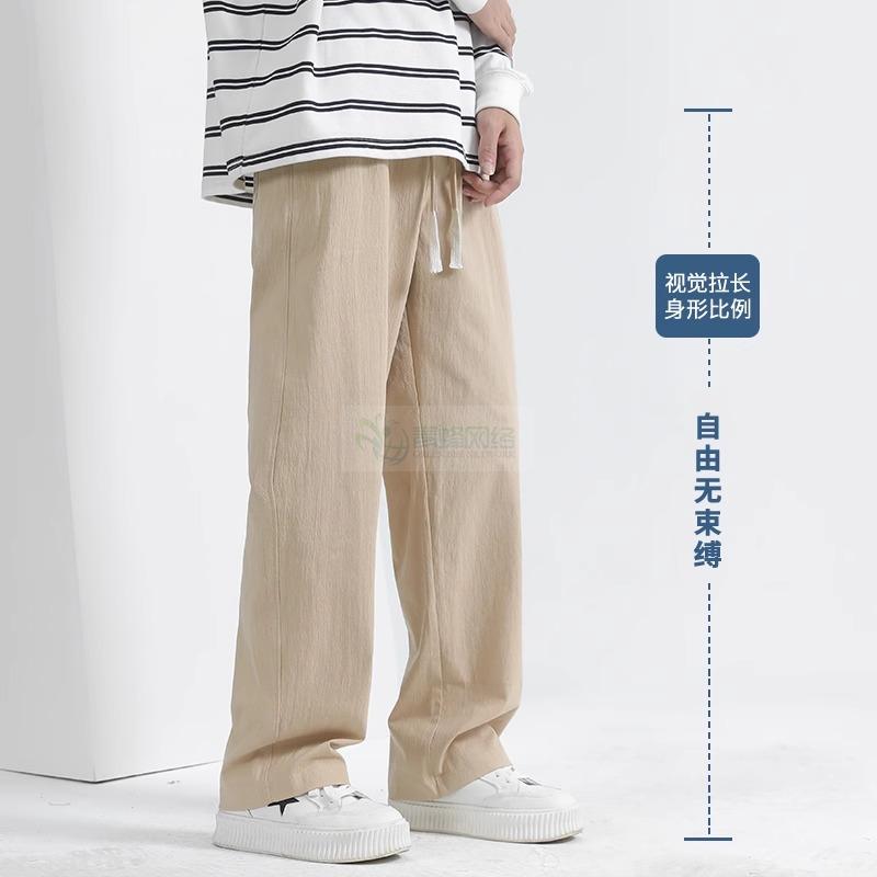 裤子男款夏季薄款男士亚麻直筒裤宽松纯棉休闲裤长裤男生棉麻卫裤