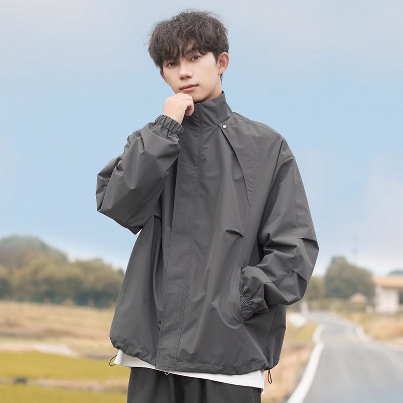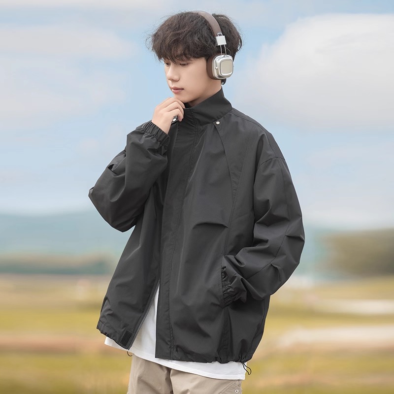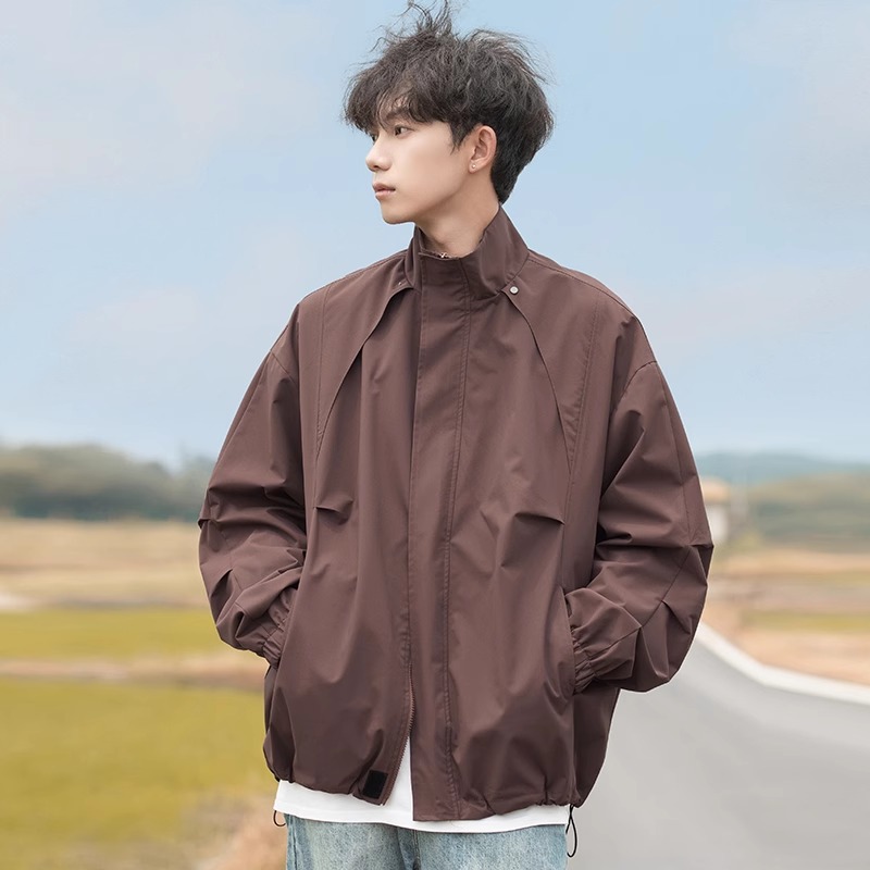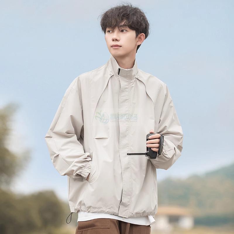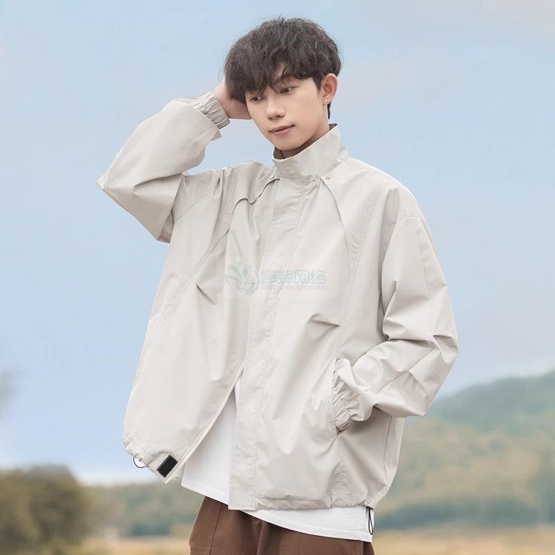 男生米色防风外套男春季男装潮牌2025新款美式立领夹克上衣百...