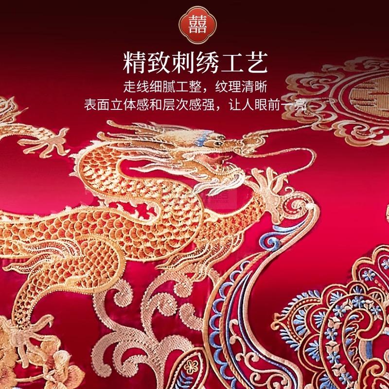 艾维婚嫁结婚四件套纯棉全棉龙凤喜被刺绣红色新婚喜庆床上用品