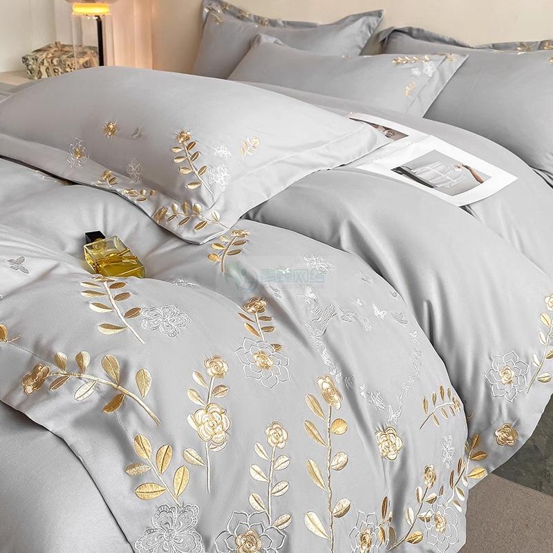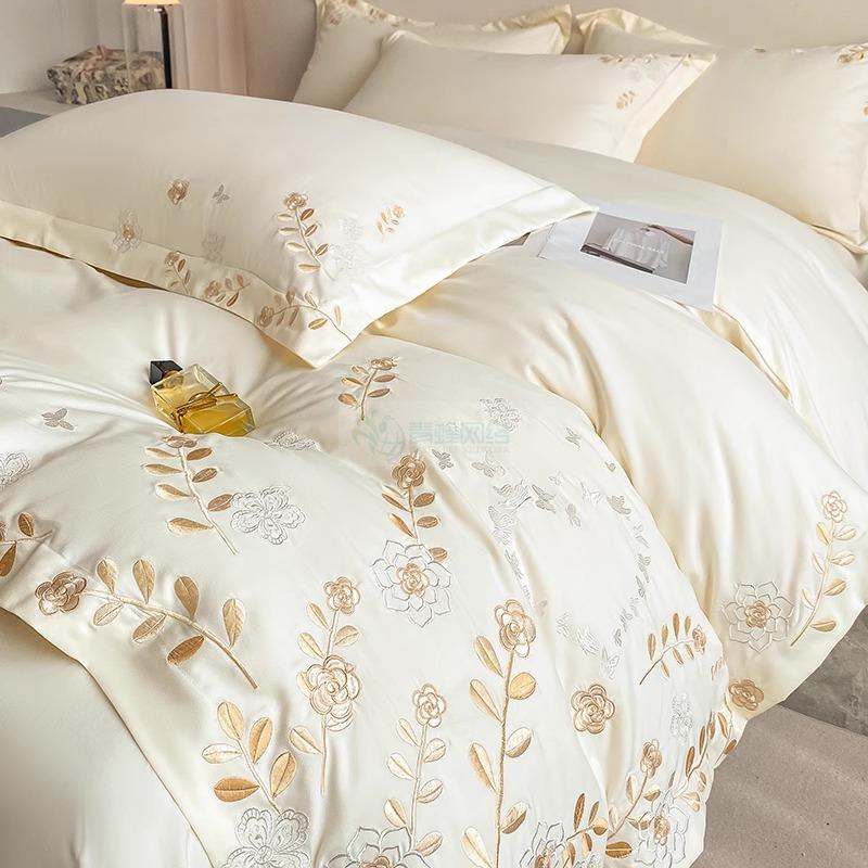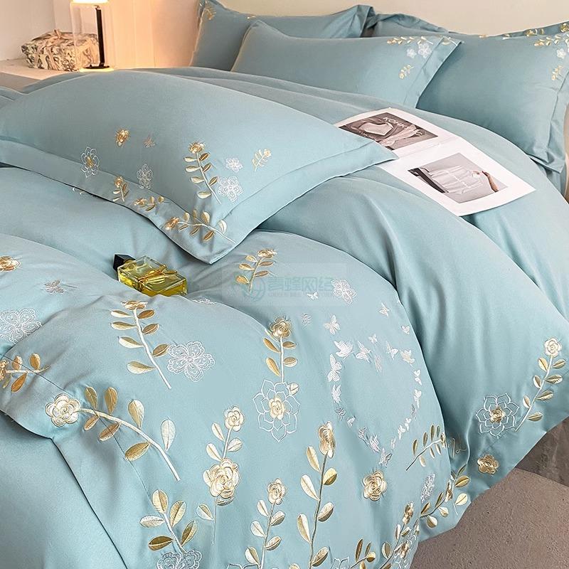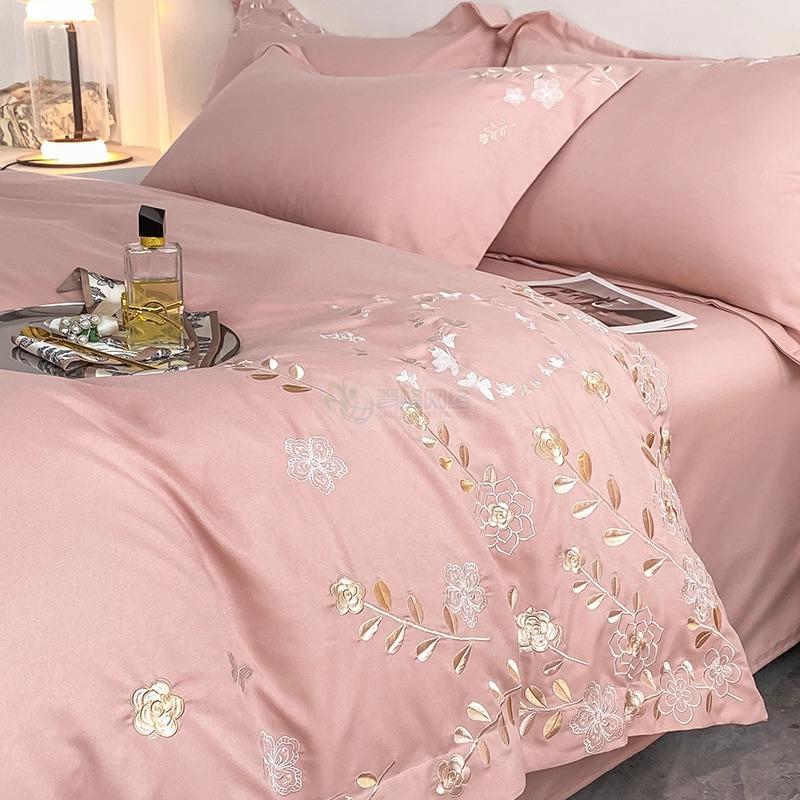 高端轻奢120支全棉四件套纯棉花卉绣花被套床笠亲肤裸睡床上用品4