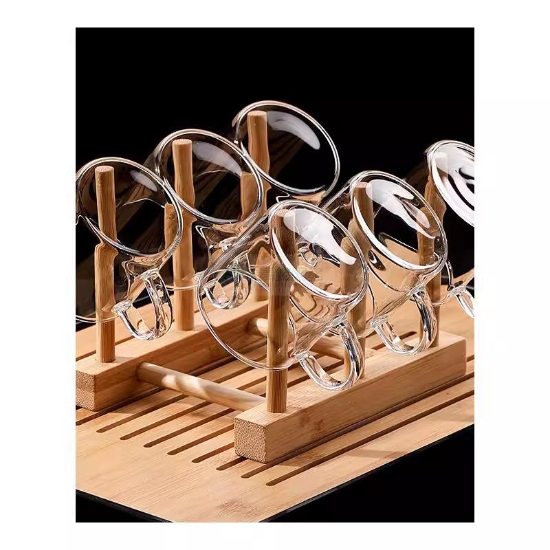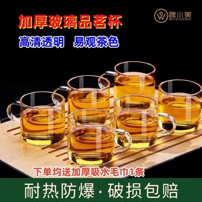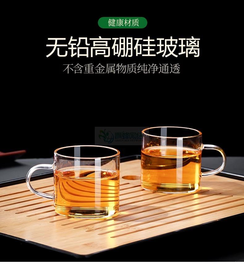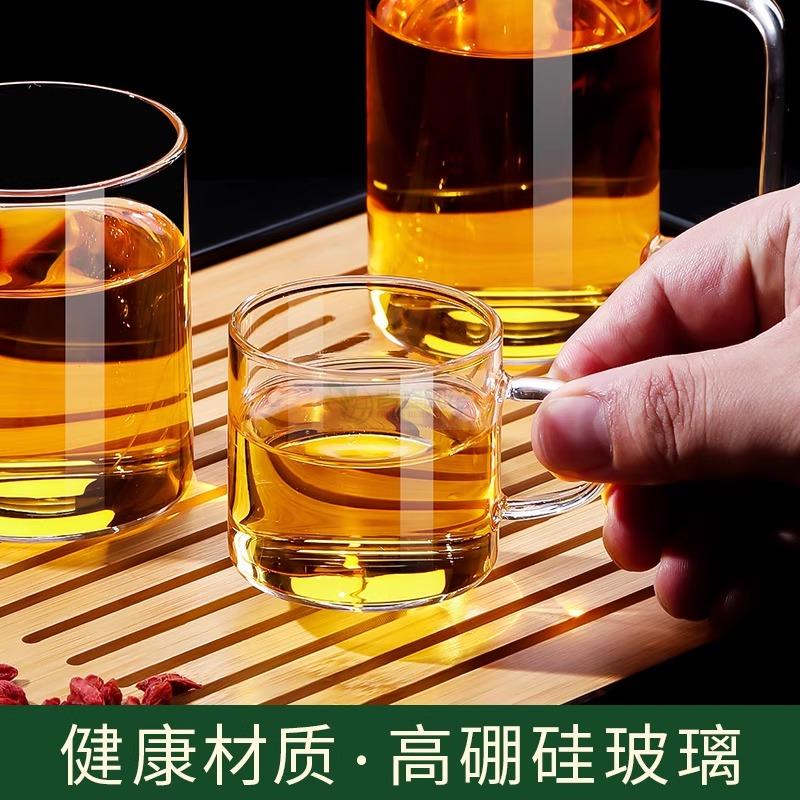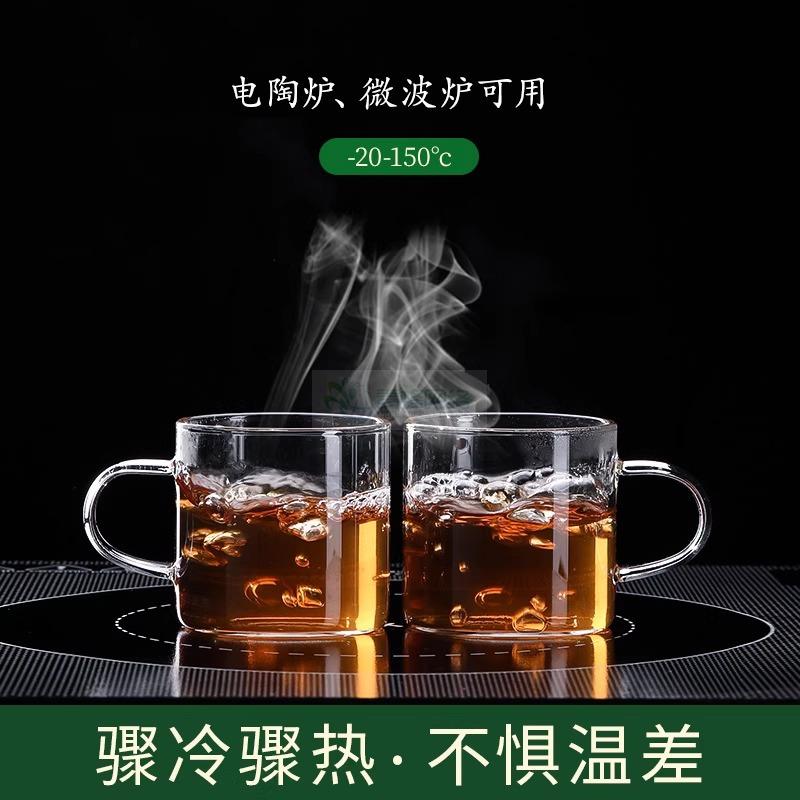 玻璃小茶杯家用简约喝茶耐热功夫茶具水杯带把品茗杯主人杯混把杯