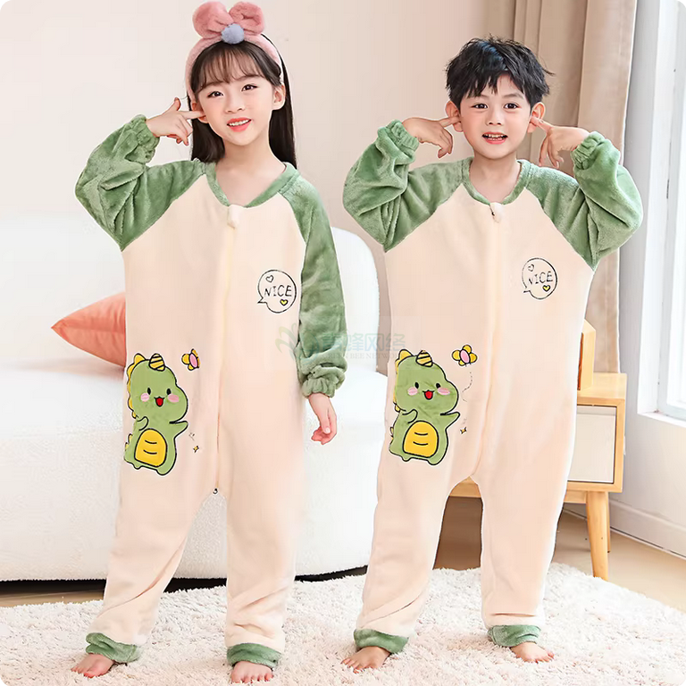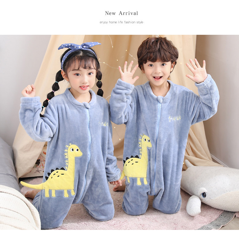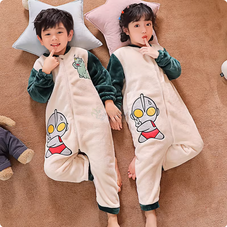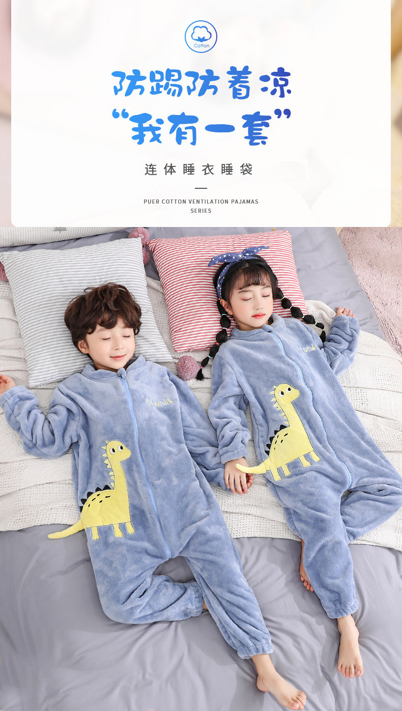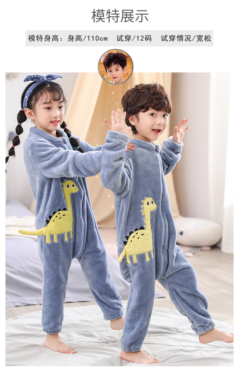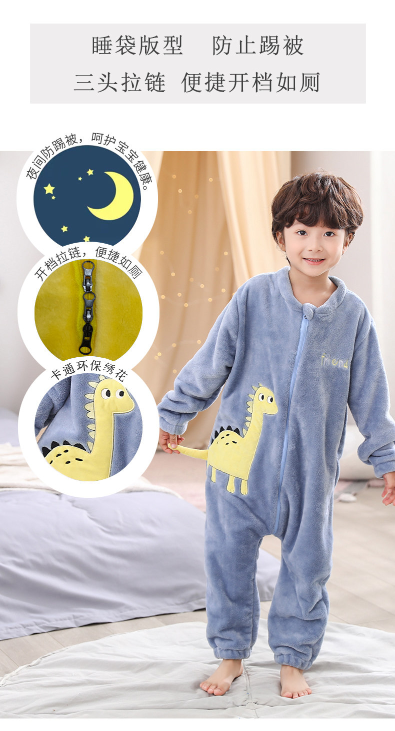 儿童连体睡衣秋冬季法兰绒宝宝睡袋男童珊瑚绒厚款男女孩防踢着凉