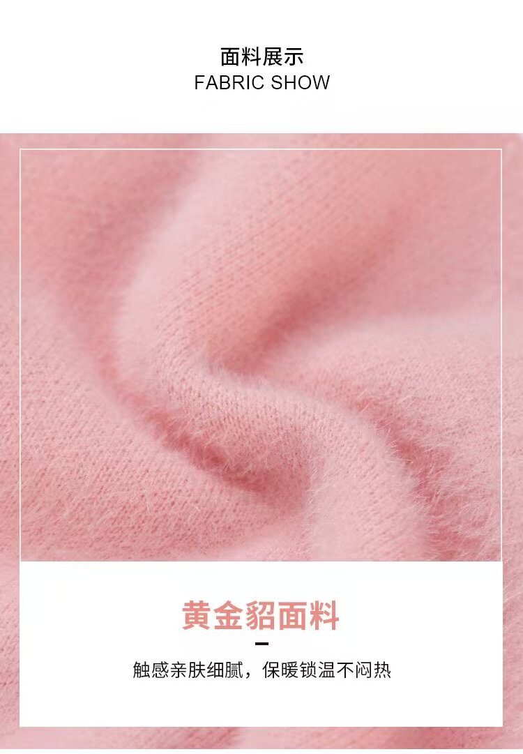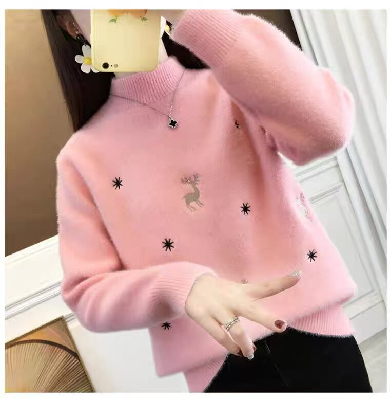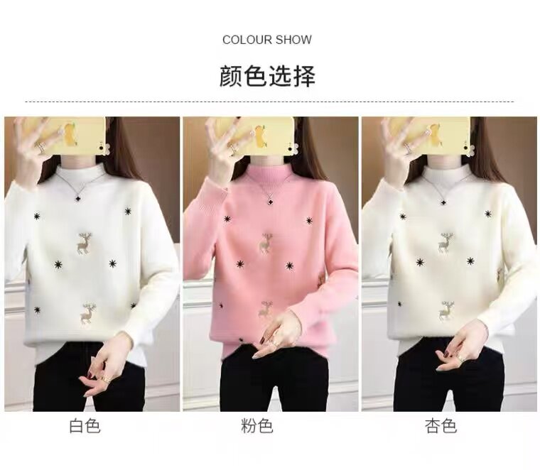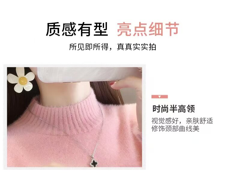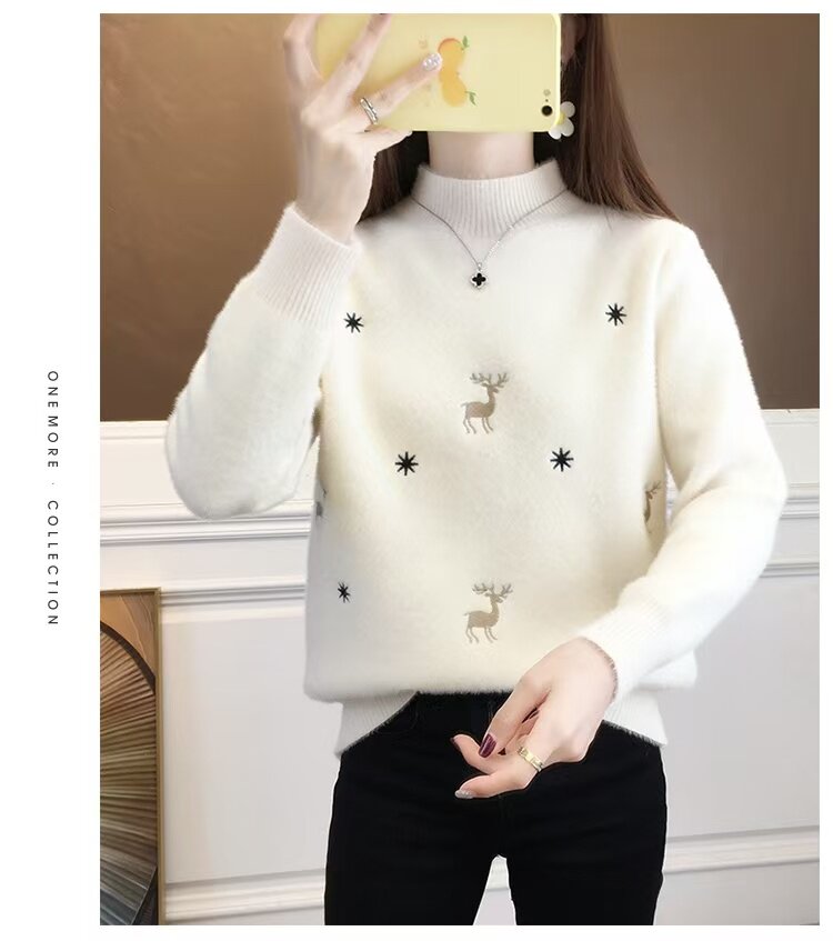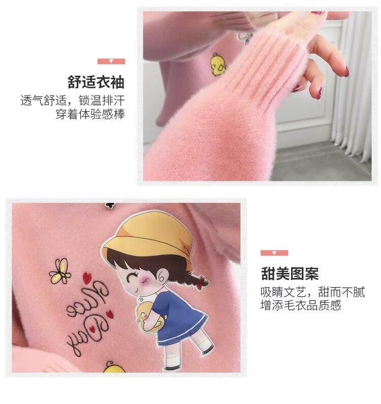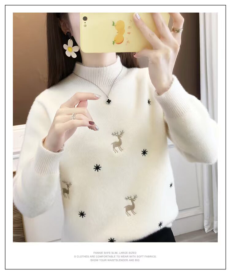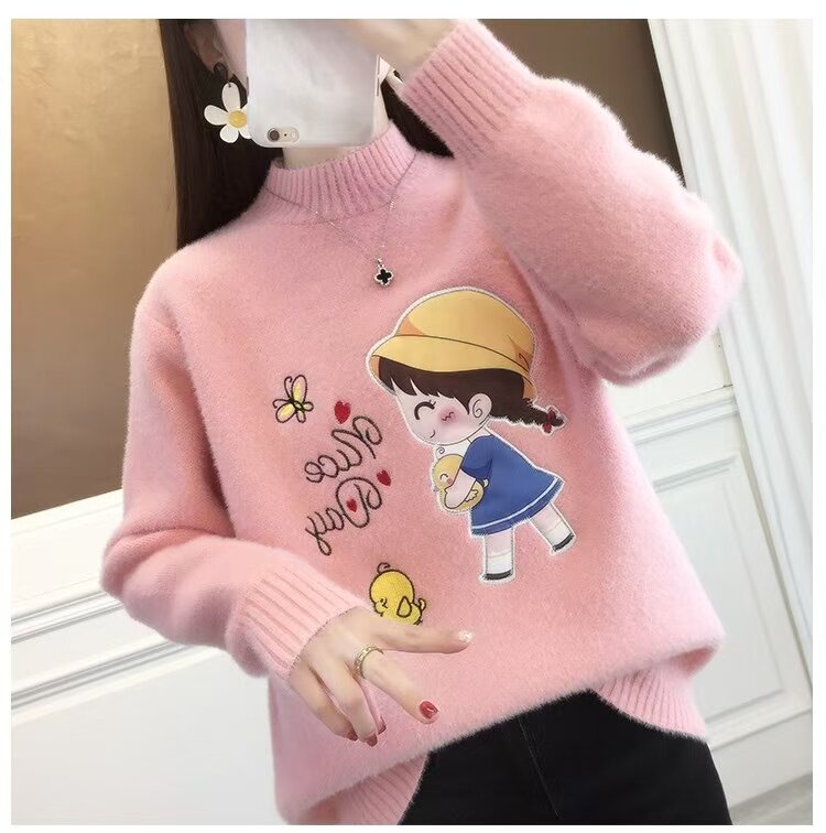 • 半高领水貂绒毛衣女秋冬季新款学生卡通刺绣时尚针织打底衫一体绒