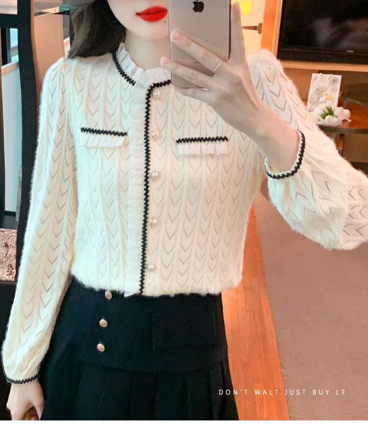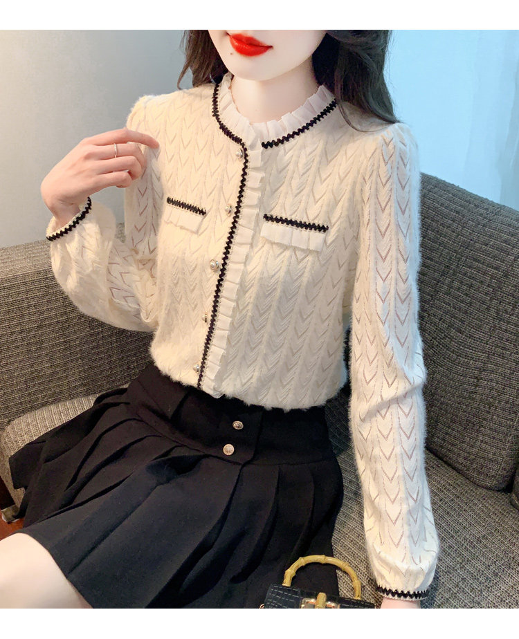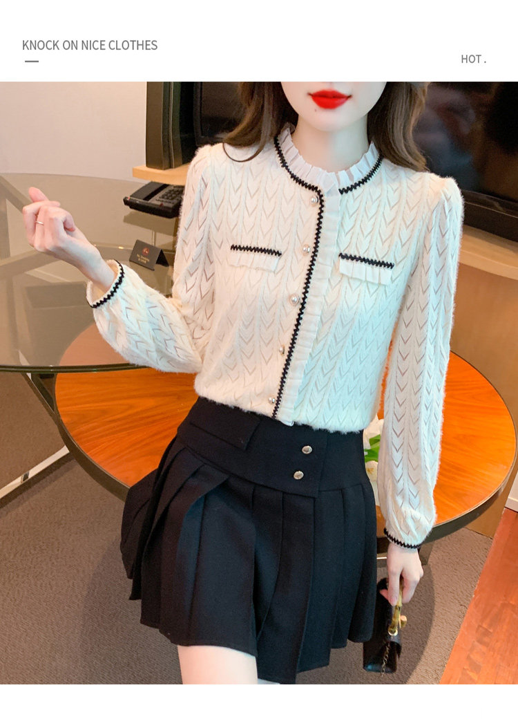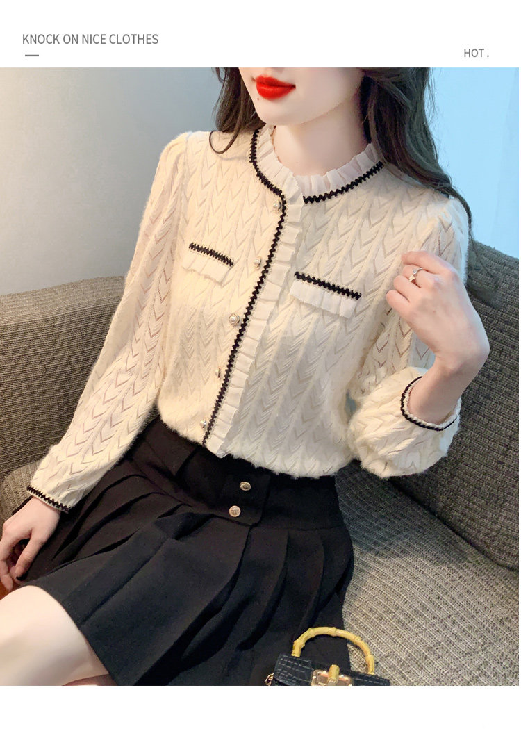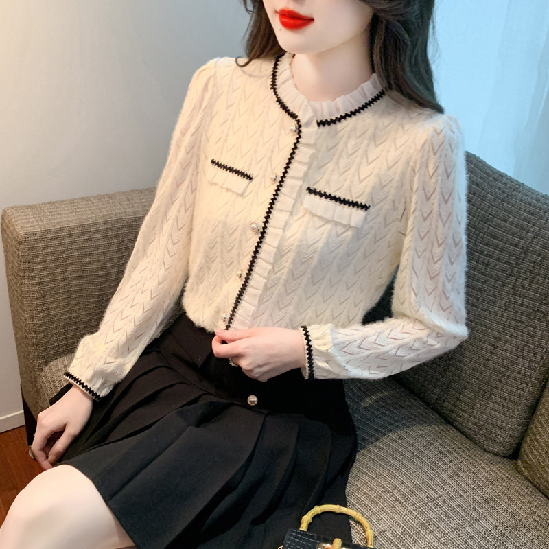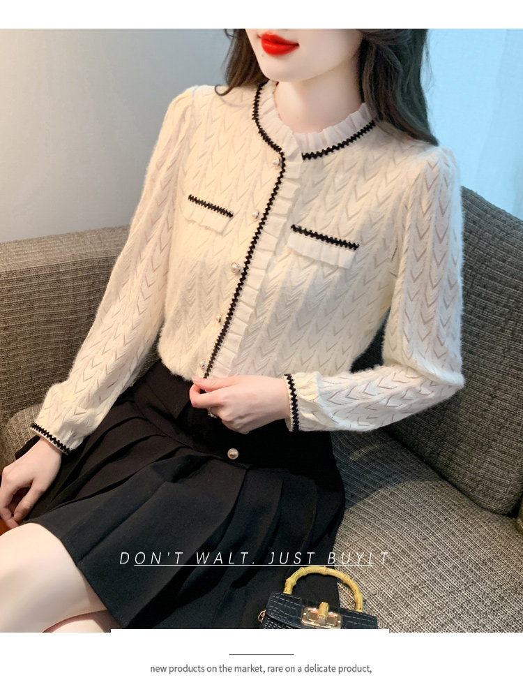 复古轻奢荷叶边衬衫女2025春季新款翻领