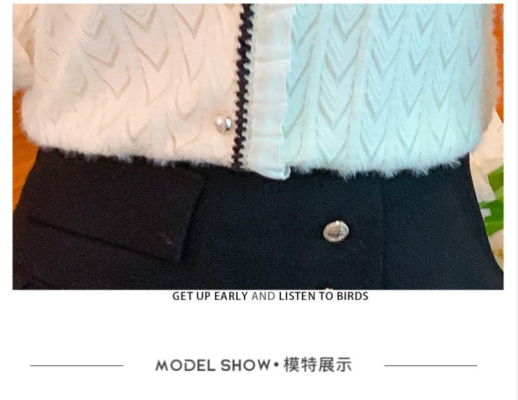 洋气条纹毛衣女秋冬新款拼色水貂绒上衣短款