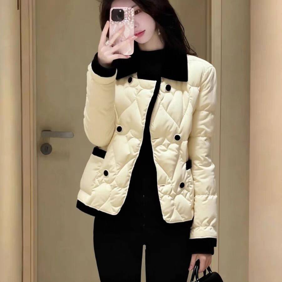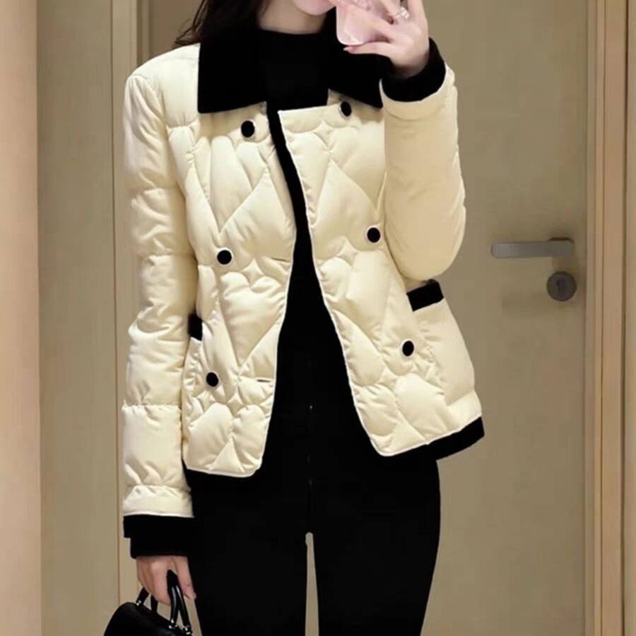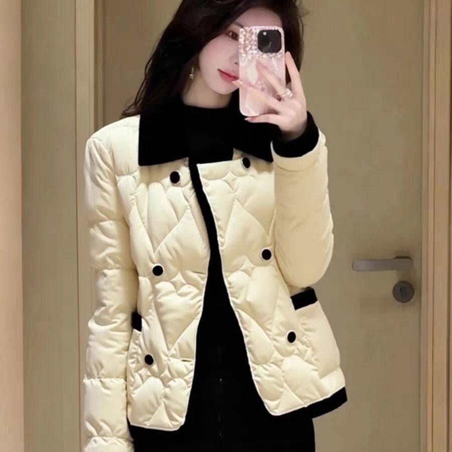 • 奥莱折扣店品牌撤柜米杏色夹棉外套女初冬小香风翻领加厚棉服