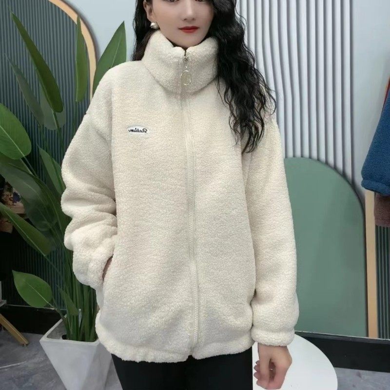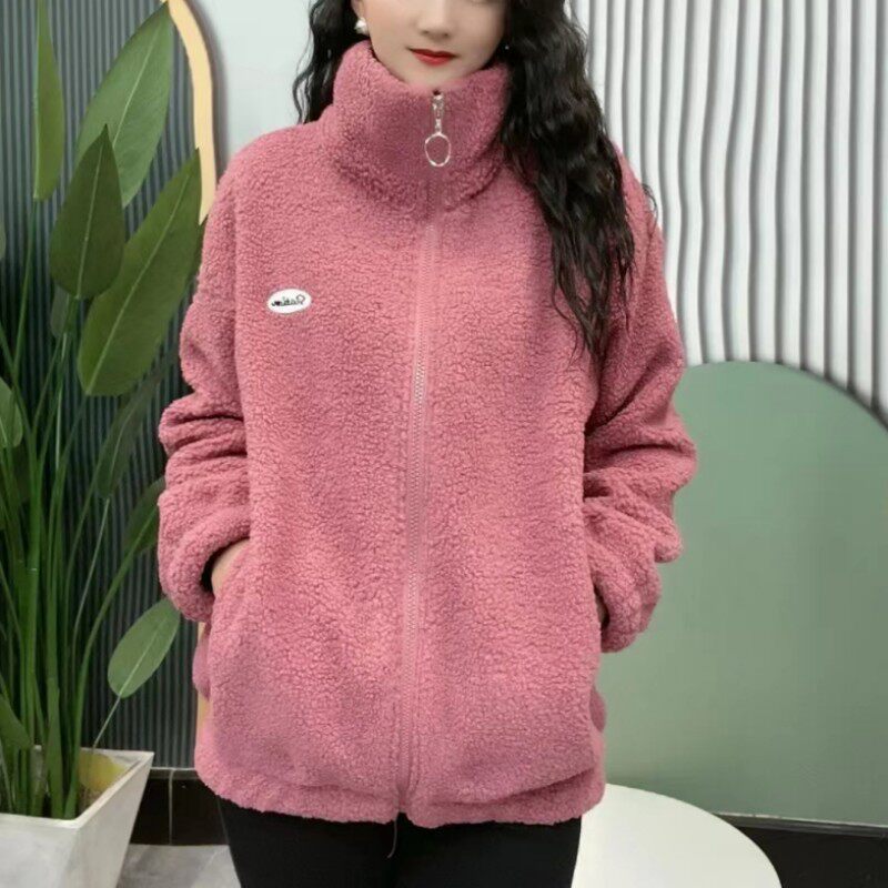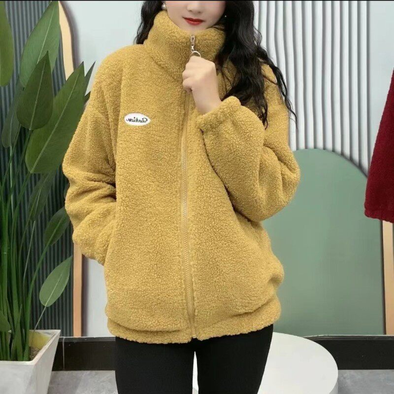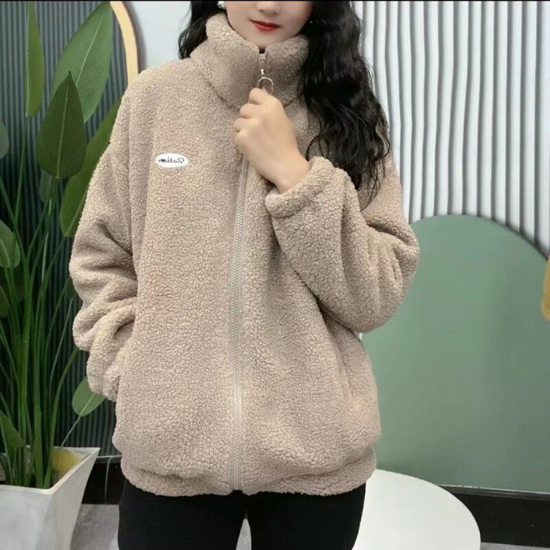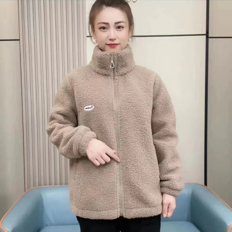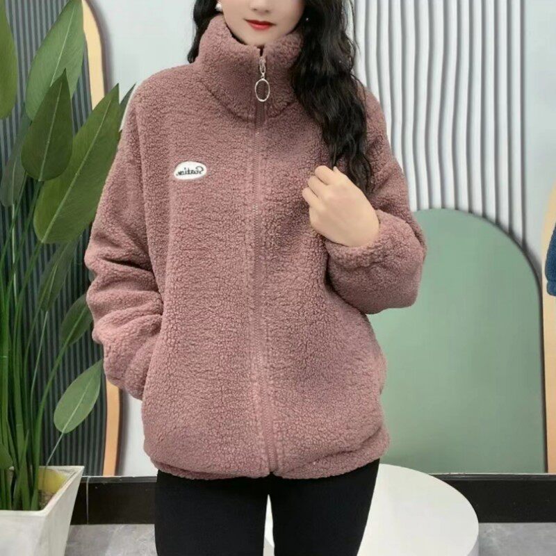• 加绒一体绒外套女秋冬休闲减龄洋气加厚立领颗粒绒保暖羊羔毛棉衣