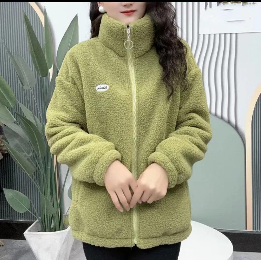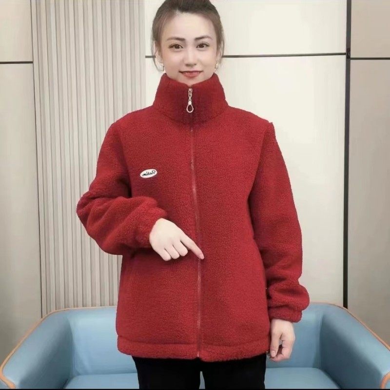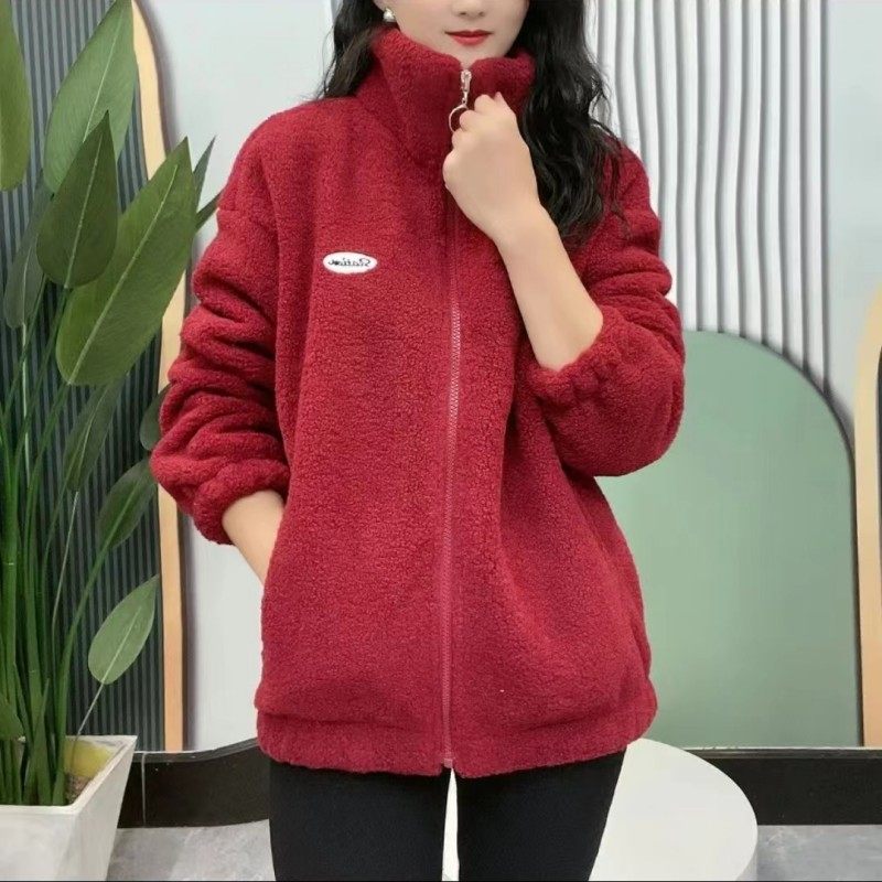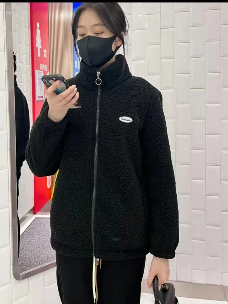 • 加绒一体绒外套女秋冬休闲减龄洋气加厚立领颗粒绒保暖羊羔毛棉衣