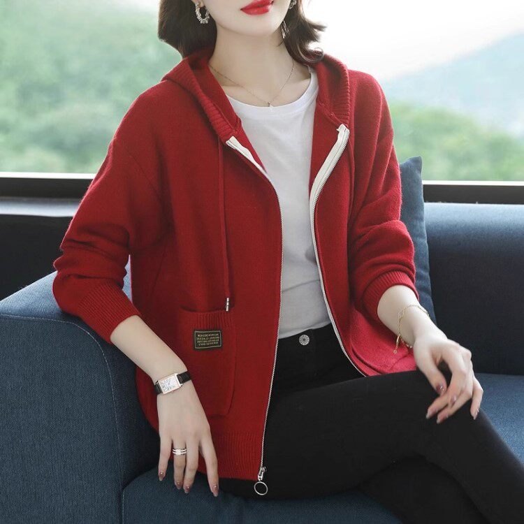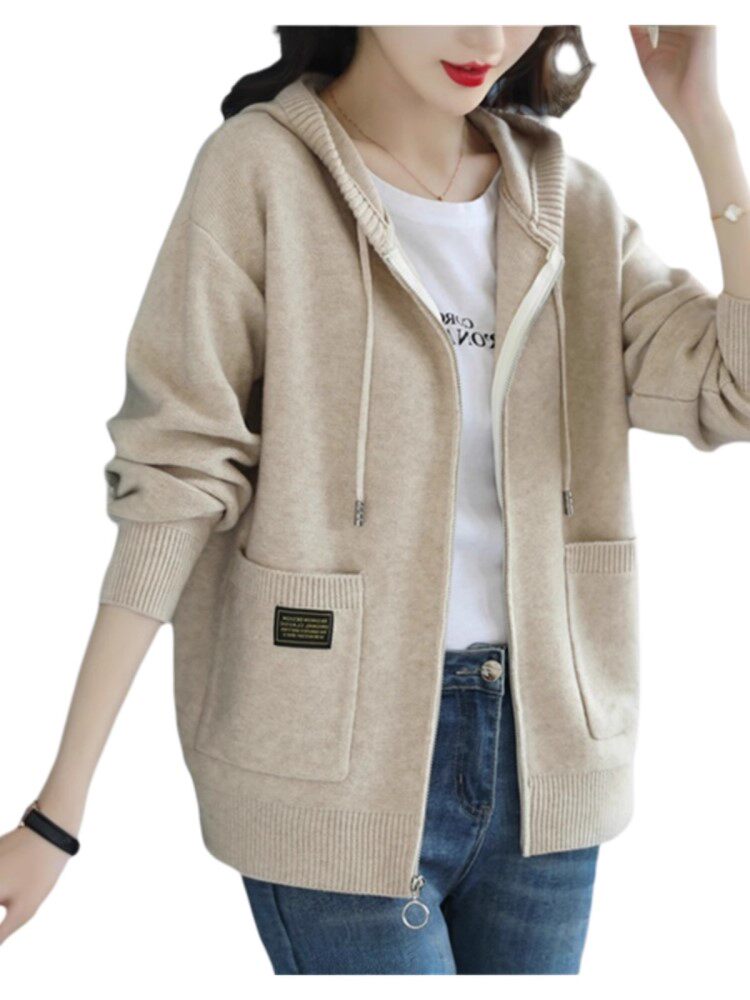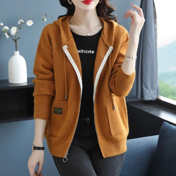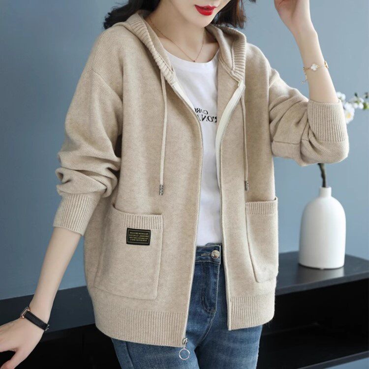首页 > 靓丽女装 > 连帽针织开衫外套女士装春秋冬季2025年新款外搭宽松外穿毛衣上衣