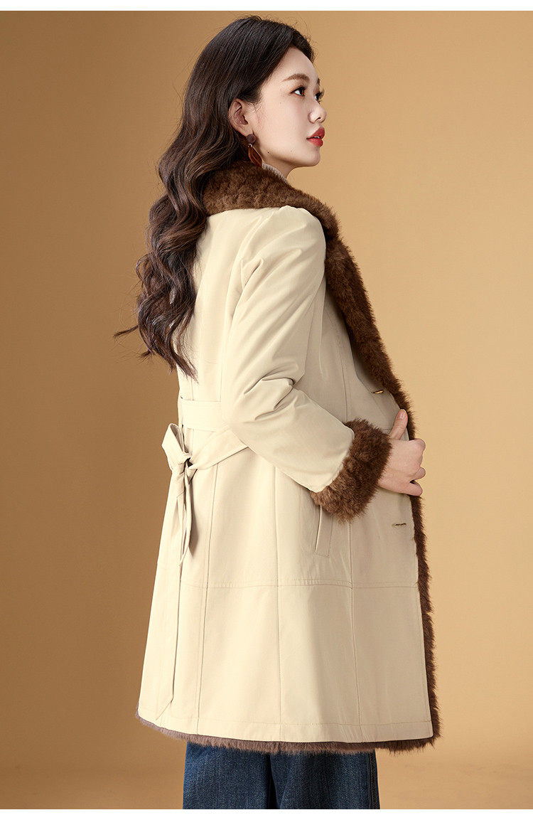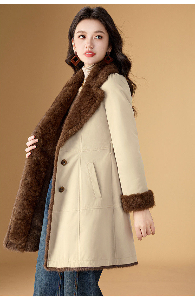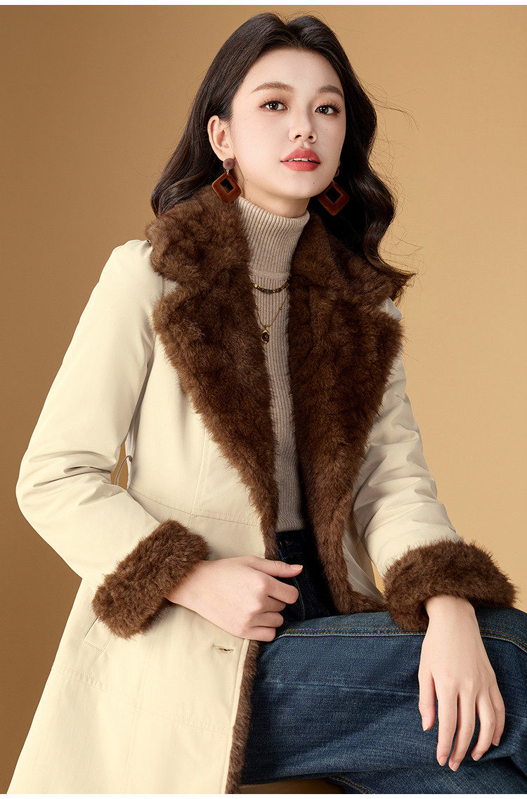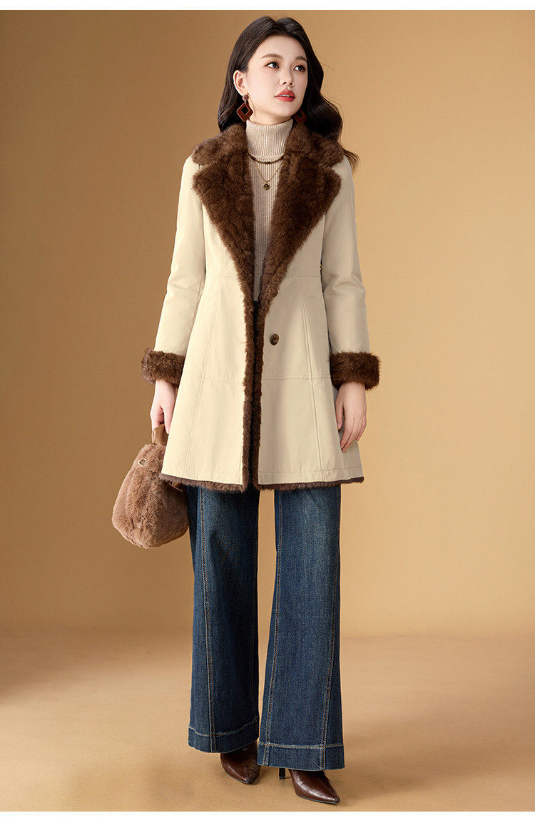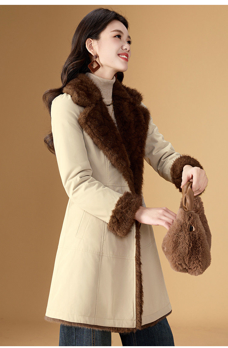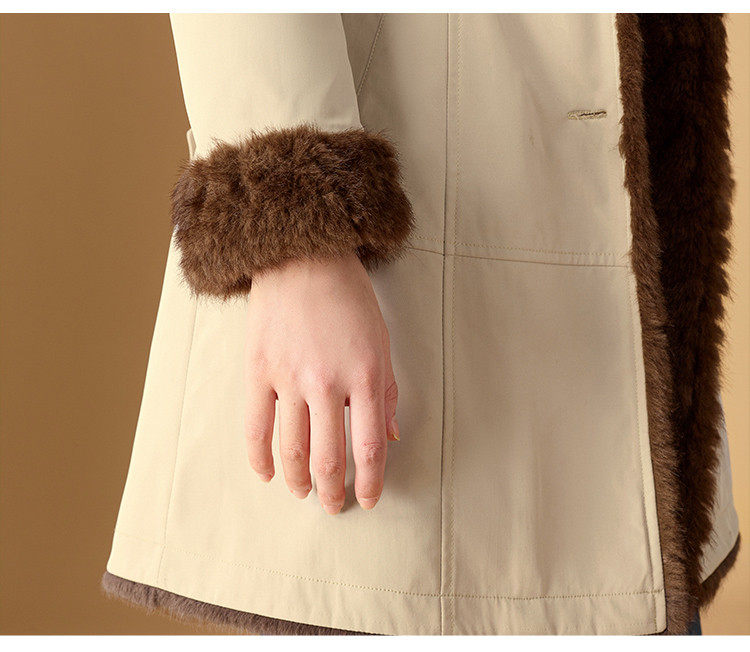 • 派克服皮毛一体外套女冬装高级感加绒加厚高端中长款皮草毛呢大衣