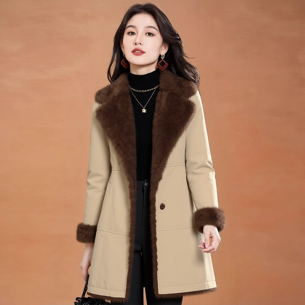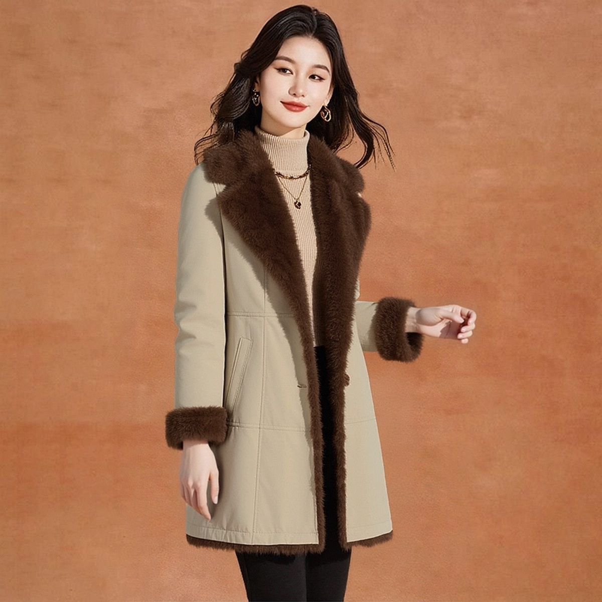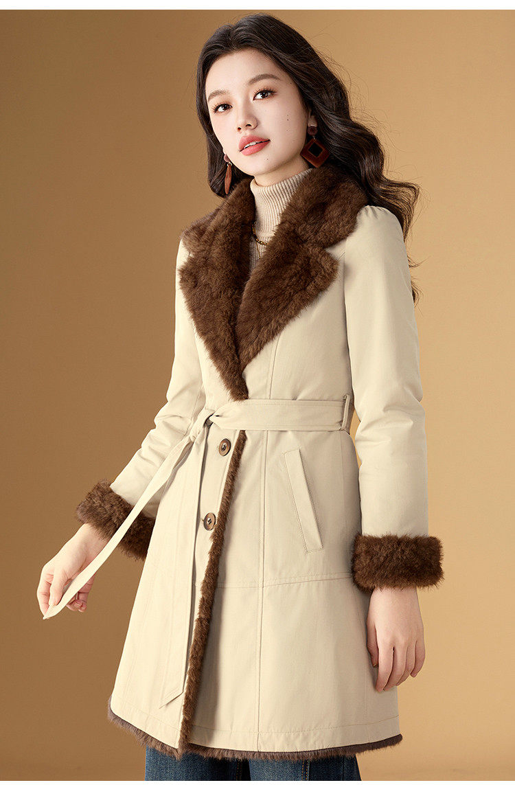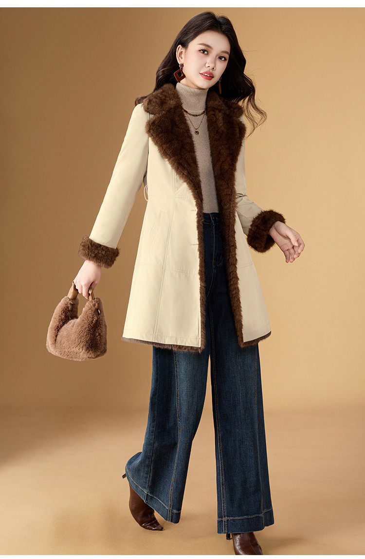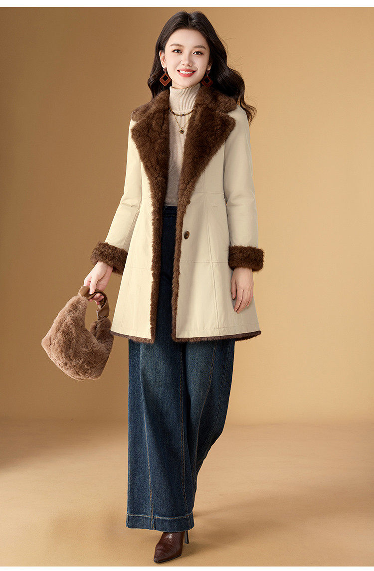 • 派克服皮毛一体外套女冬装高级感加绒加厚高端中长款皮草毛呢大衣