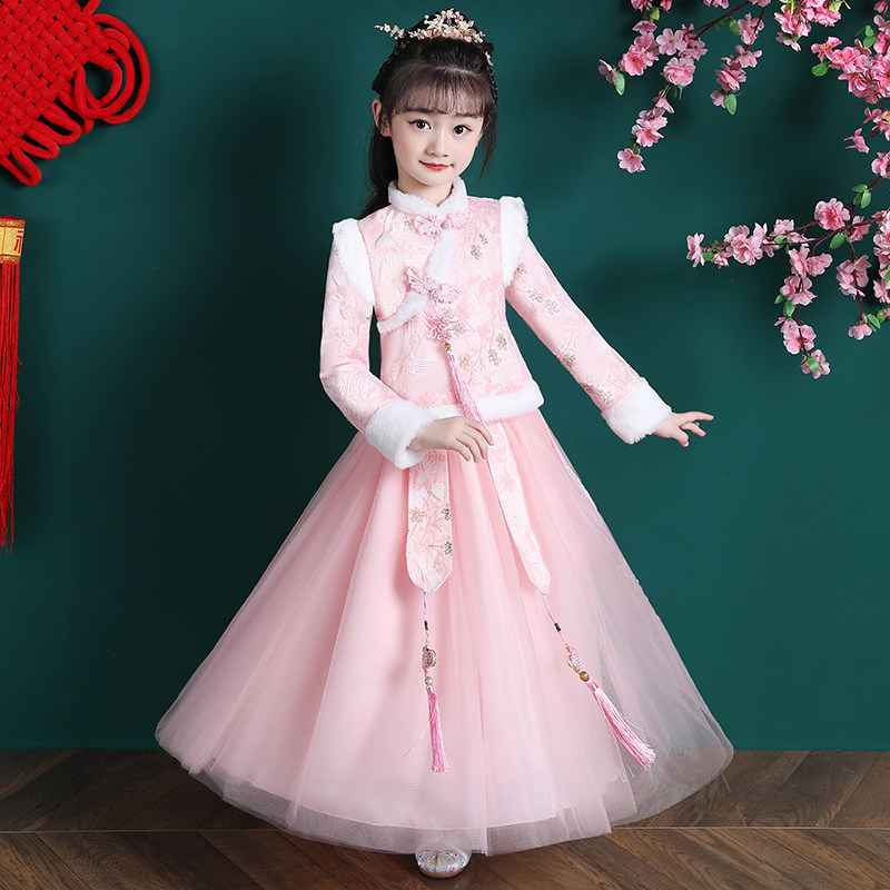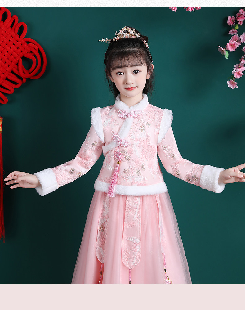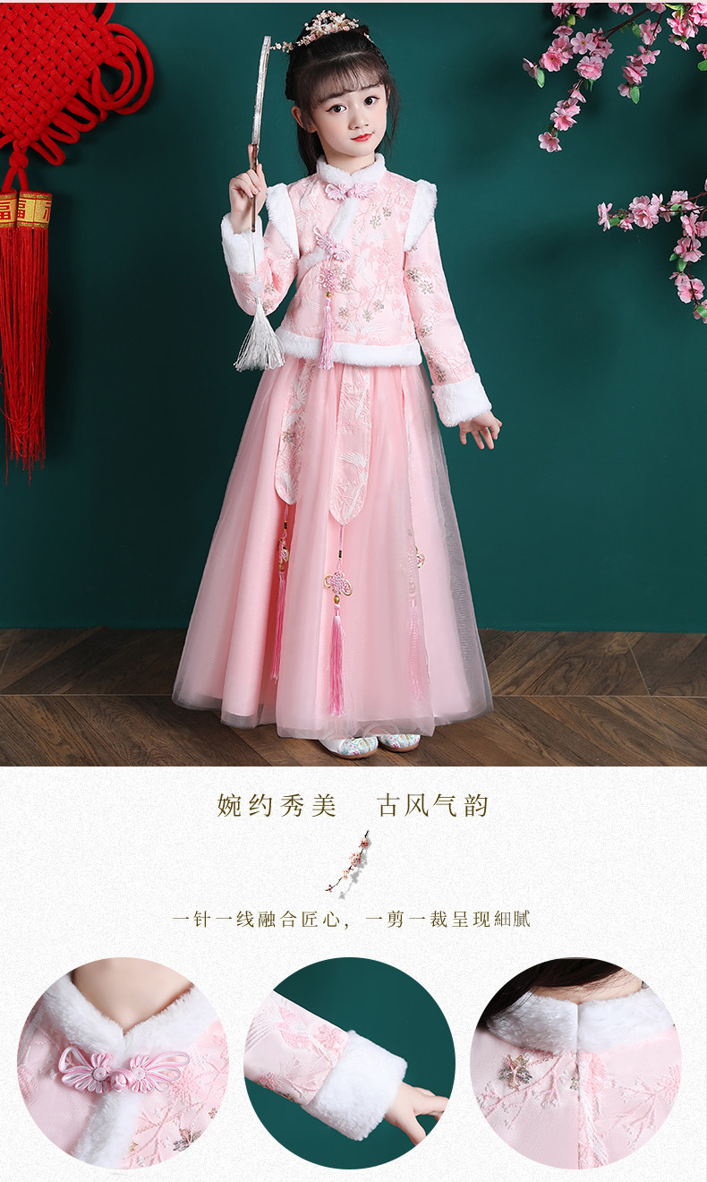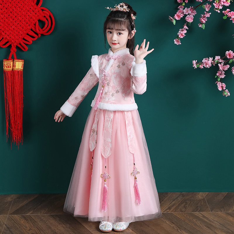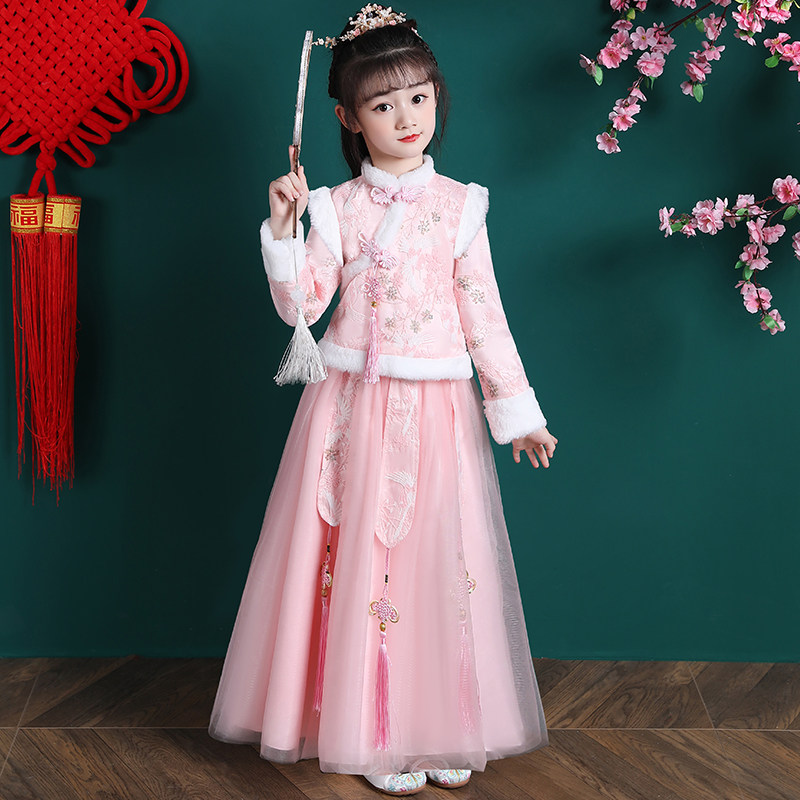 • 女童汉服冬季新款儿童唐装拜年服套装公主裙女孩冬装新年衣服裙子