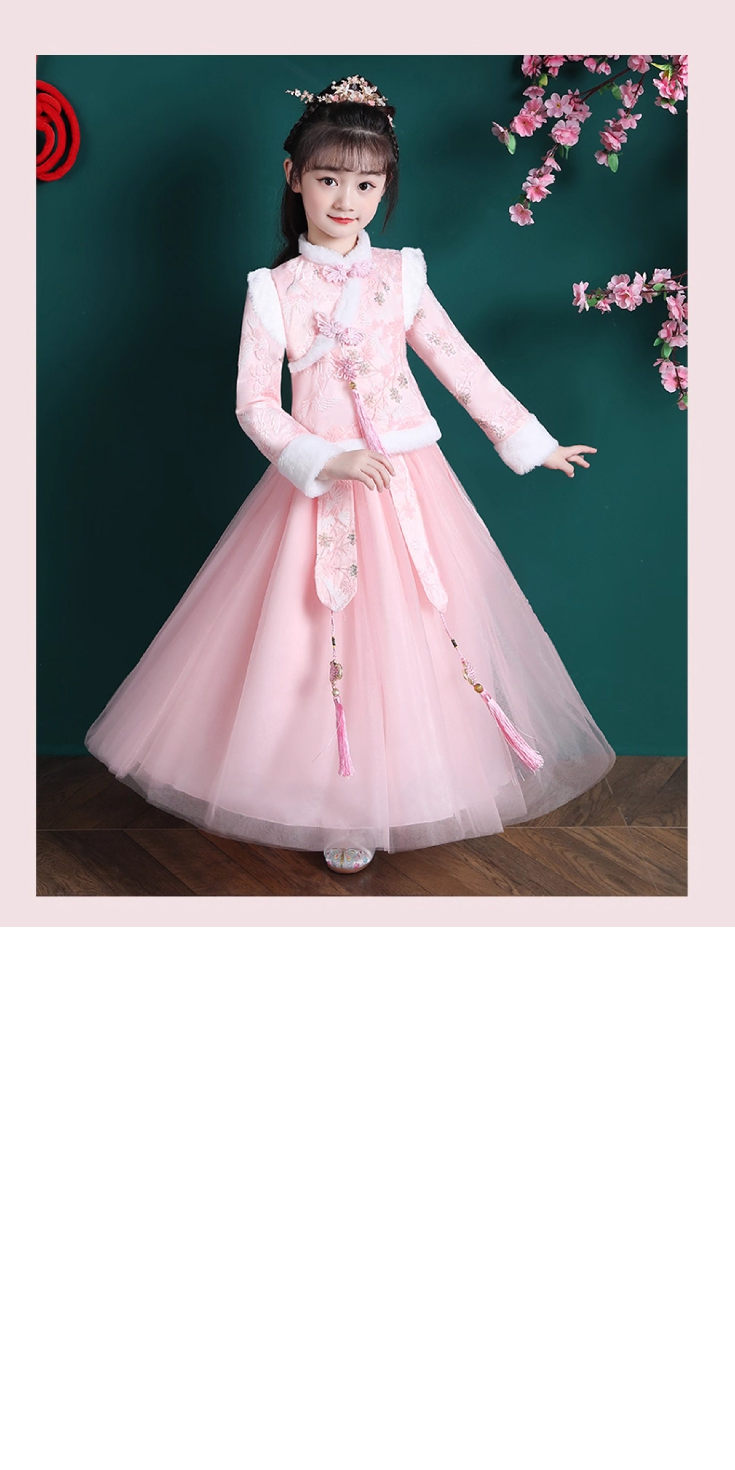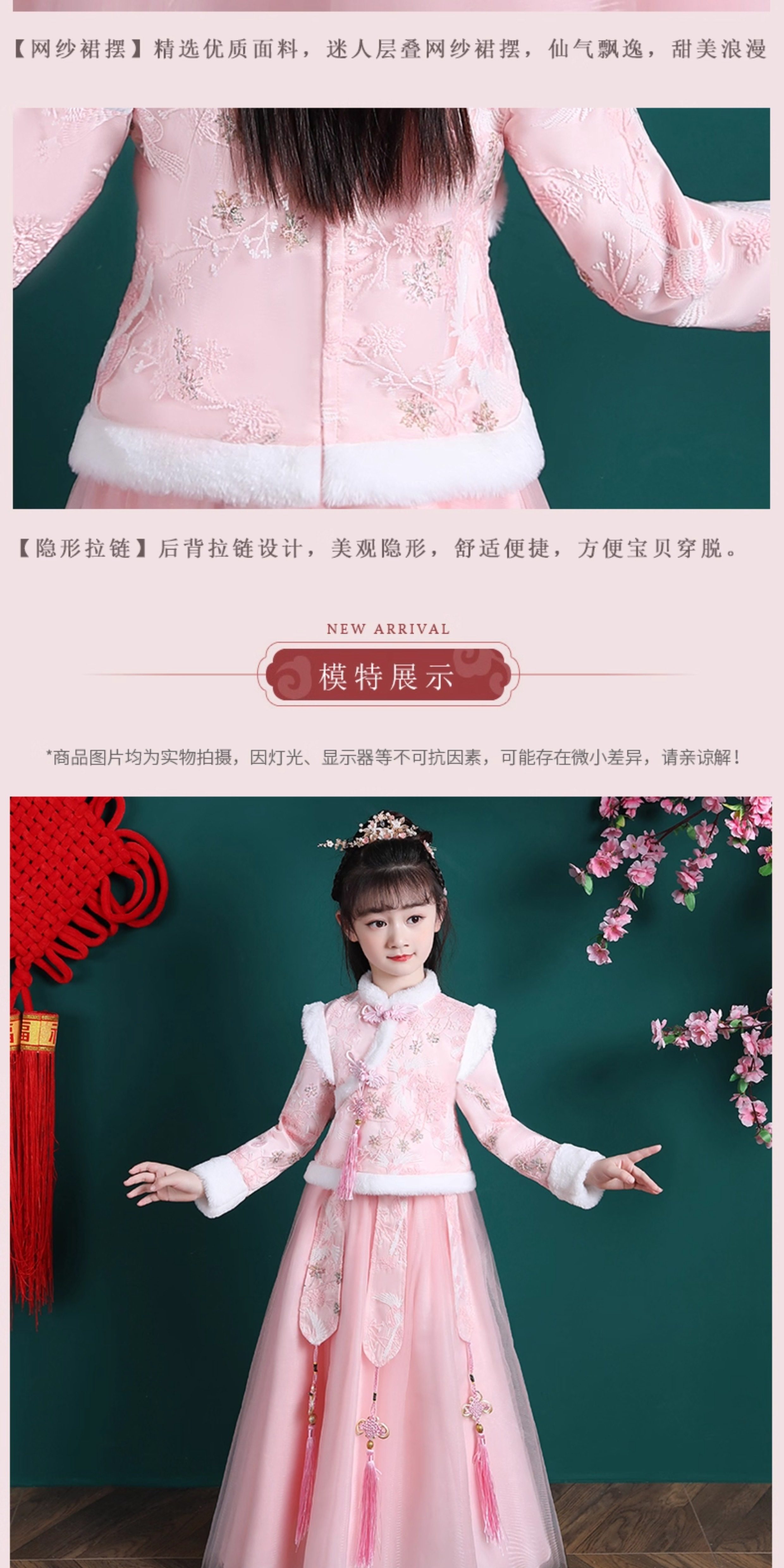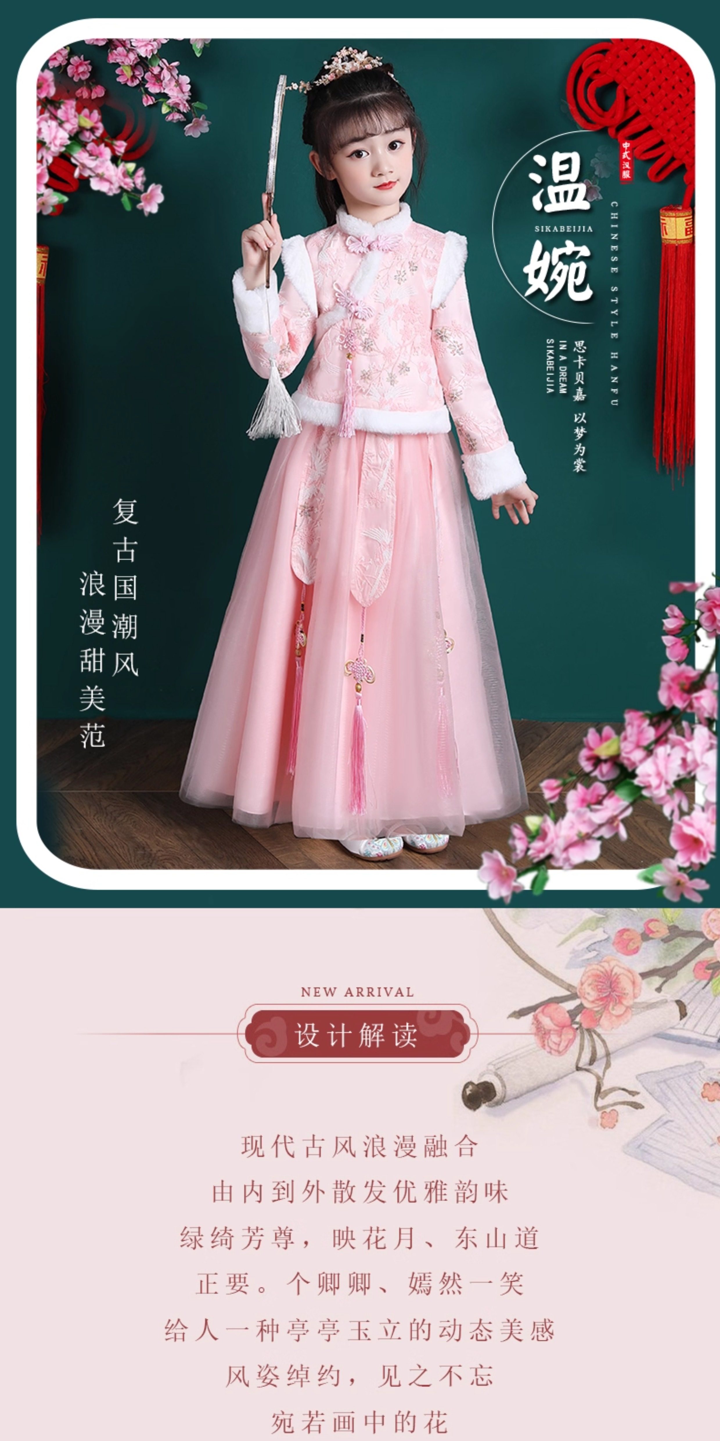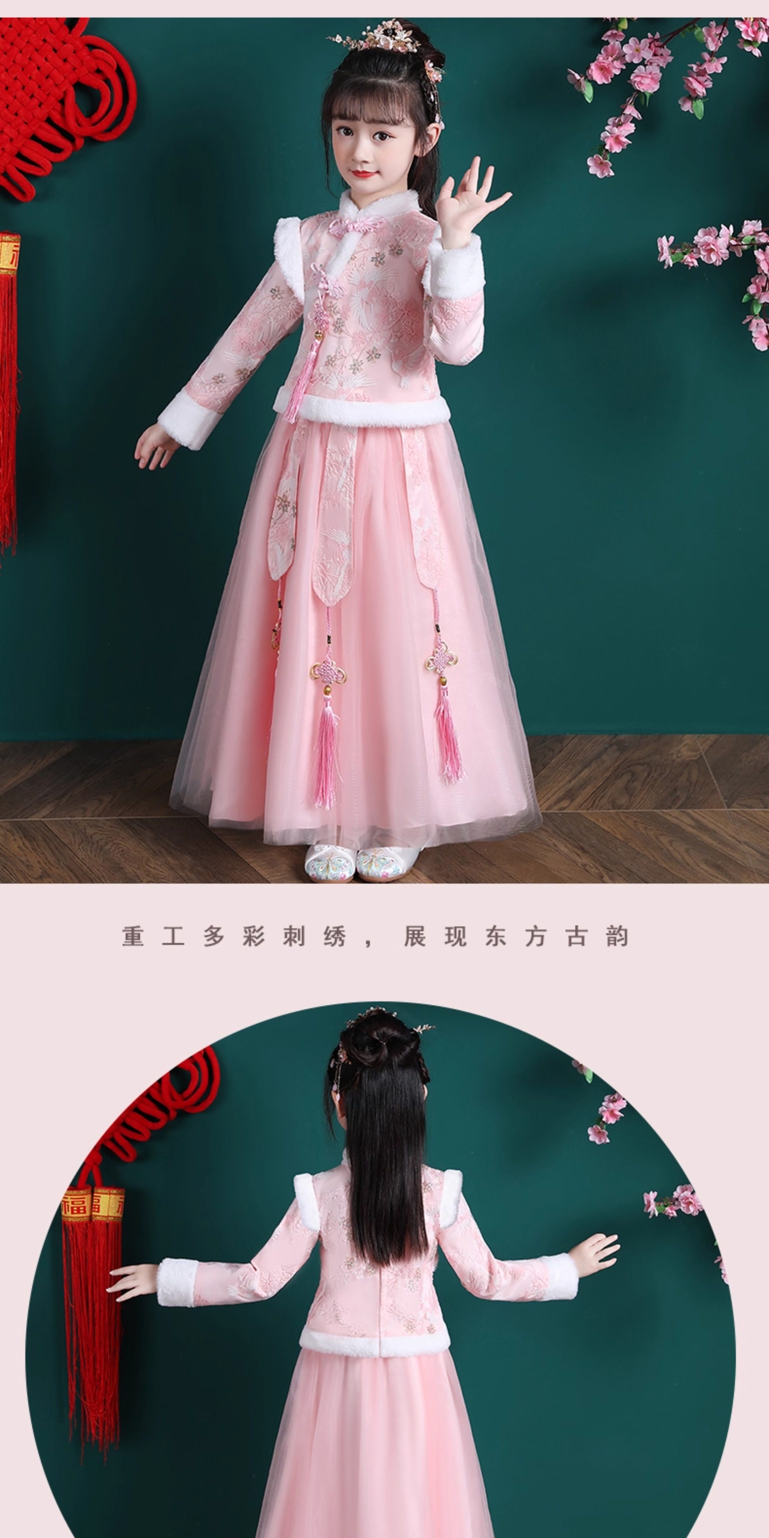 • 女童汉服冬季新款儿童唐装拜年服套装公主裙女孩冬装新年衣服裙子