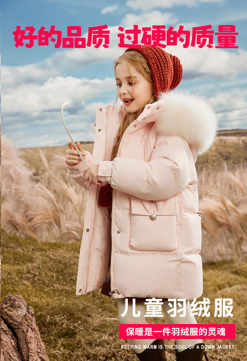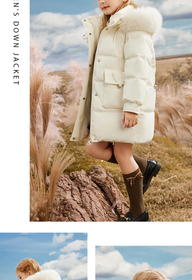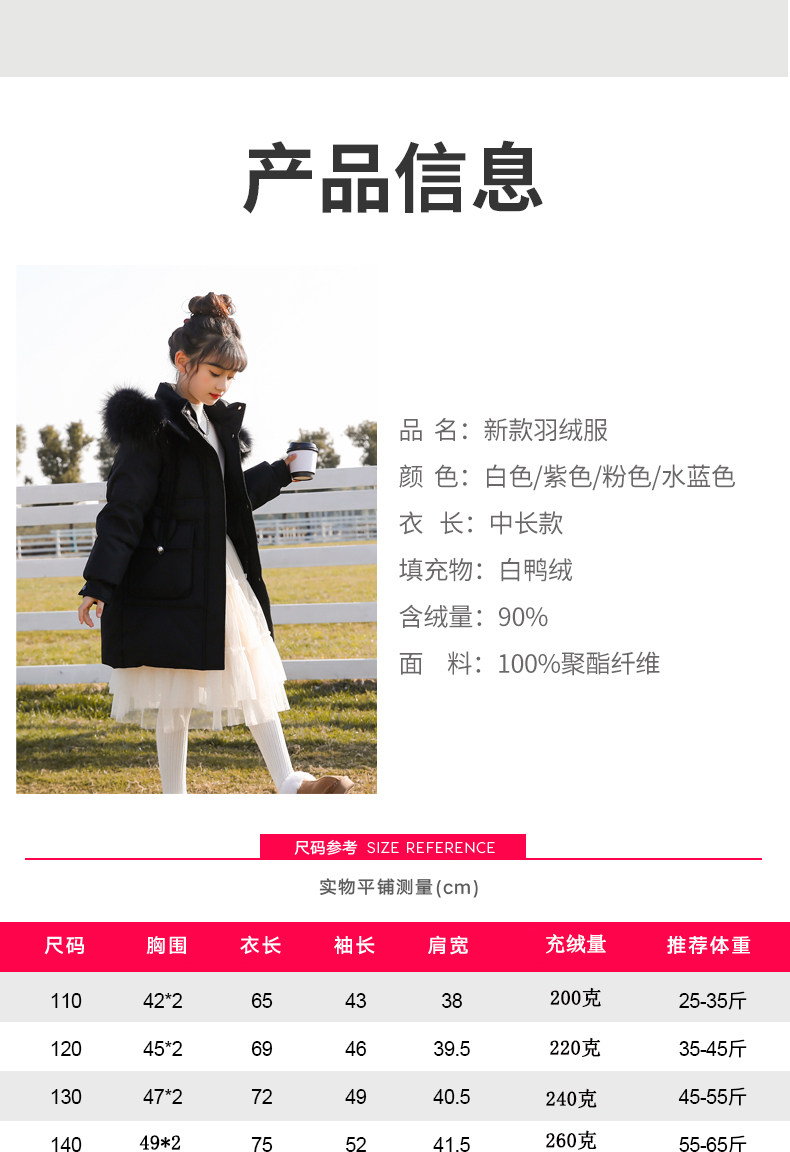 • 新款大毛领儿童羽绒服中长款女童中大童冬季亲子装宝宝加厚外套潮