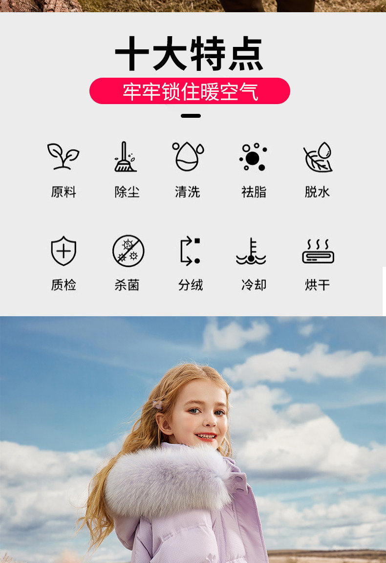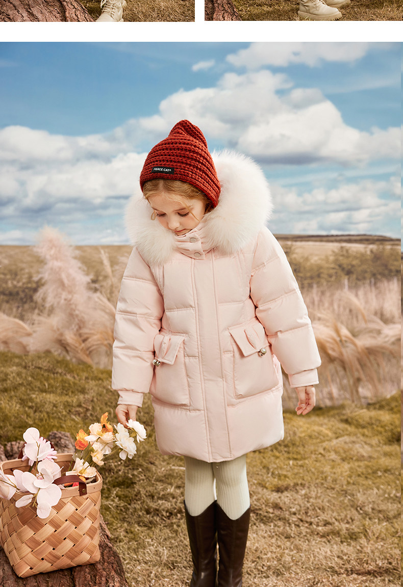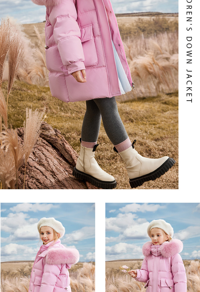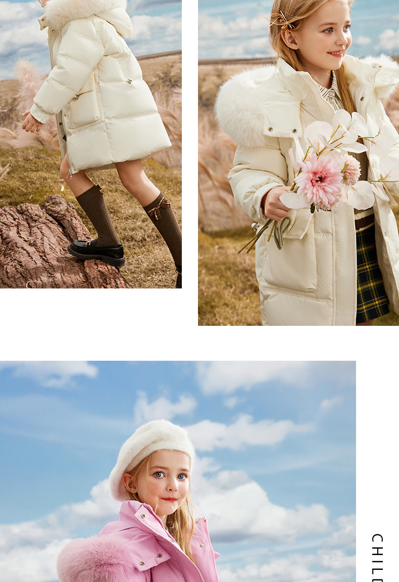 • 新款大毛领儿童羽绒服中长款女童中大童冬季亲子装宝宝加厚外套潮