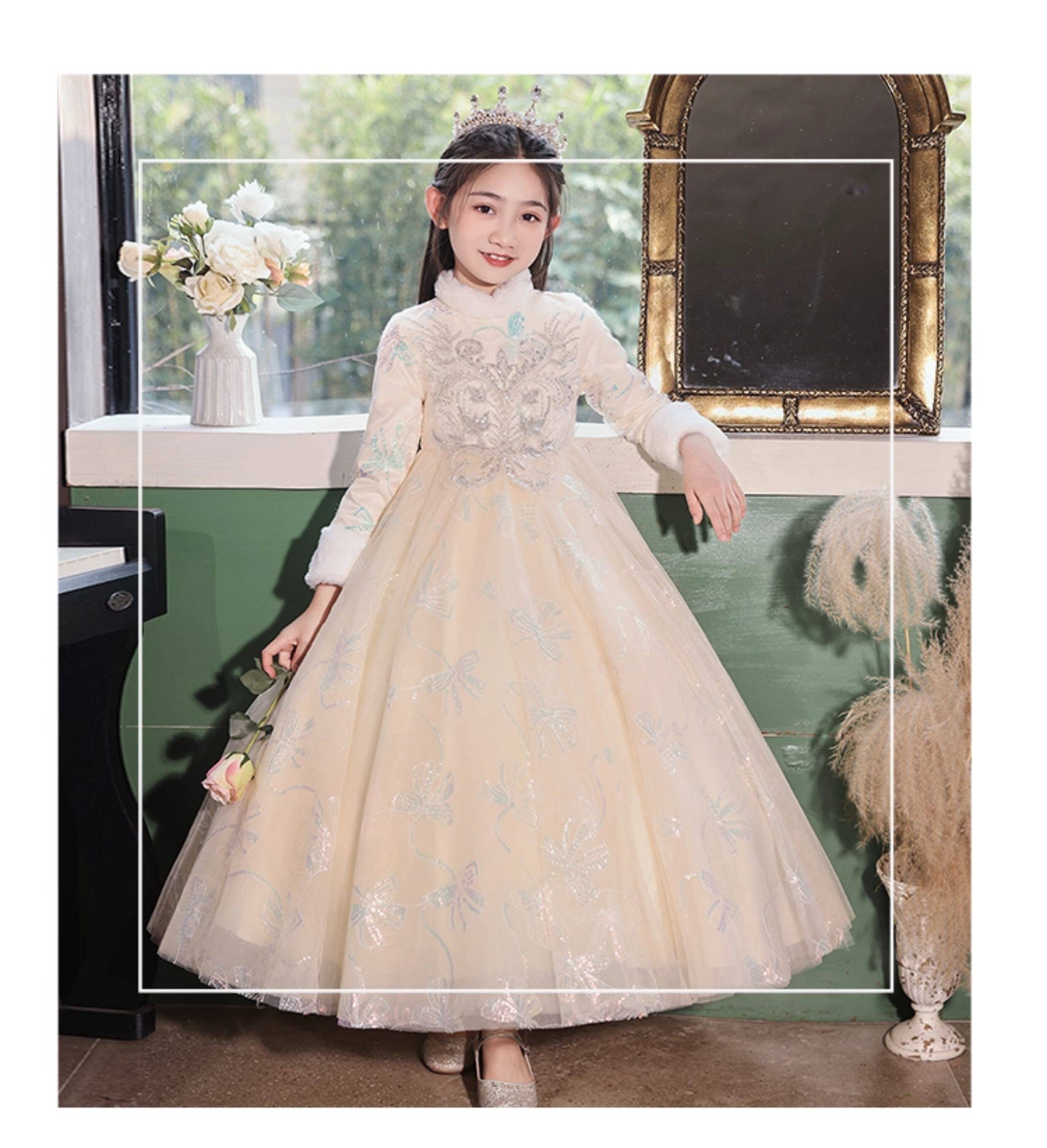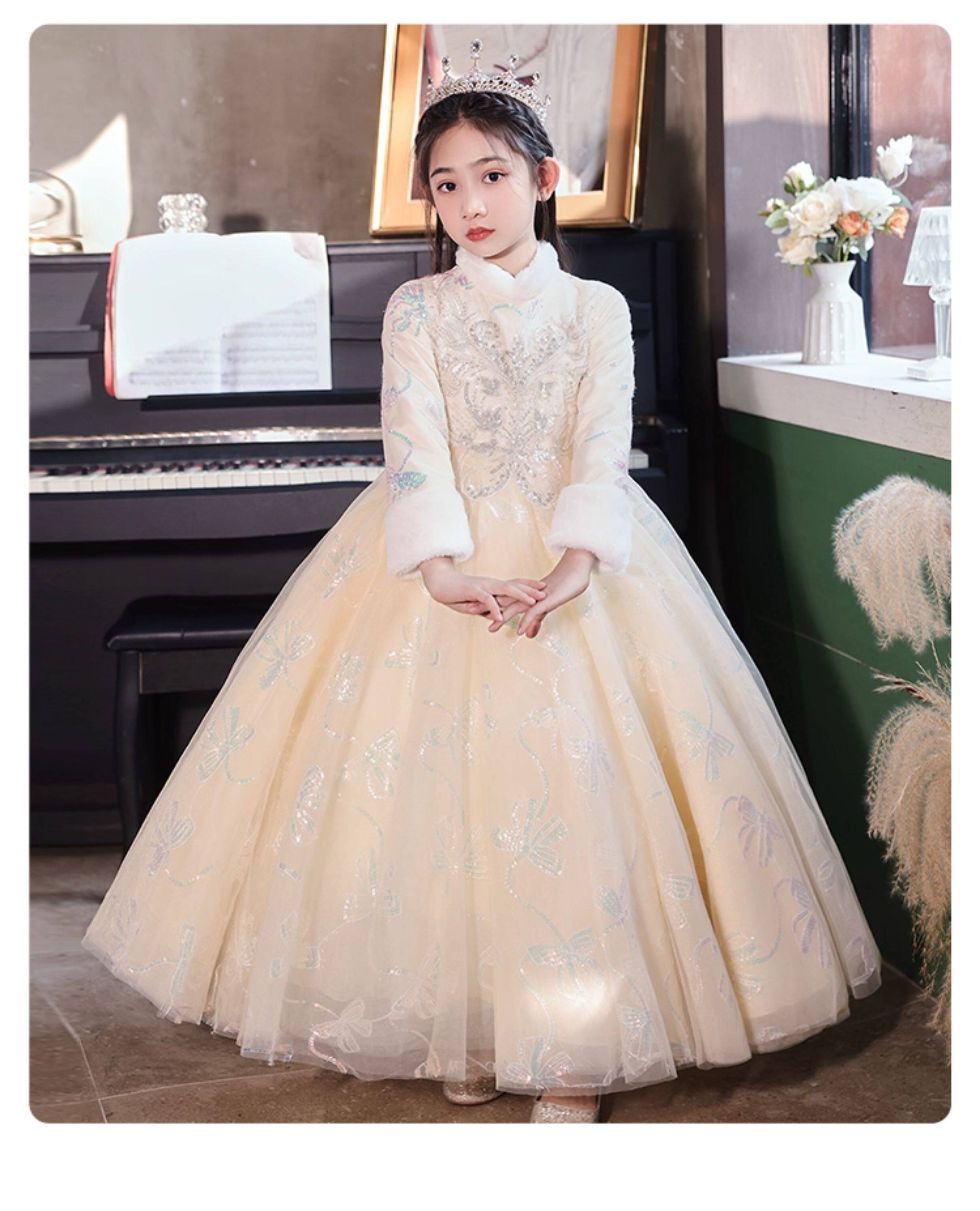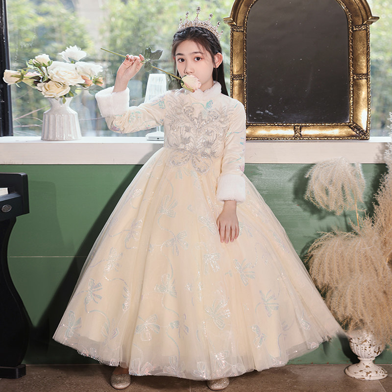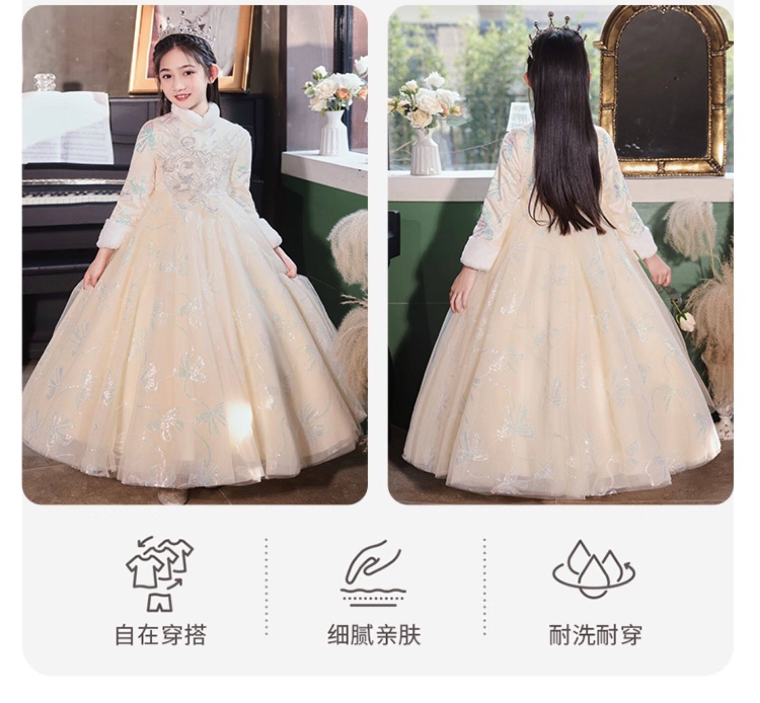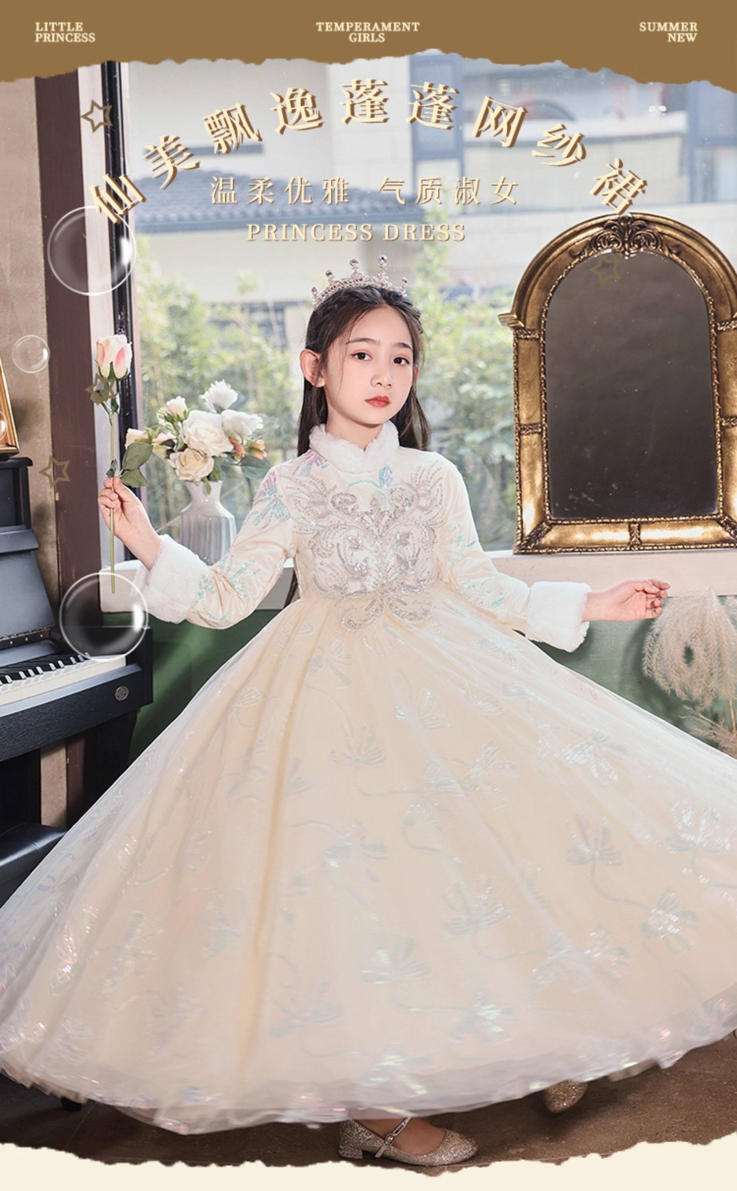 • 儿童礼服公主裙秋冬加厚女童生日花童婚礼主持人小女孩钢琴演出服