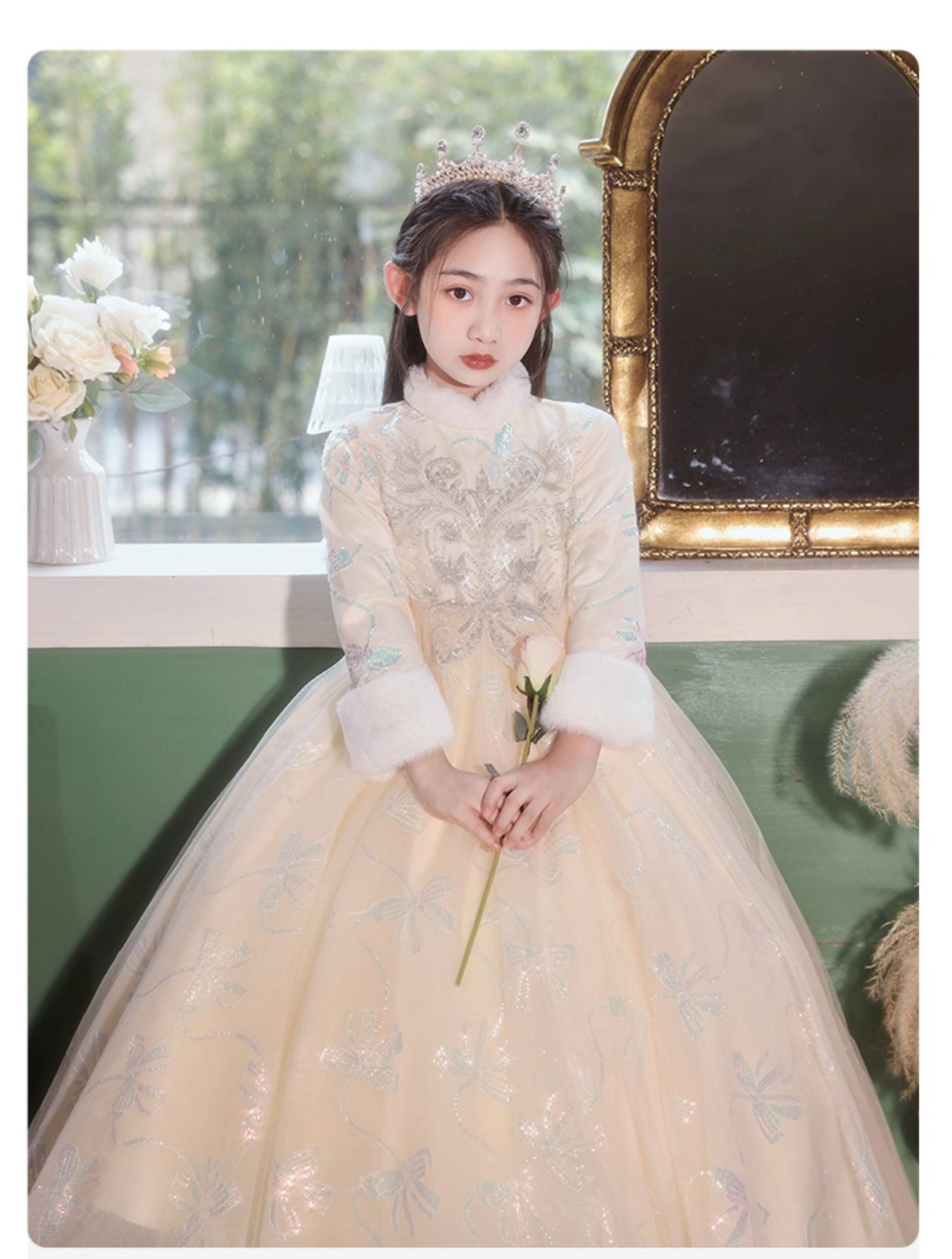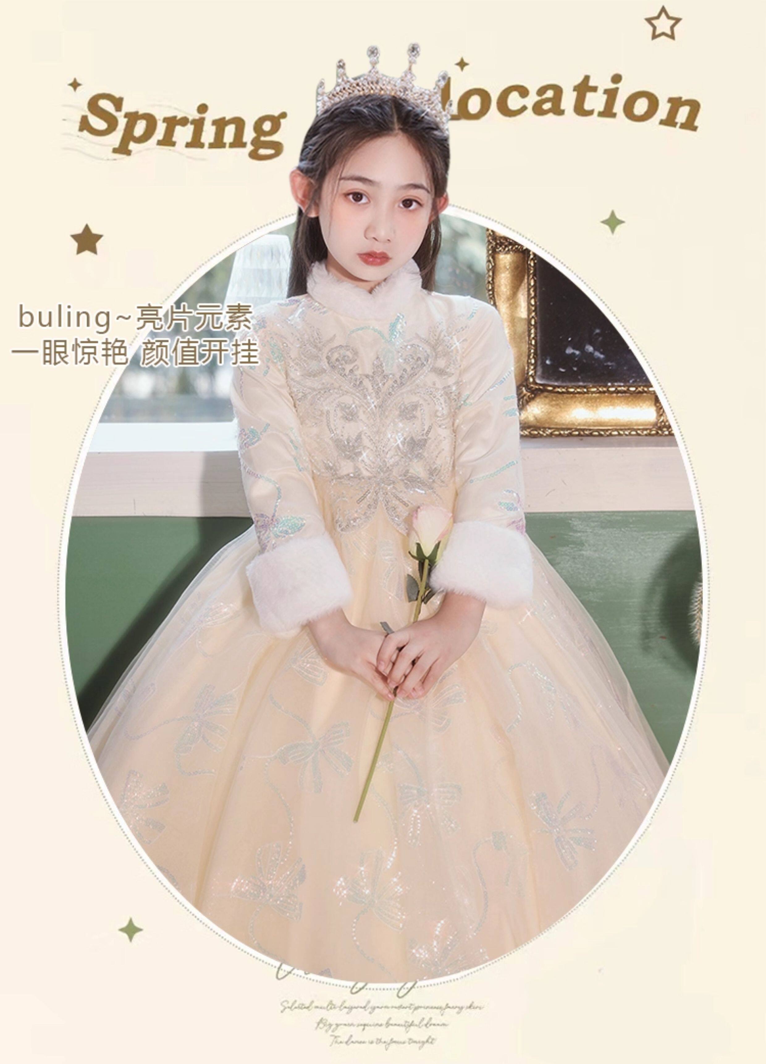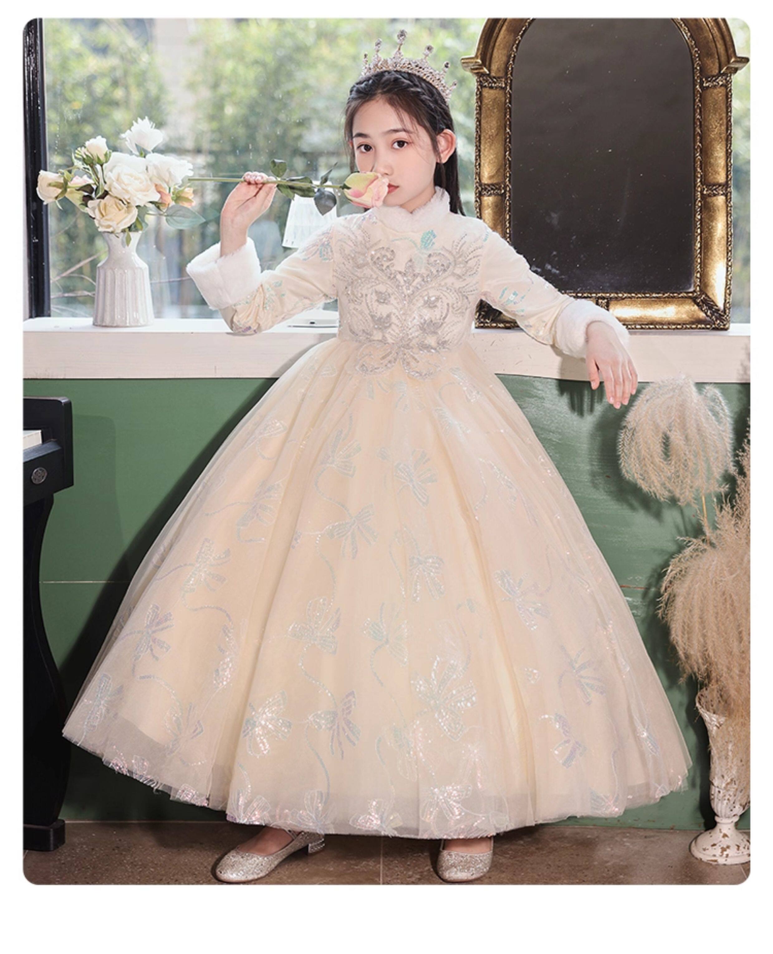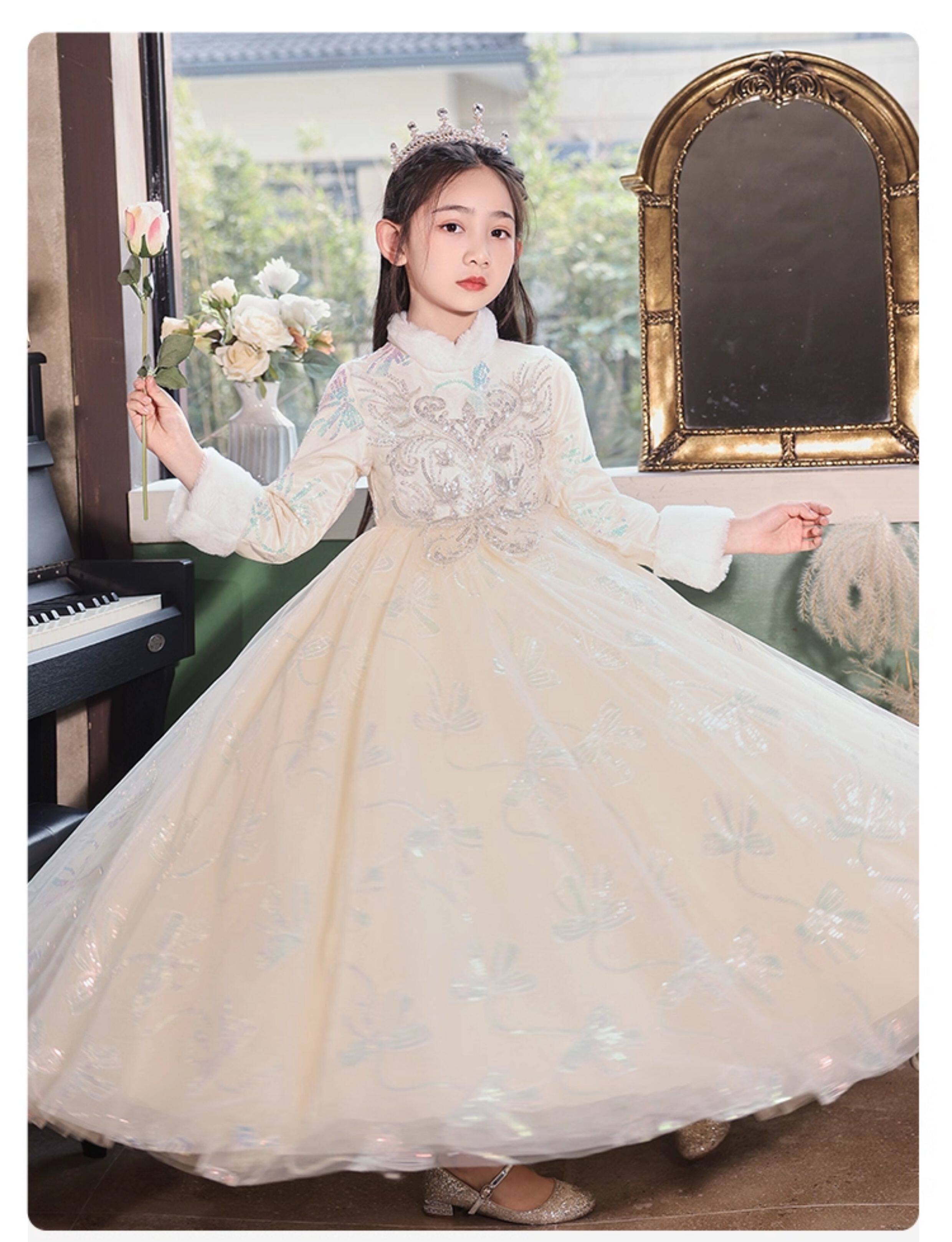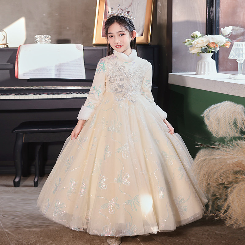 • 儿童礼服公主裙秋冬加厚女童生日花童婚礼主持人小女孩钢琴演出服