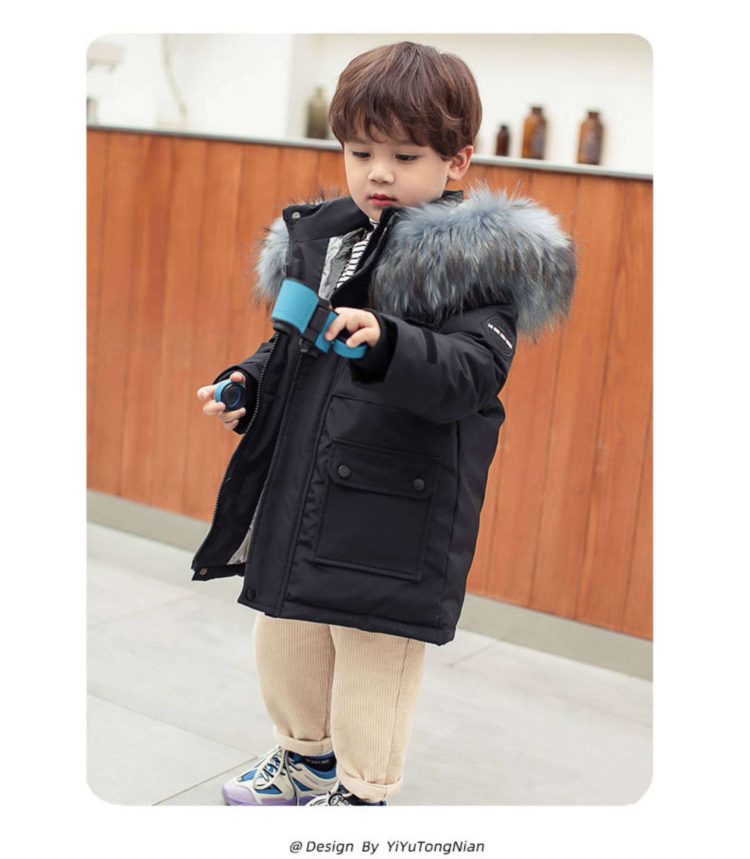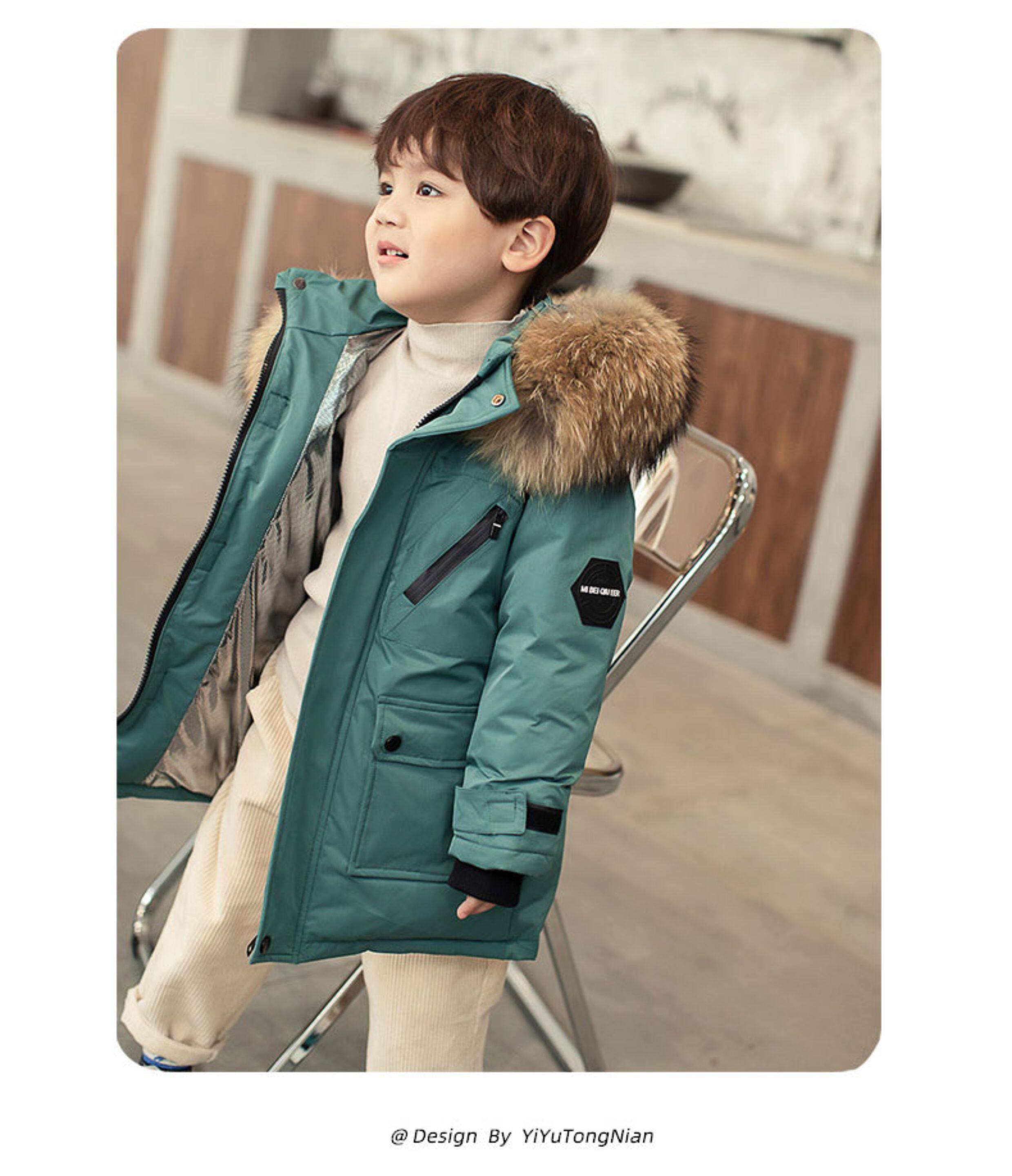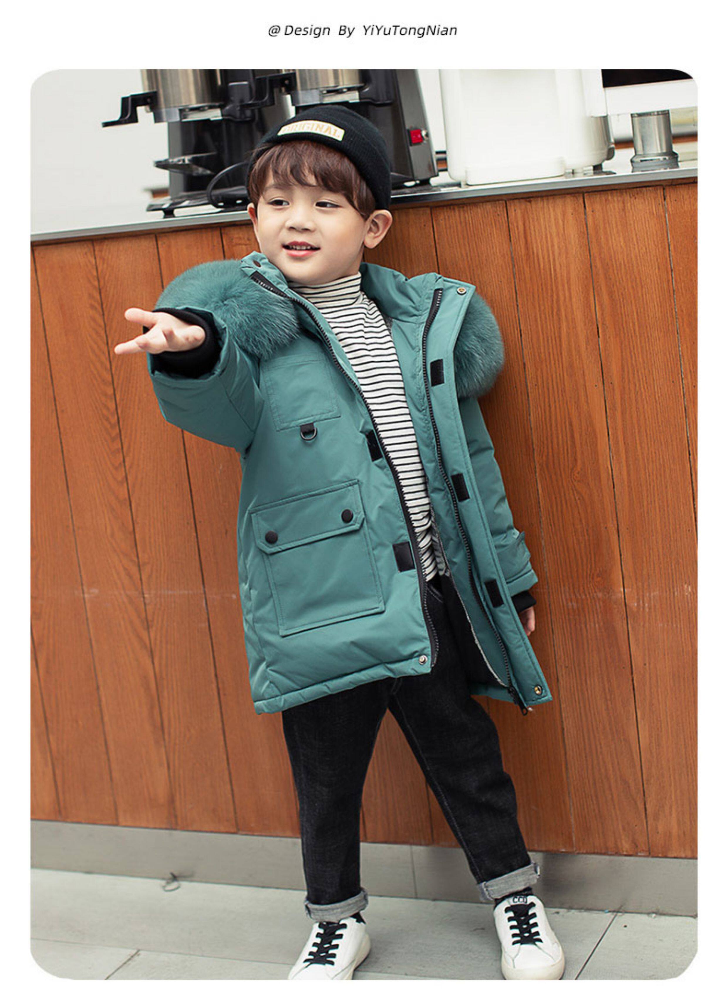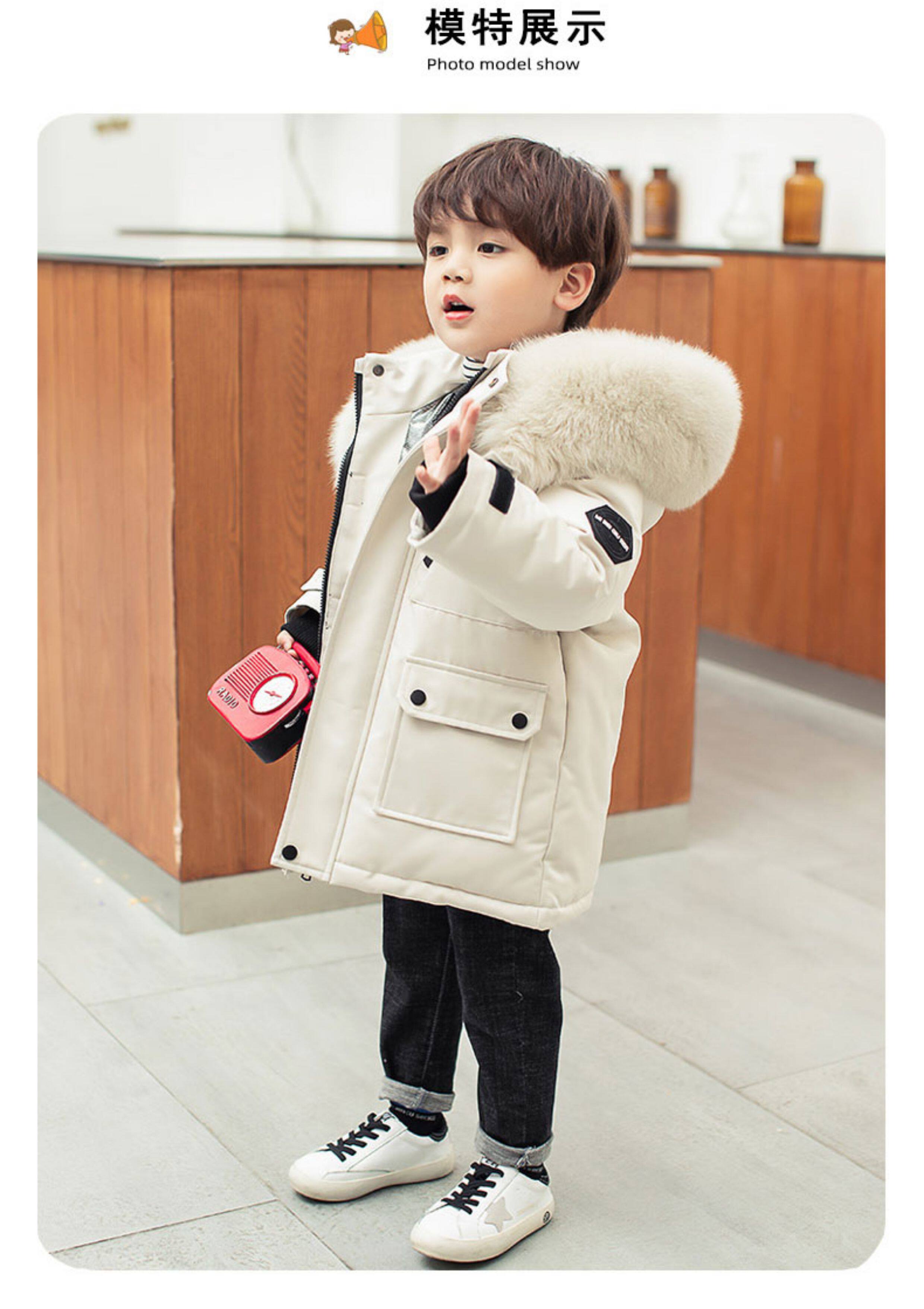 • 中长款儿童羽绒服男童中长款洋气小童宝宝加厚冬装外套2025新款