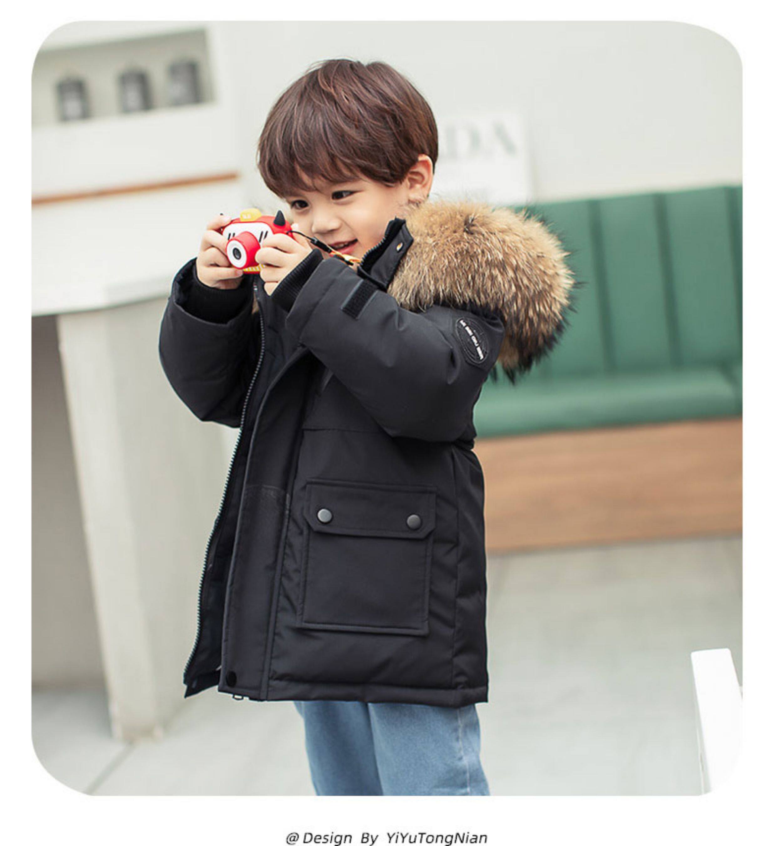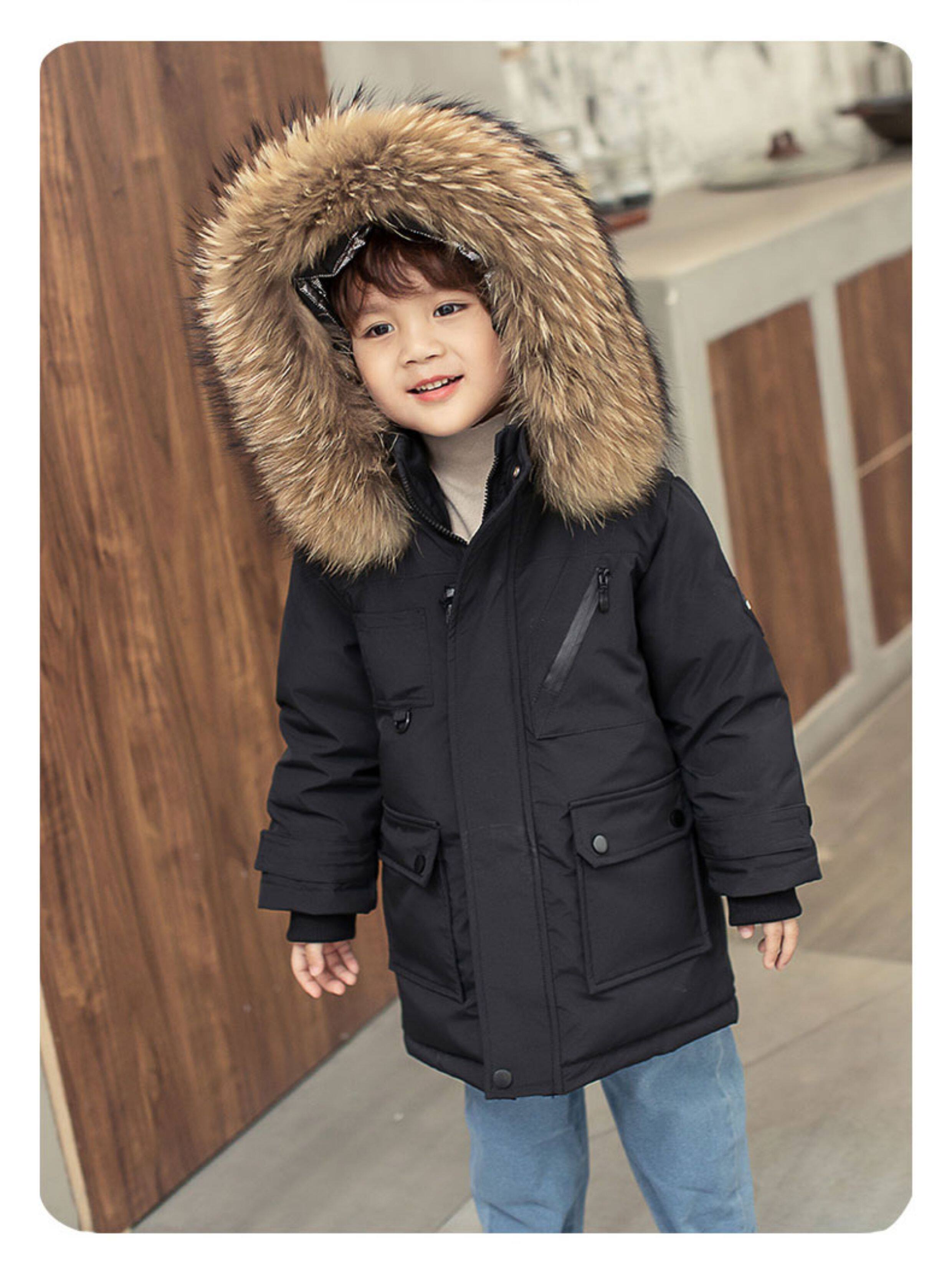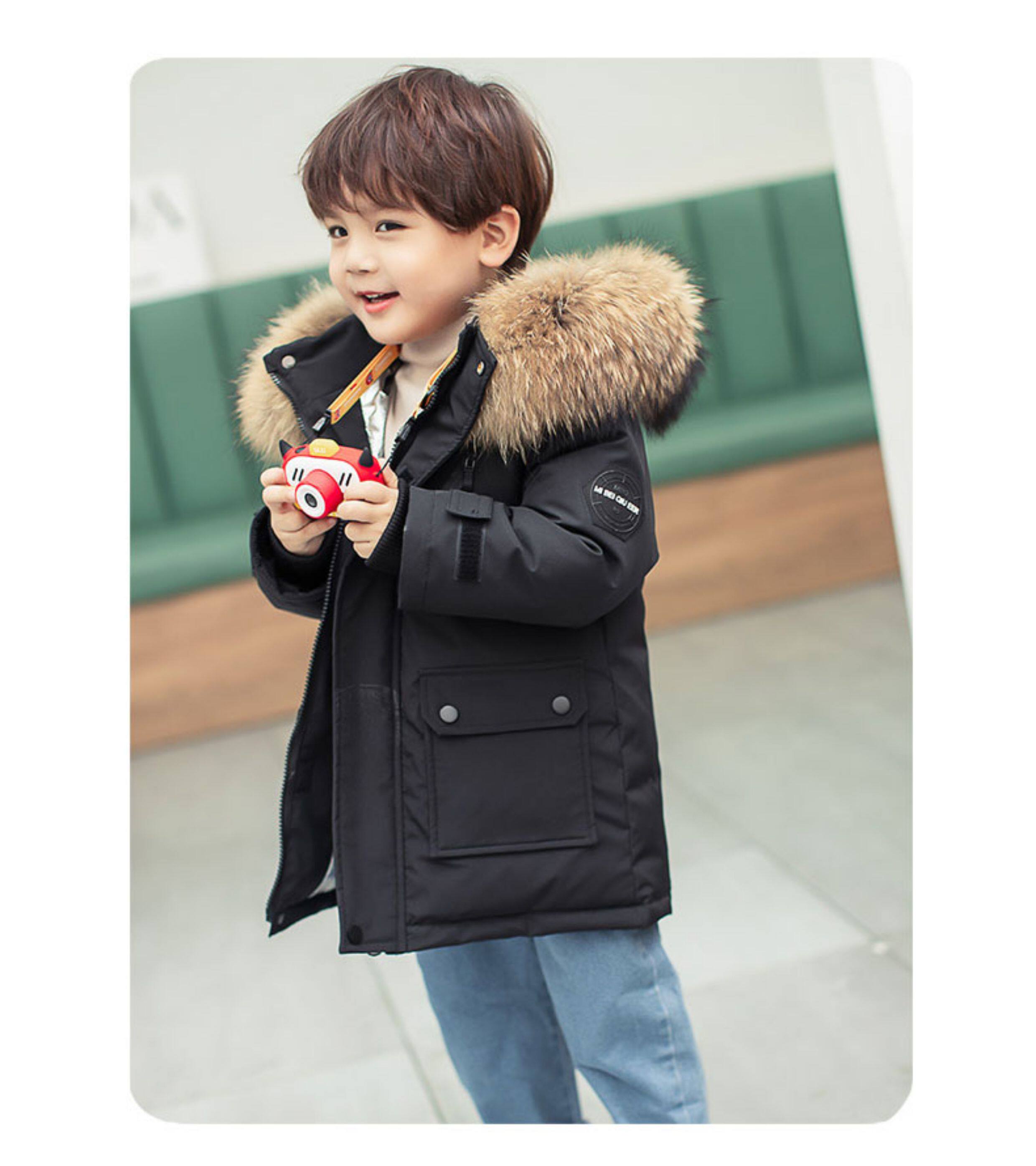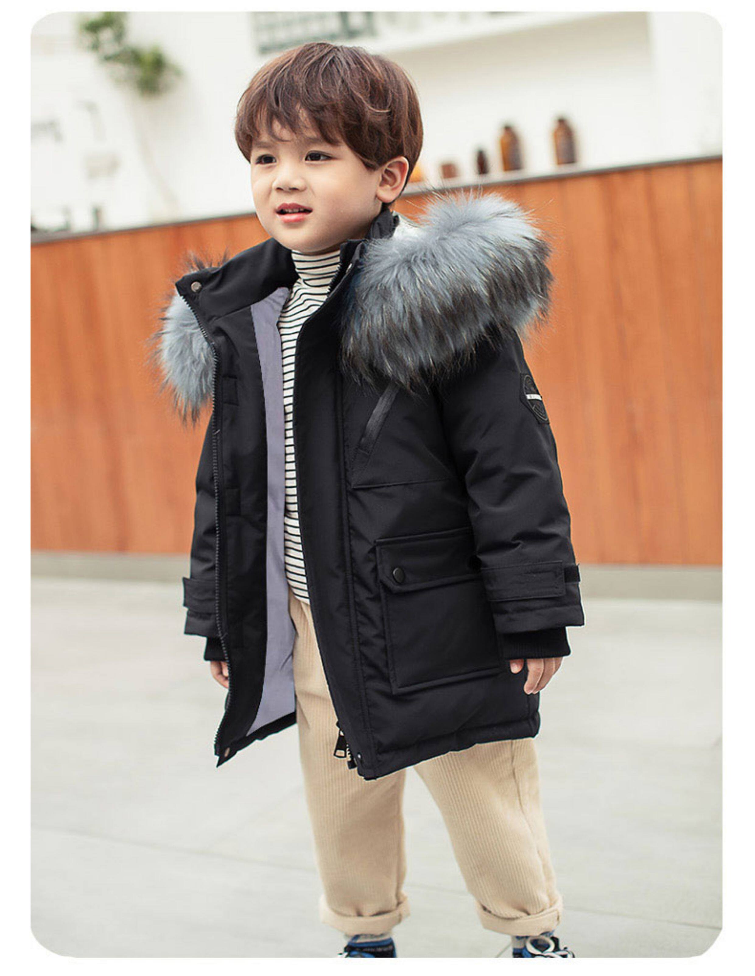 • 中长款儿童羽绒服男童中长款洋气小童宝宝加厚冬装外套2025新款