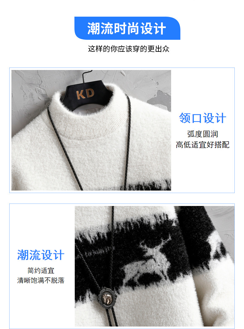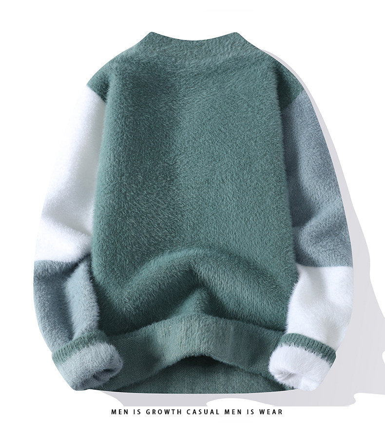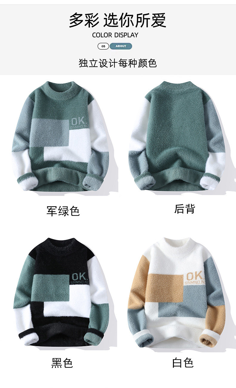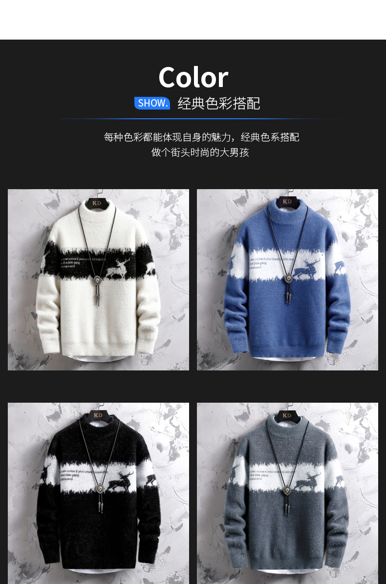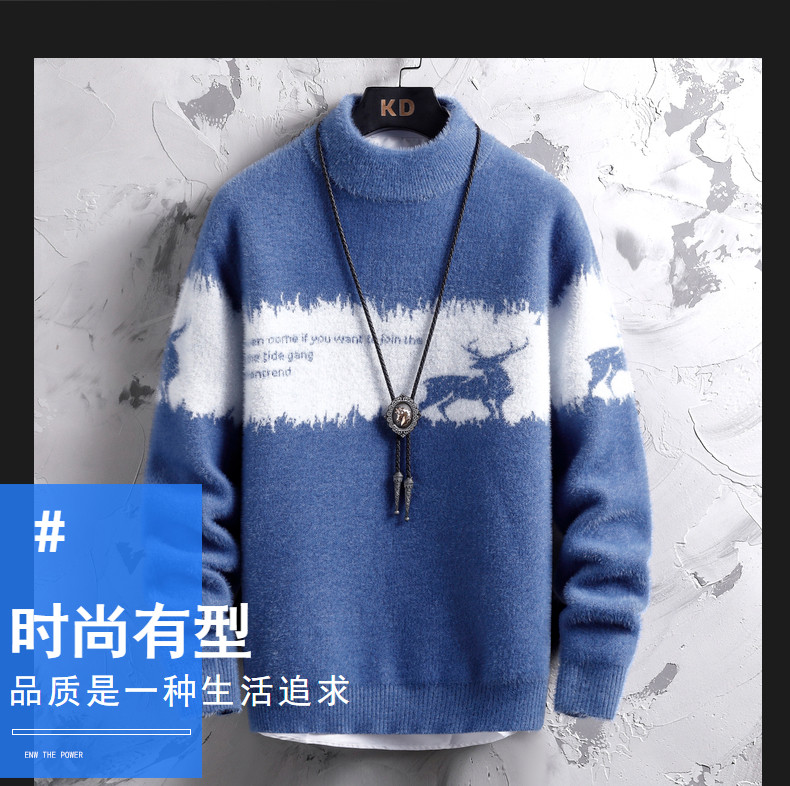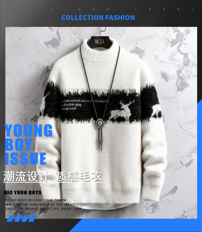 • 半高领毛衣男士秋冬新款青少年加厚仿貂绒打底衫保暖打底冬装上衣