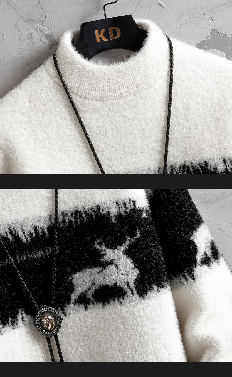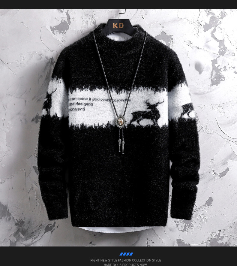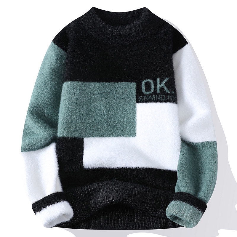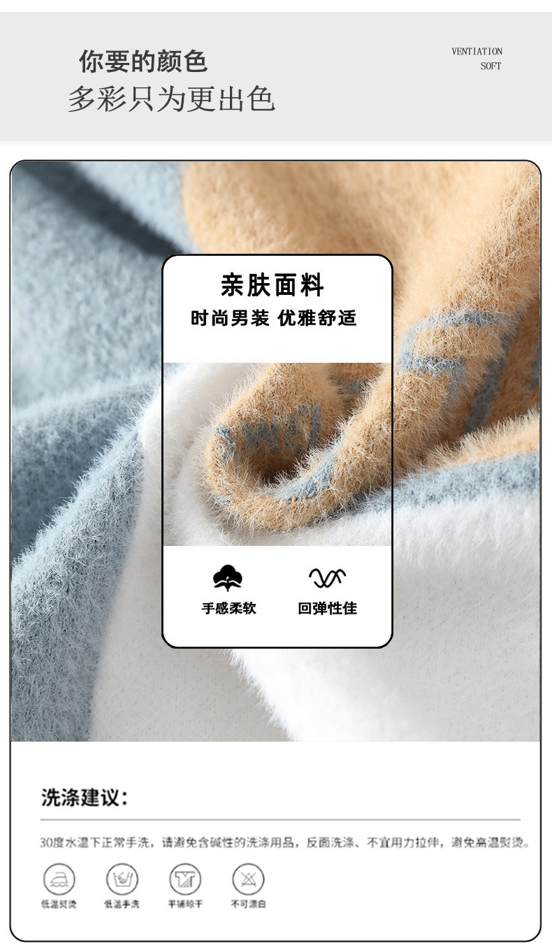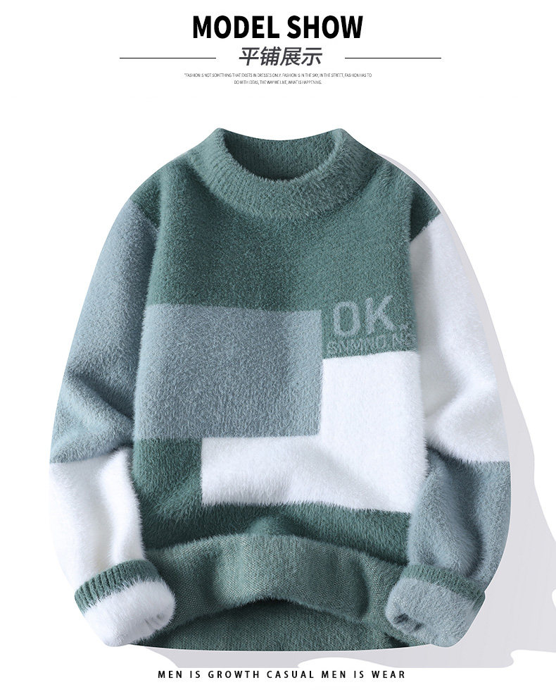 • 半高领毛衣男士秋冬新款青少年加厚仿貂绒打底衫保暖打底冬装上衣