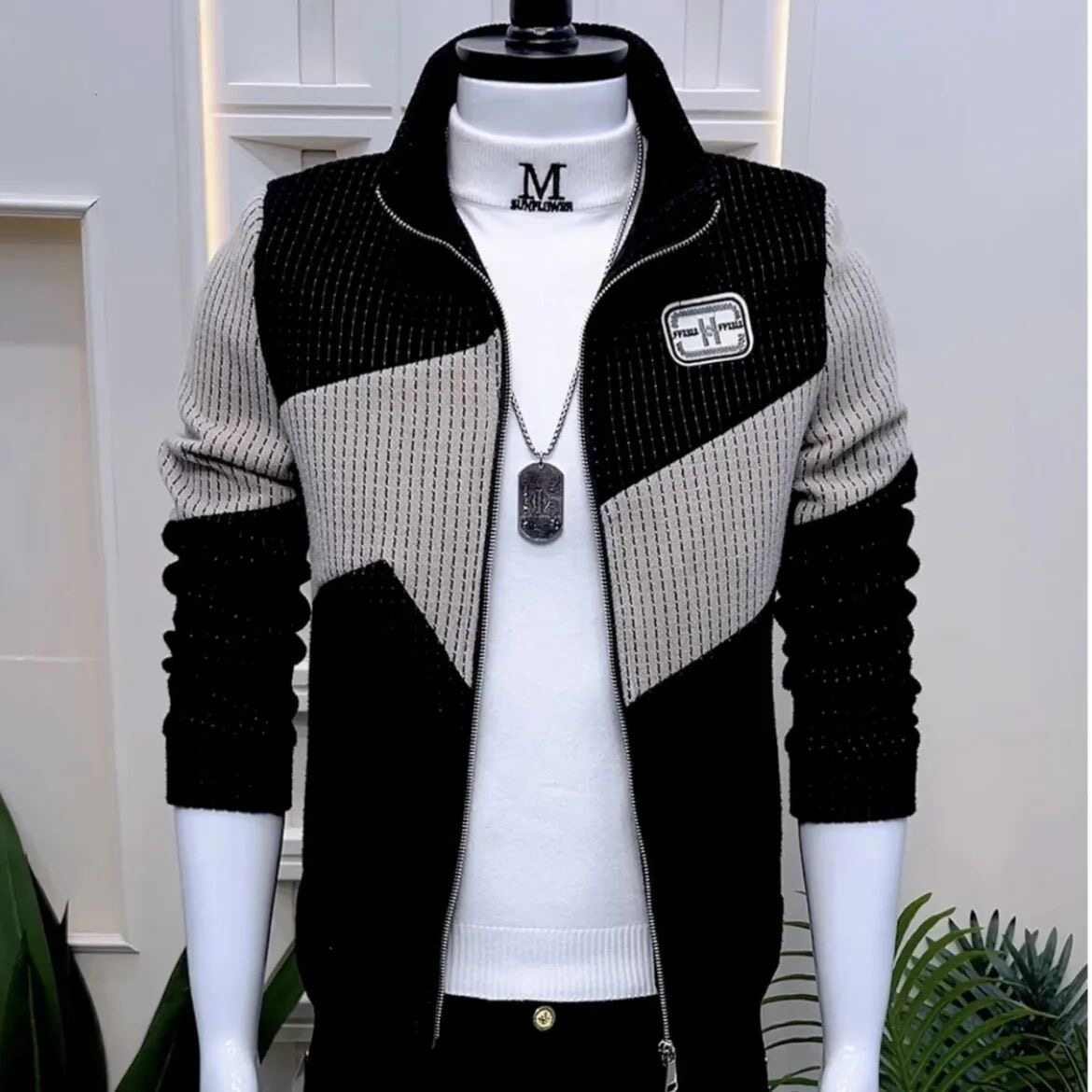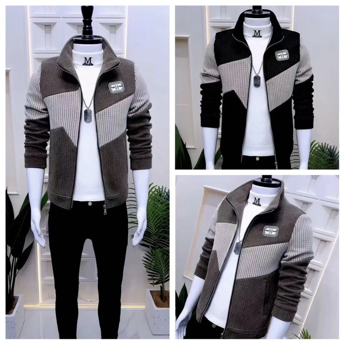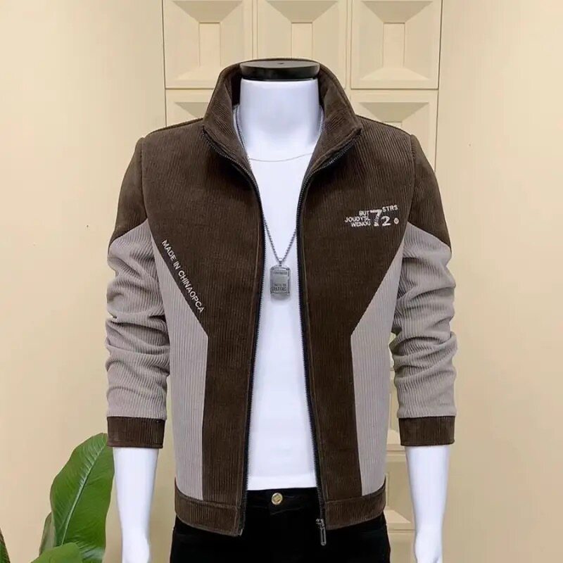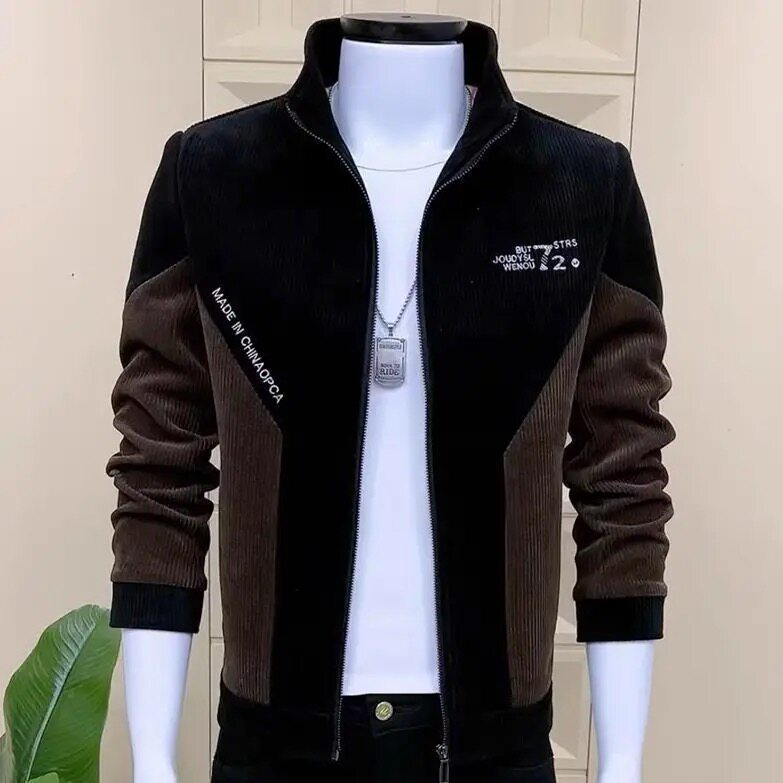 • 男士春秋季衣服新款外套夹克立领休闲拼色潮流高档帅气修身男装