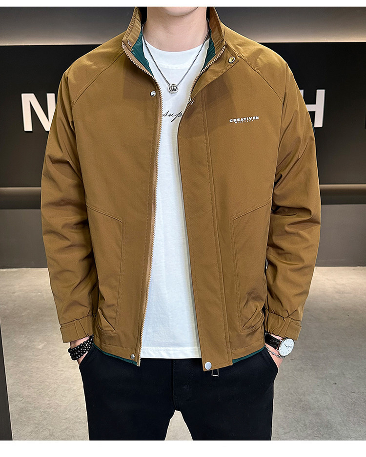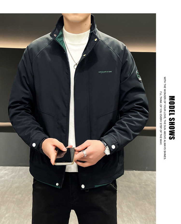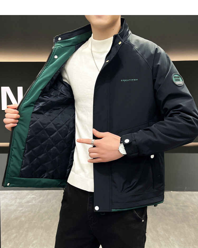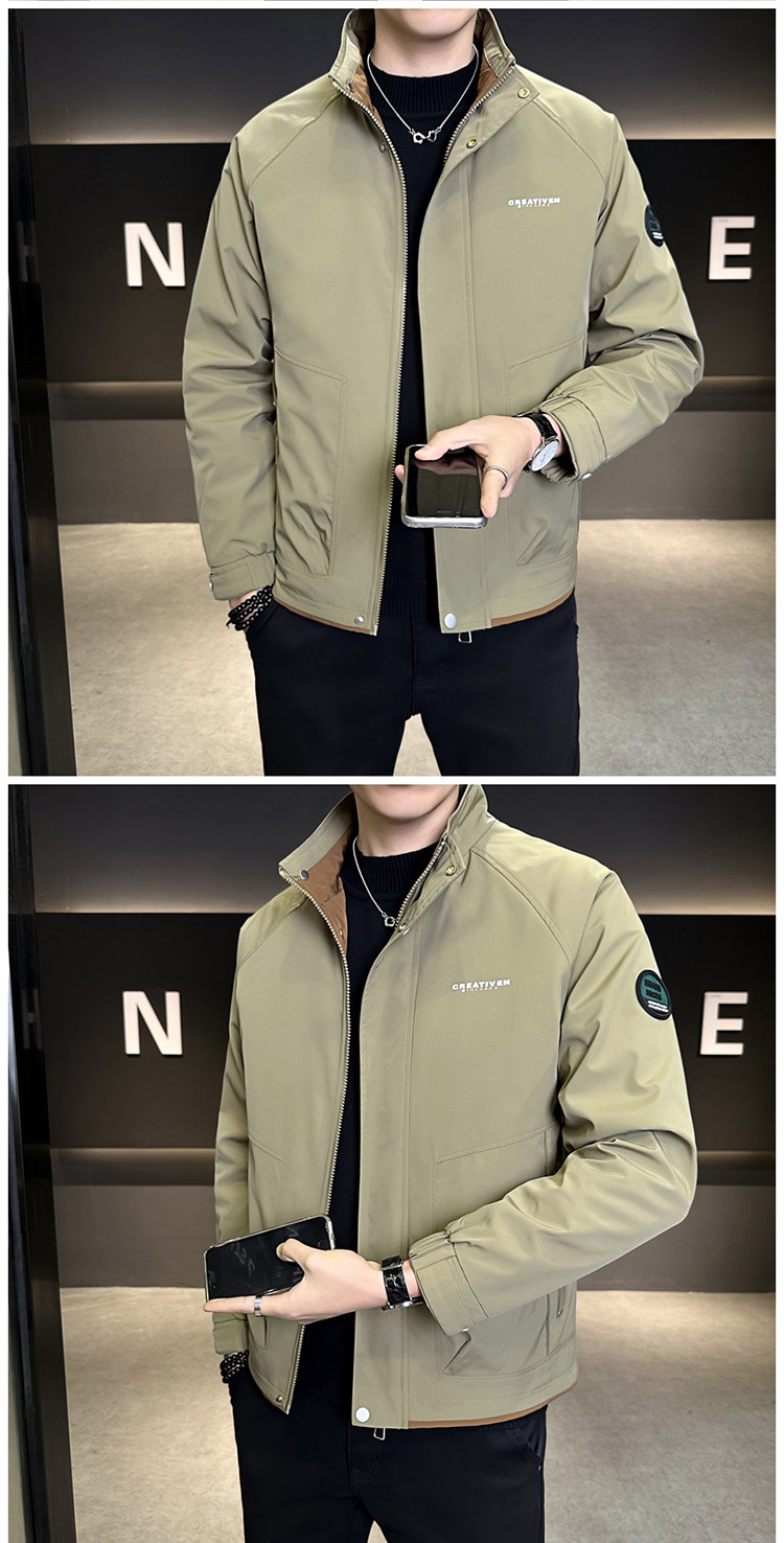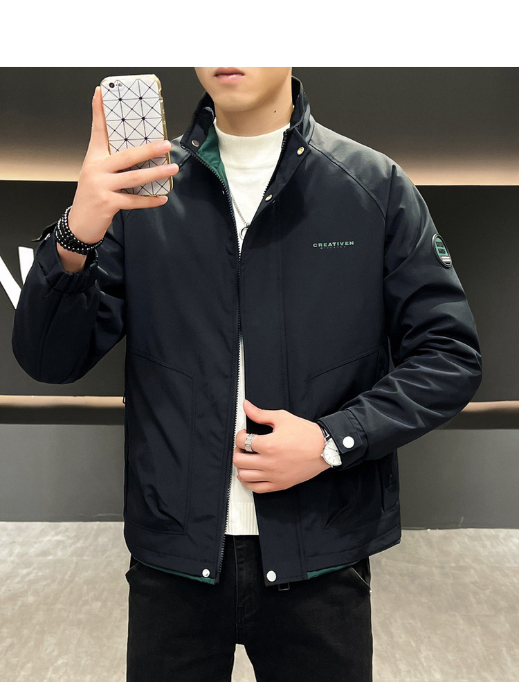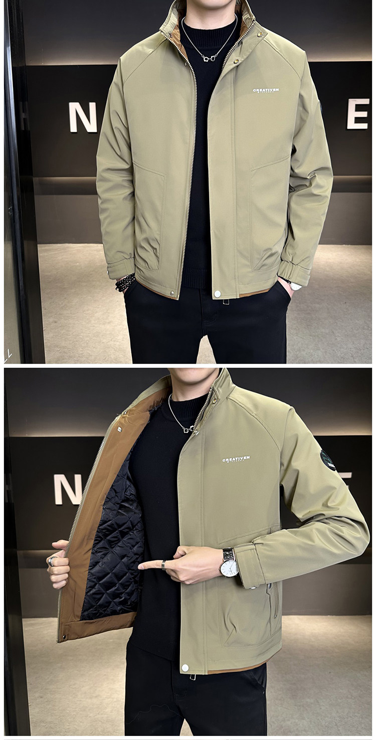 • 春秋新款外套男士时尚休闲工装立领加棉夹克潮流帅气加厚百搭棉服