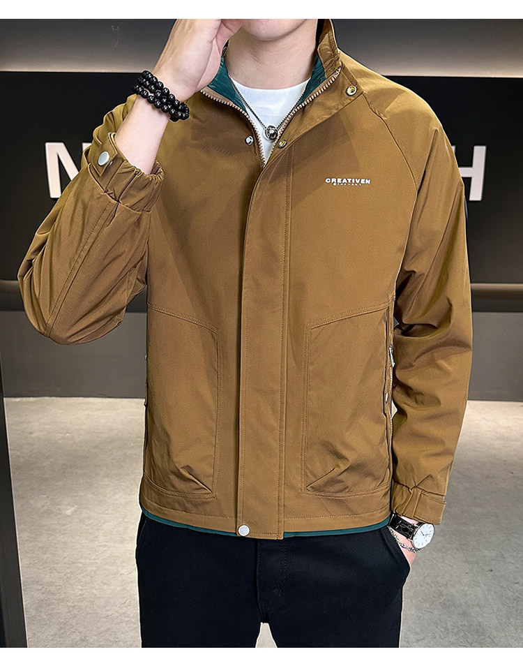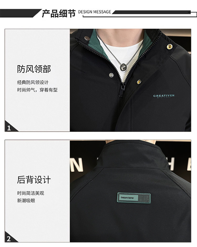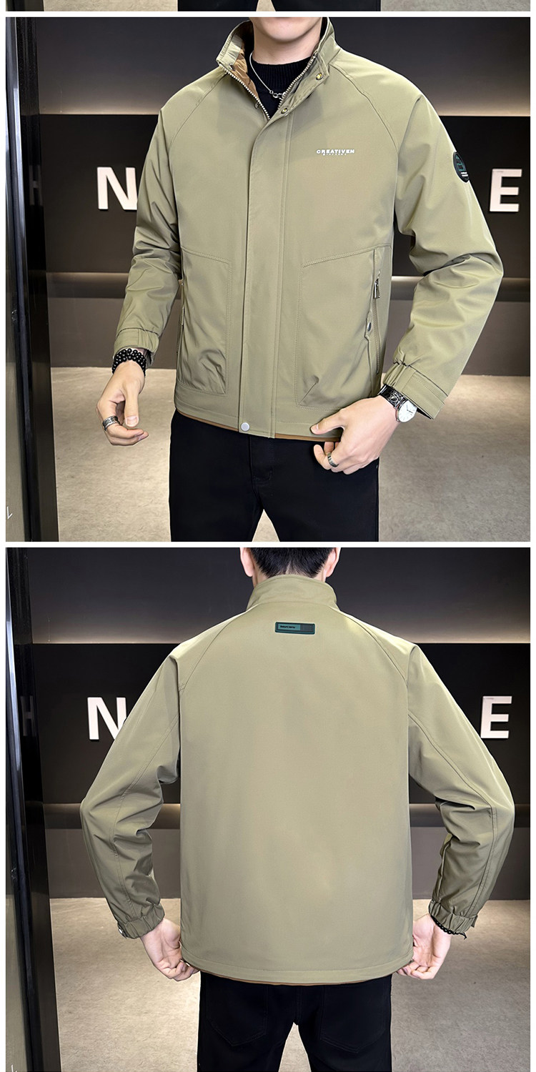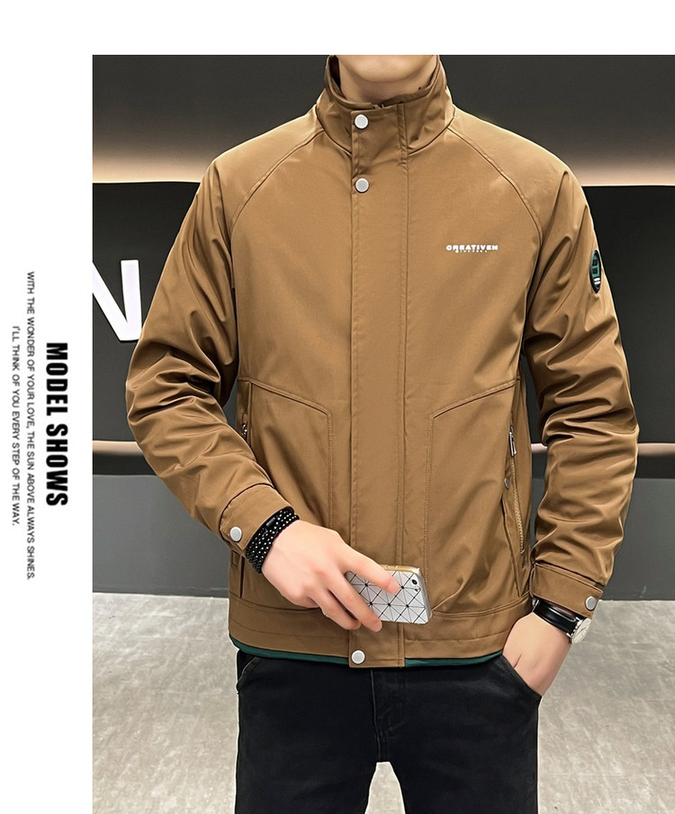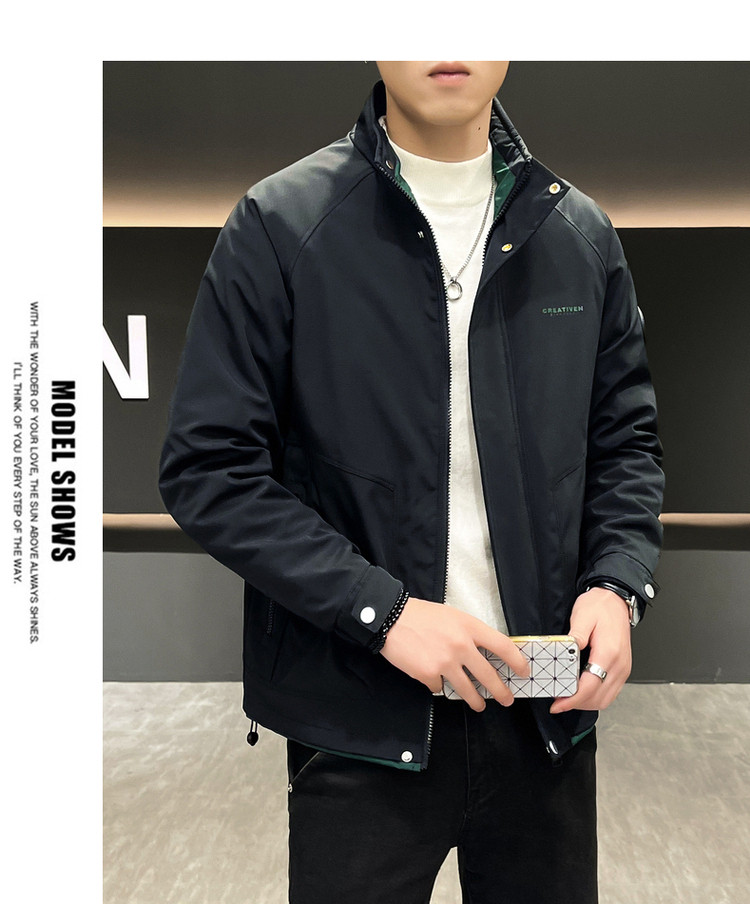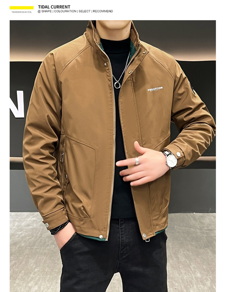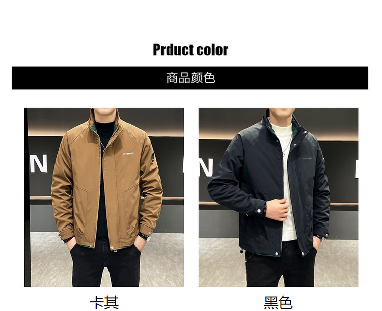 • 春秋新款外套男士时尚休闲工装立领加棉夹克潮流帅气加厚百搭棉服