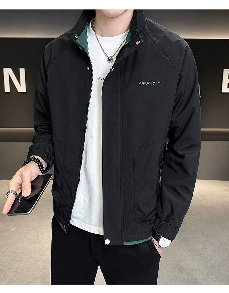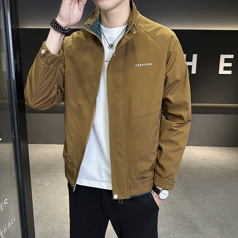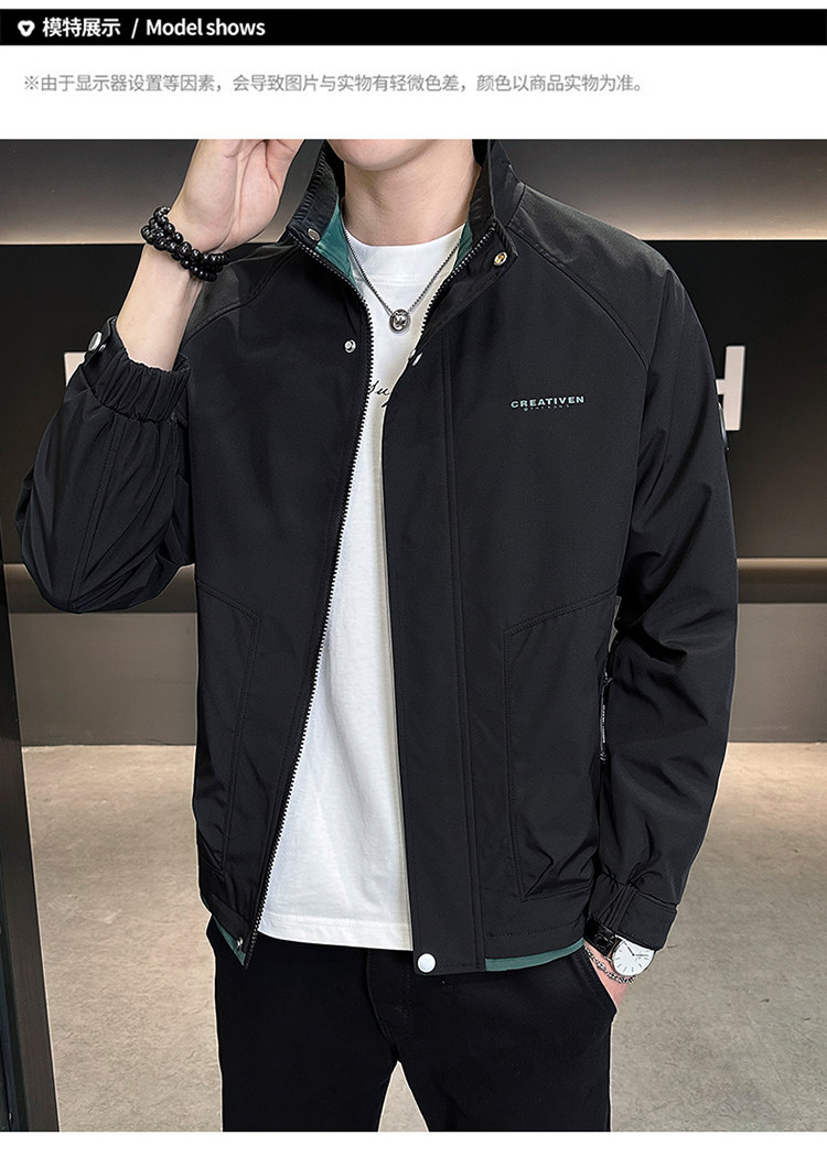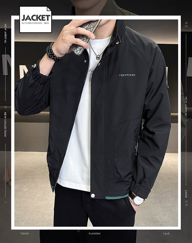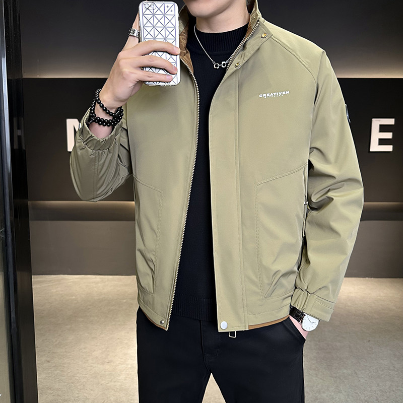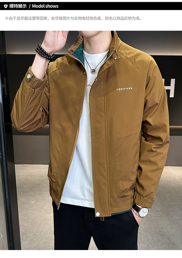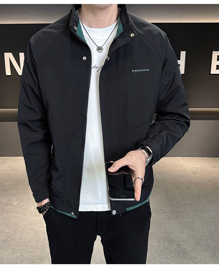 • 春秋新款外套男士时尚休闲工装立领加棉夹克潮流帅气加厚百搭棉服