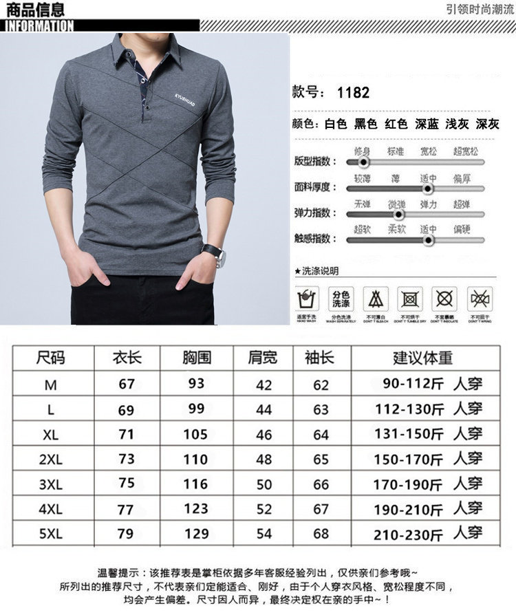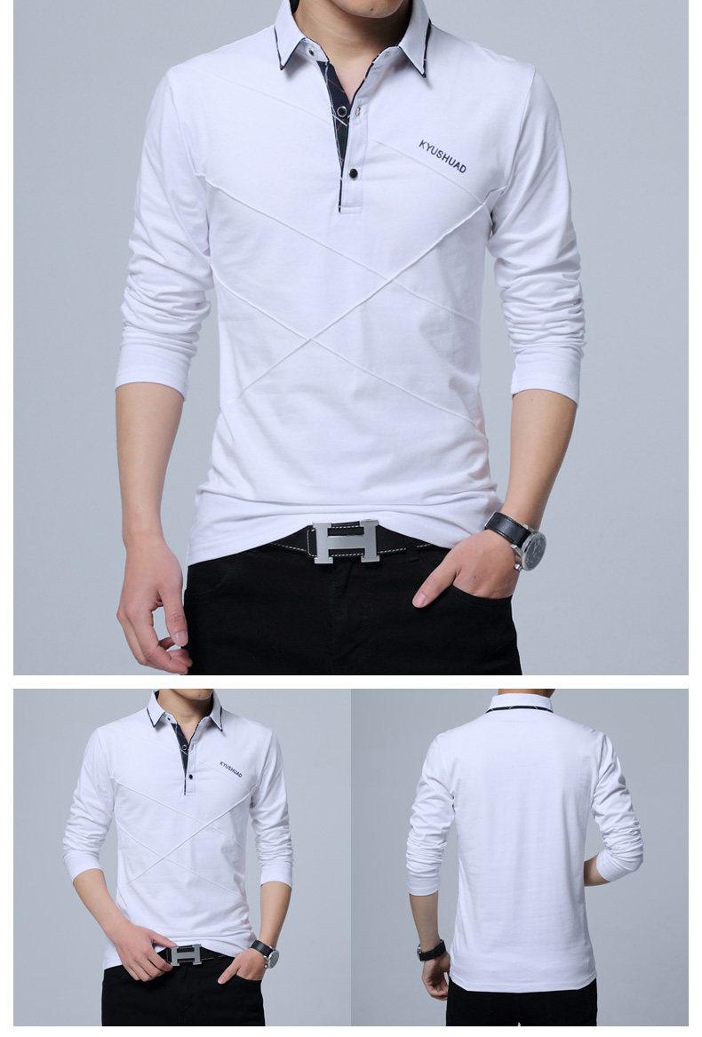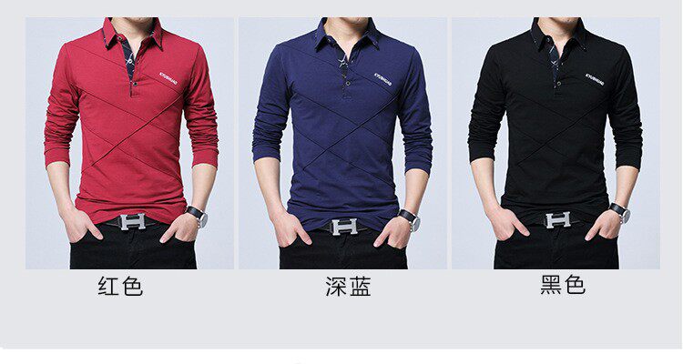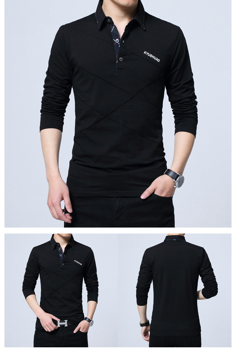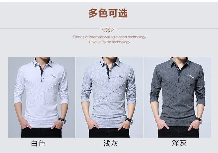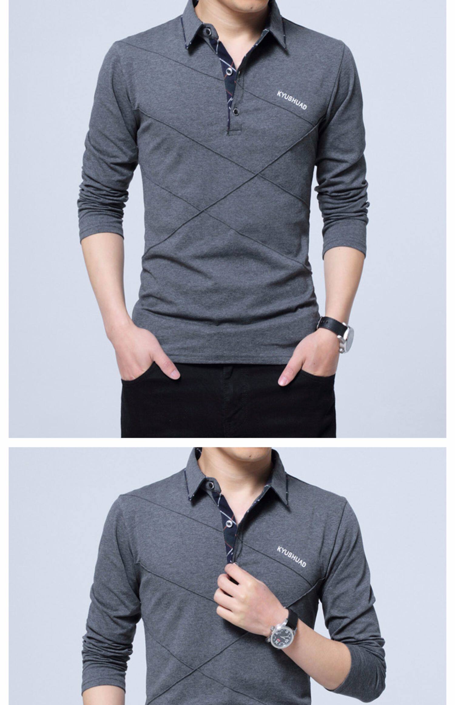 • 秋装男士体恤有领纯棉长袖T恤翻领加大码单穿修身上衣胖人打底衫