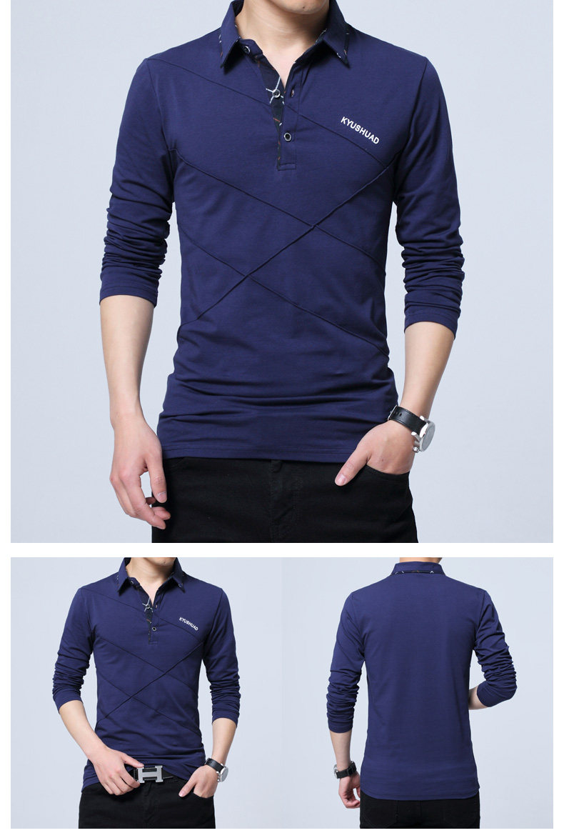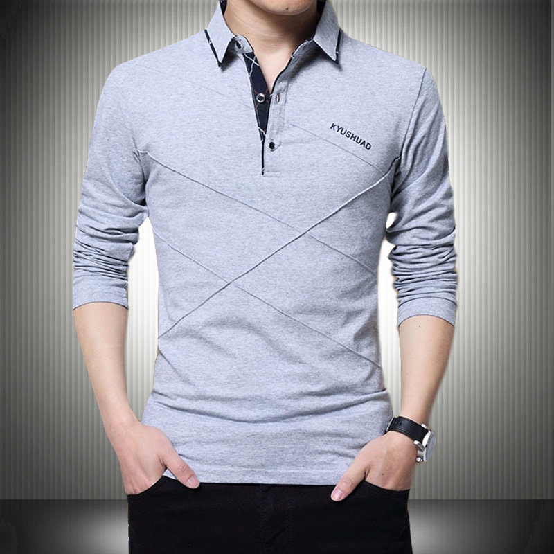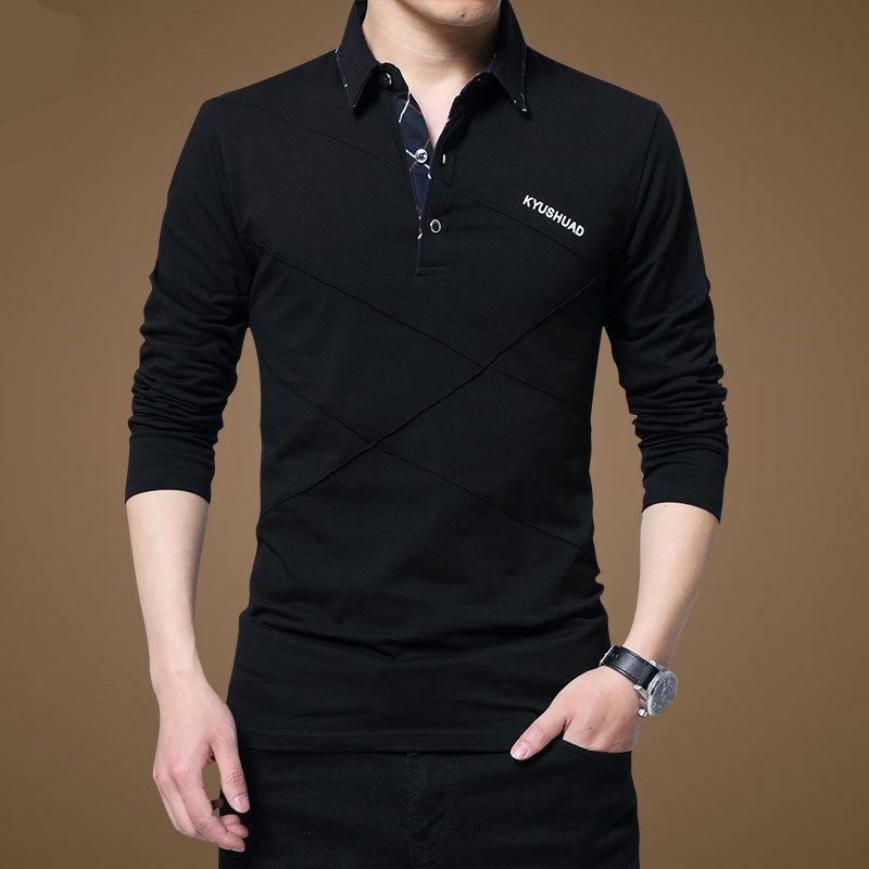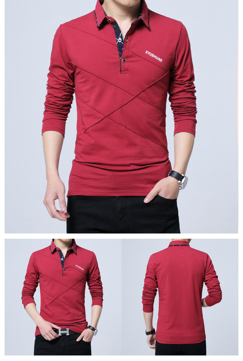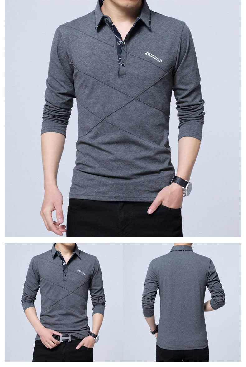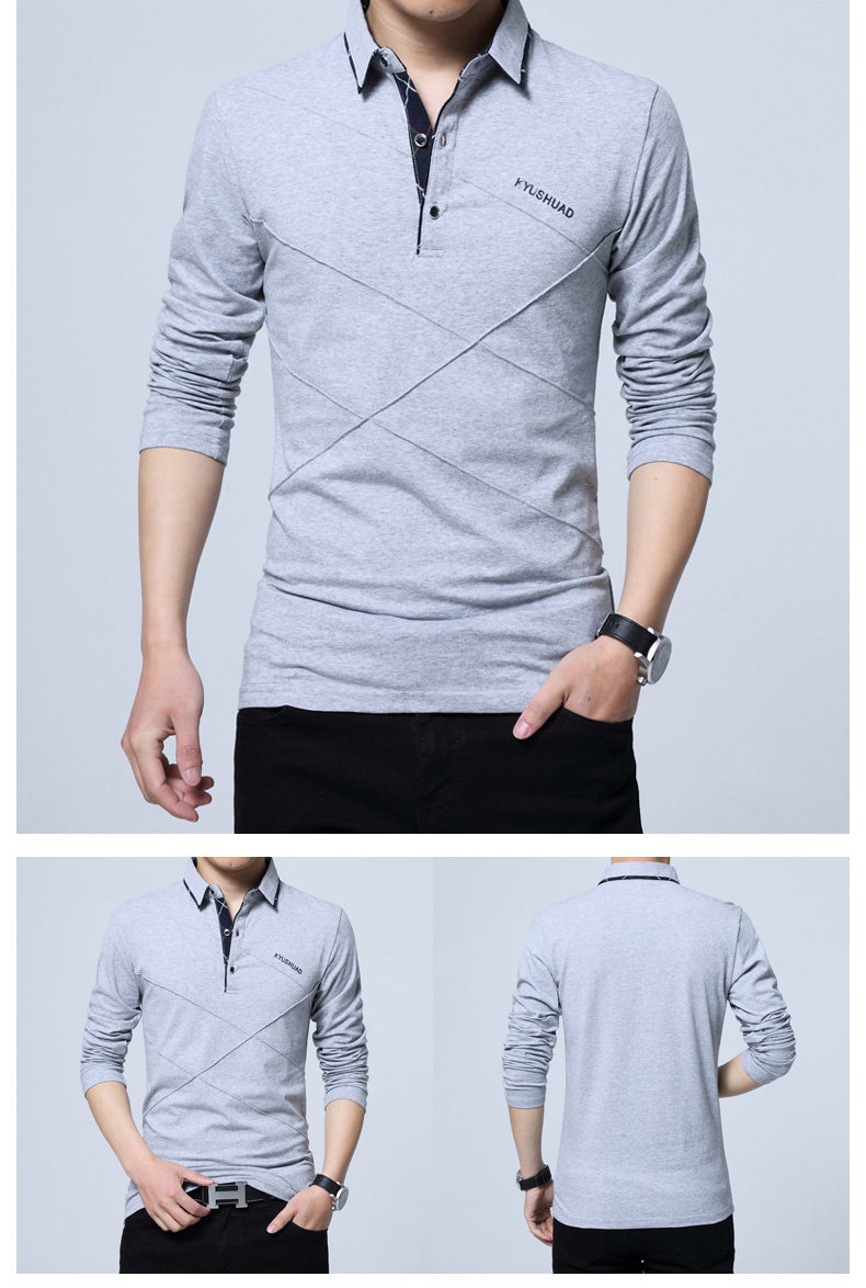 • 秋装男士体恤有领纯棉长袖T恤翻领加大码单穿修身上衣胖人打底衫