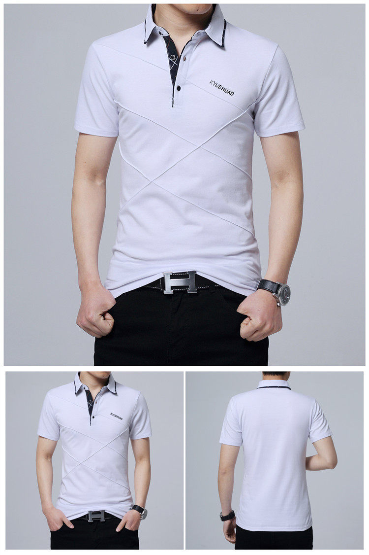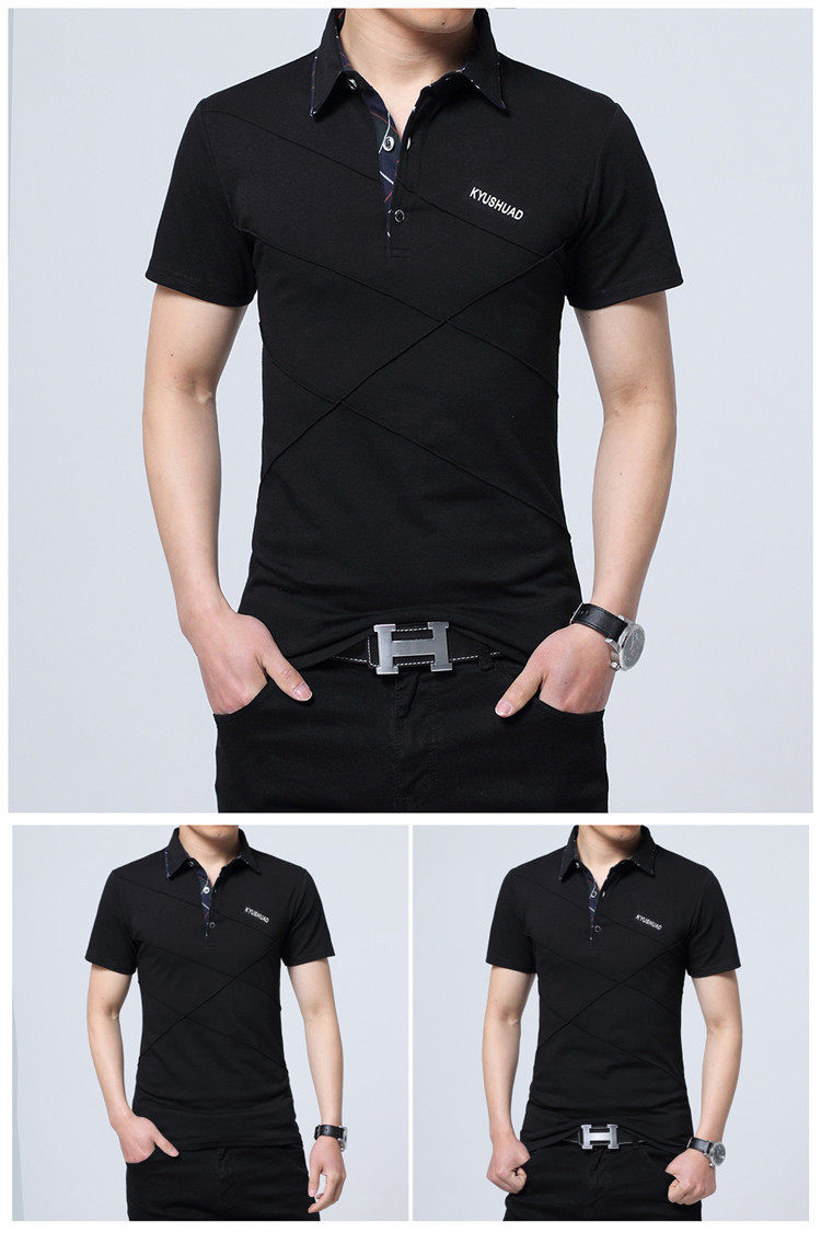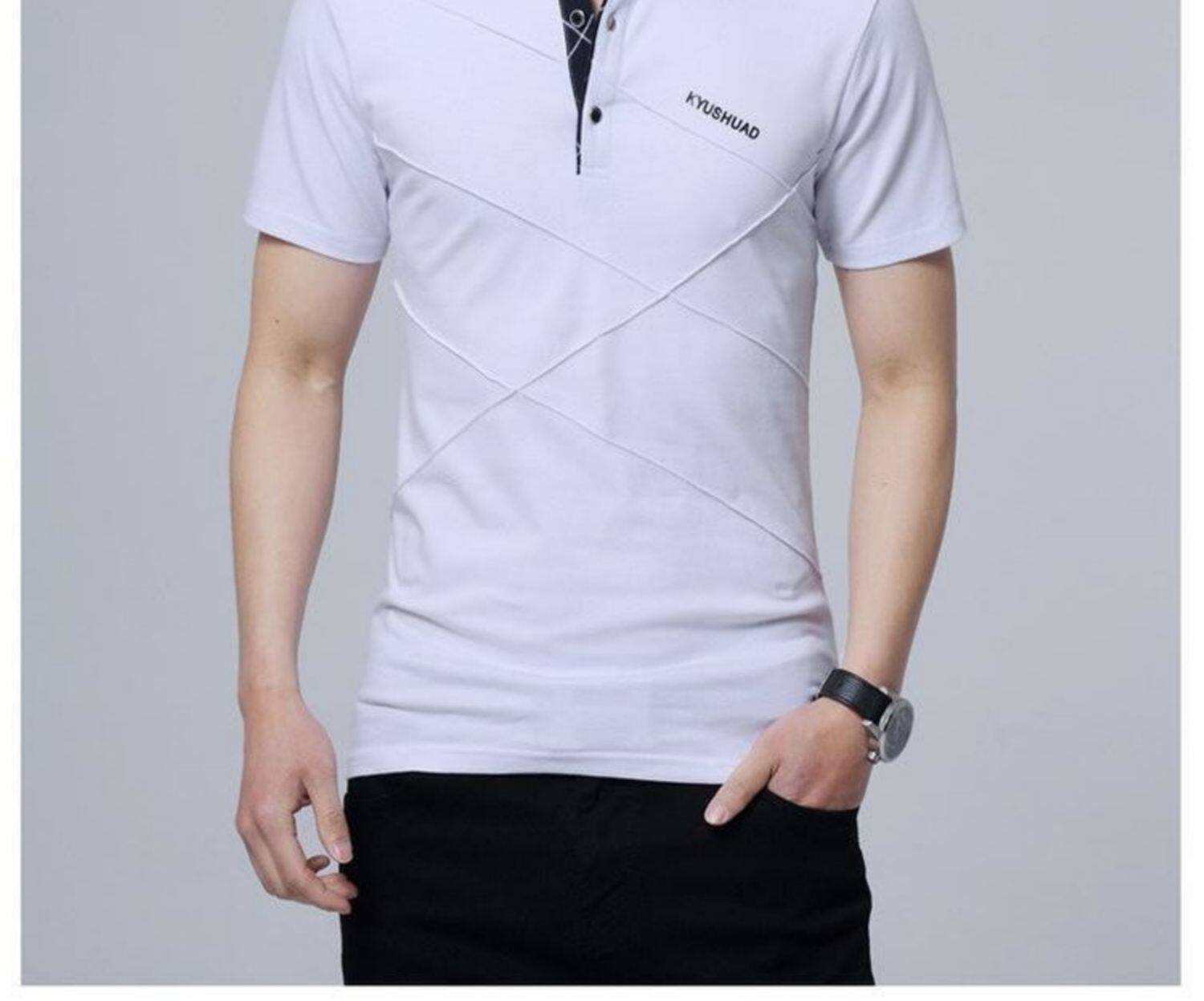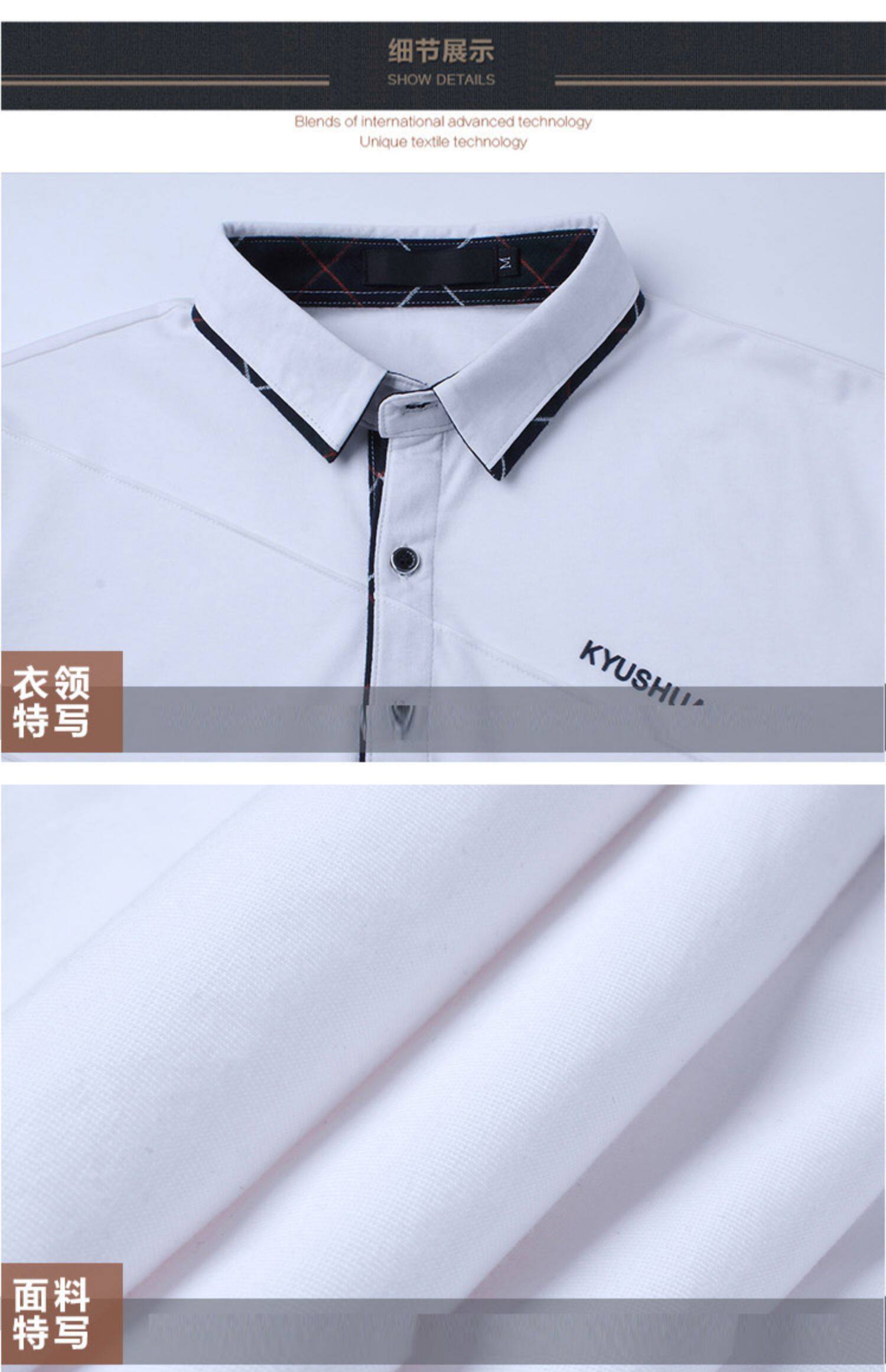 • 秋装男士体恤有领纯棉长袖T恤翻领加大码单穿修身上衣胖人打底衫
