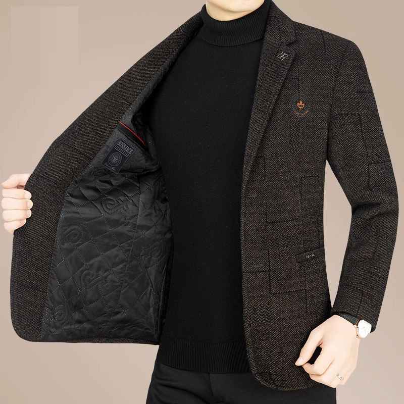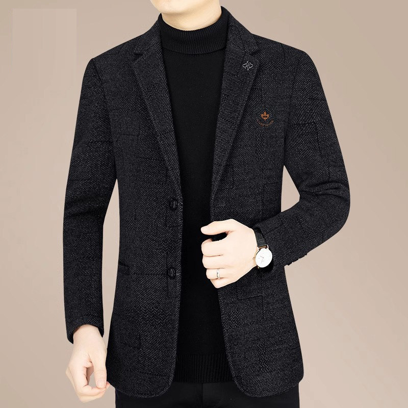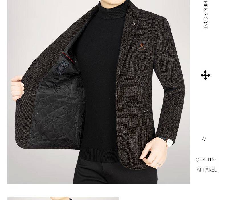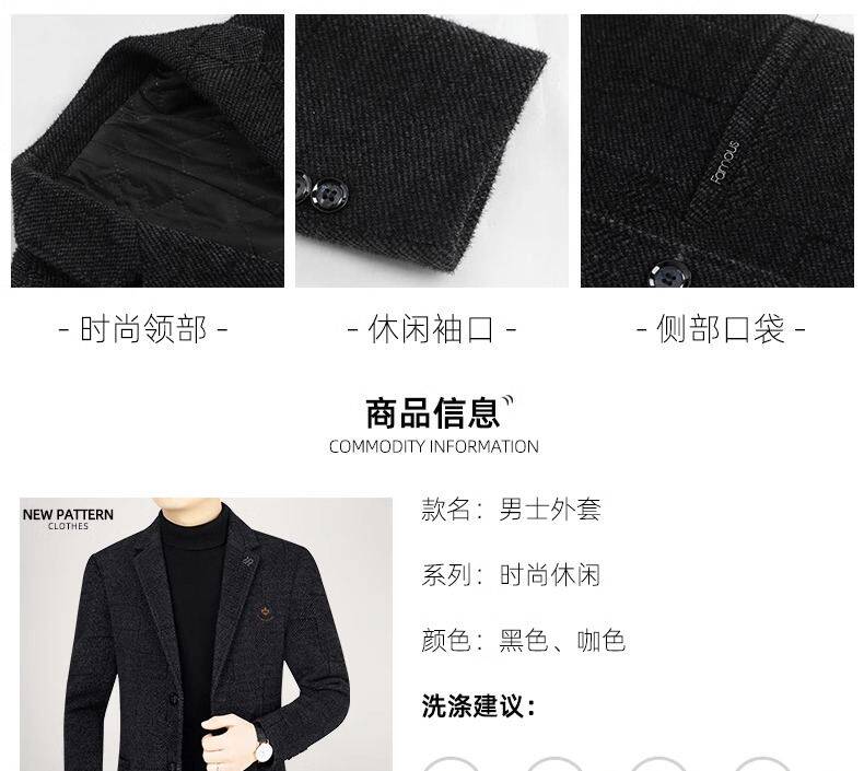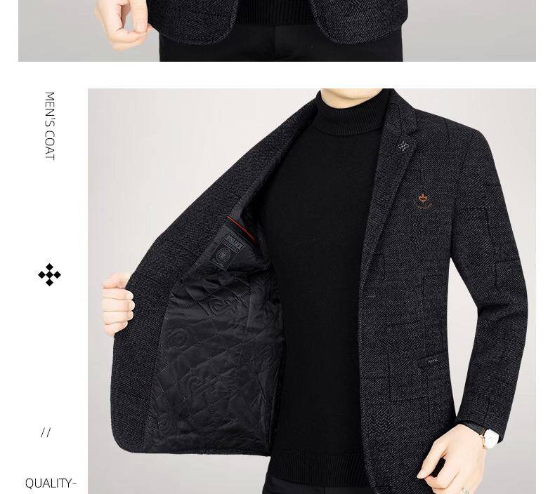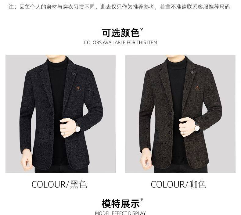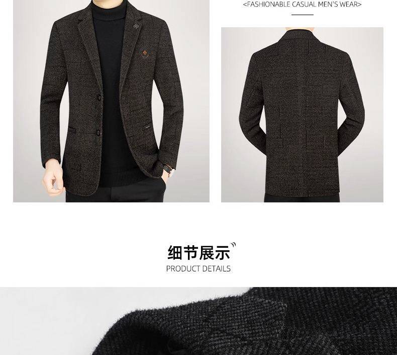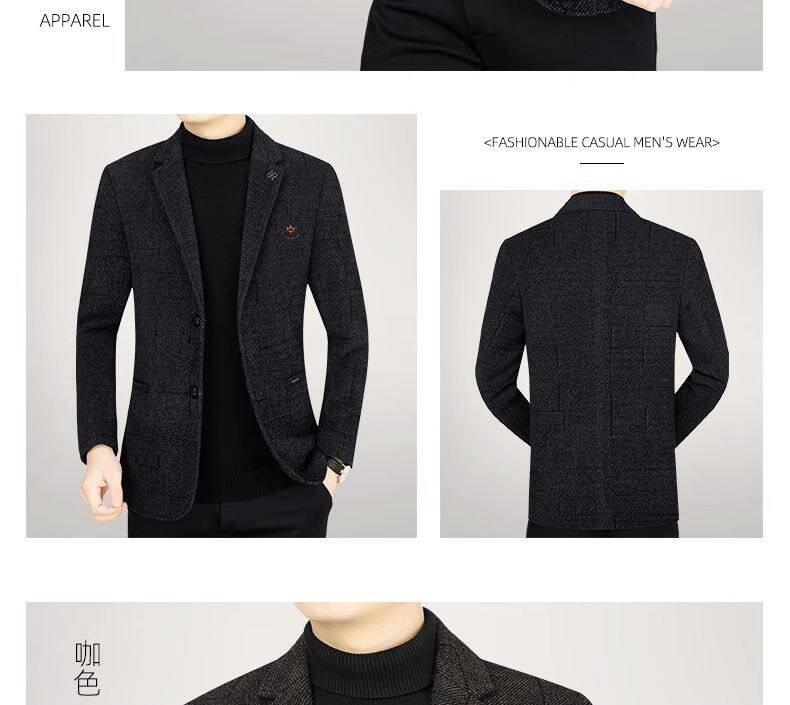 • 毛呢西装男新款中年男士秋冬休闲毛呢单西爸爸款西服外套男装