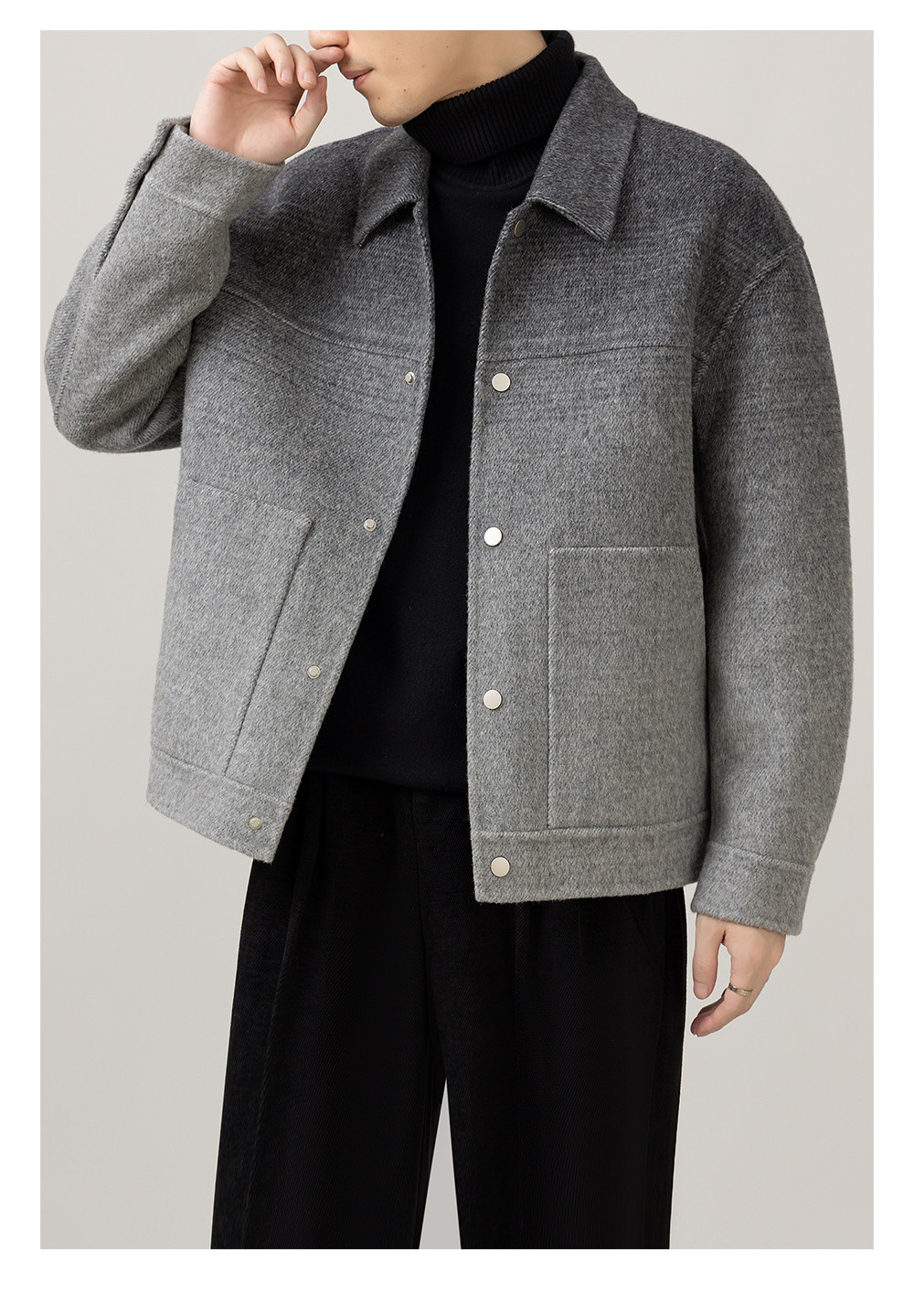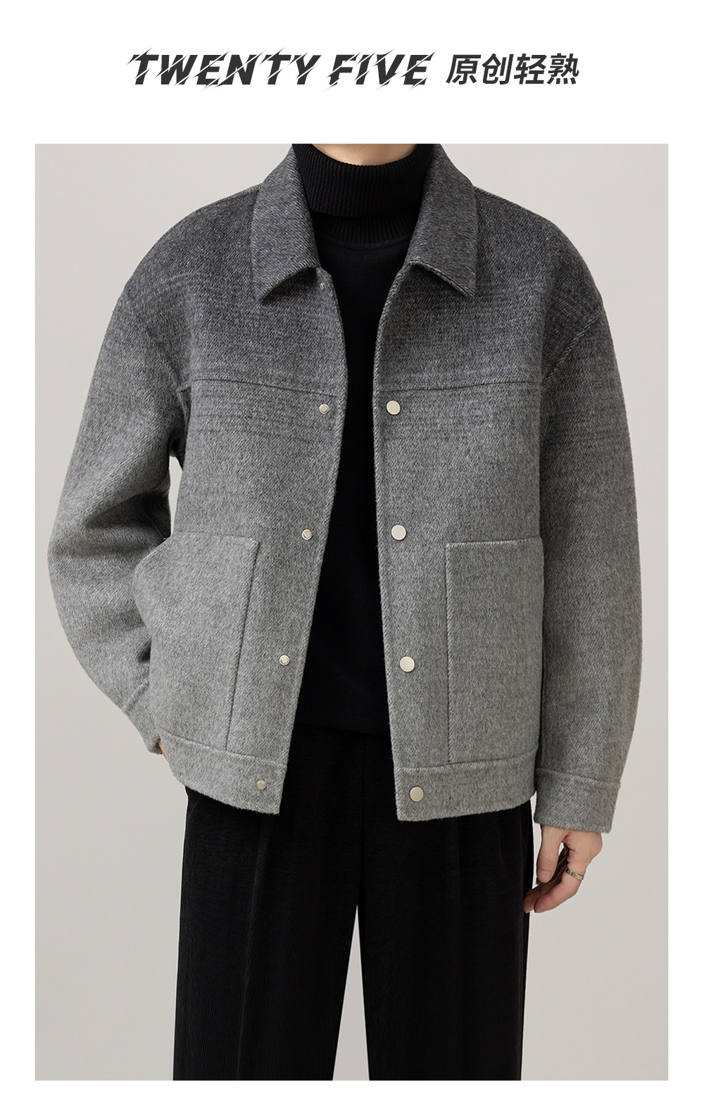 • 秋冬渐变高级感新款男装双面羊毛休闲时尚潮流痞帅翻领上衣外套男