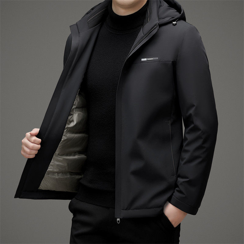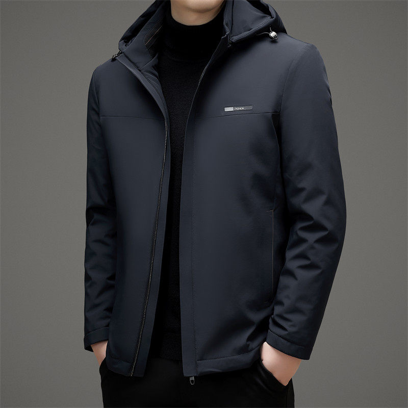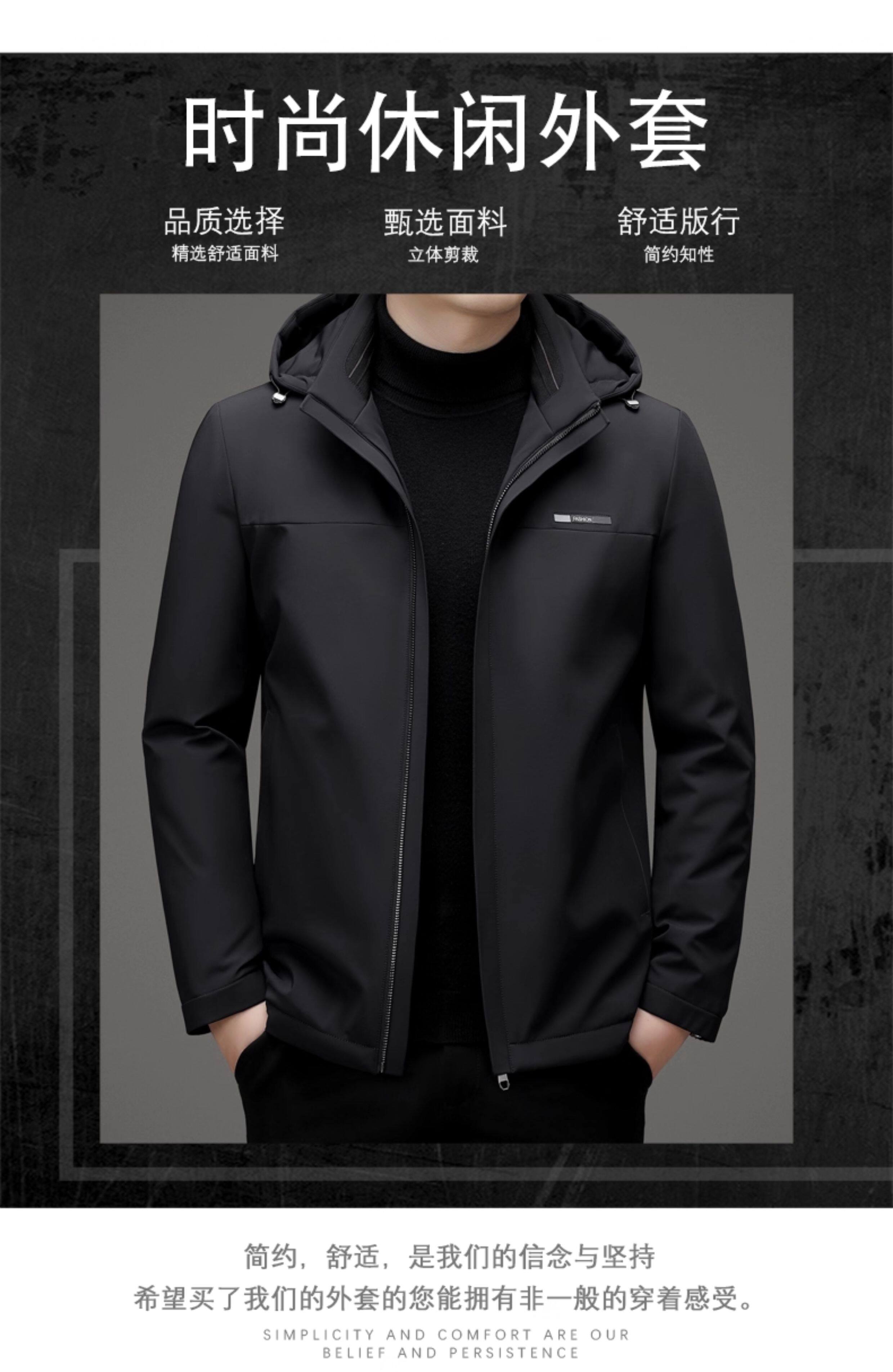 • 2025短款轻薄羽绒服男士春秋冬反季休闲外套白鸭绒袄可卸帽中年装