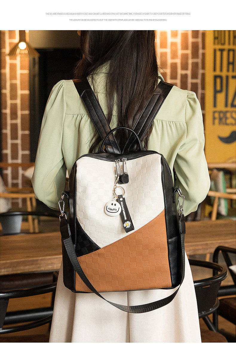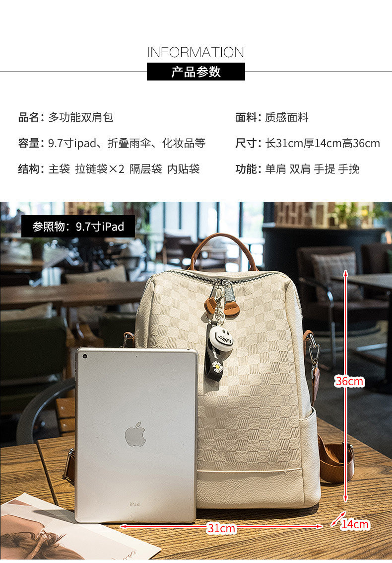 首页 > 休闲女包 > 棋盘格双肩包女2025新款潮流高级感女大学生休闲百搭旅行包单肩包