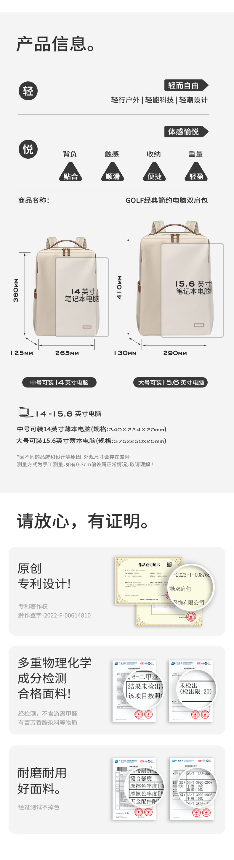 首页 > 休闲女包 > GOLF双肩包女2025新款简约商务电脑背包户外大容量旅行包学生书包